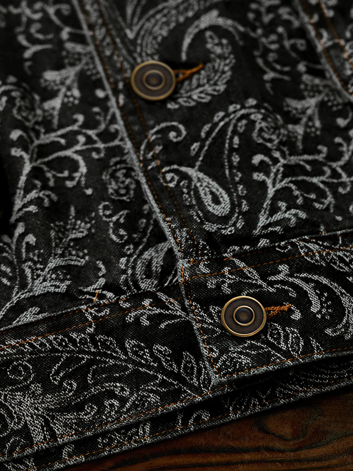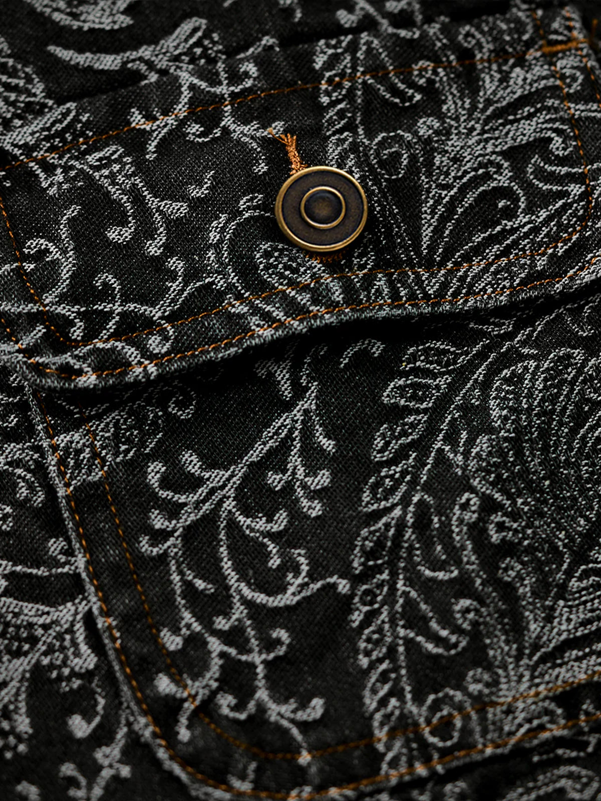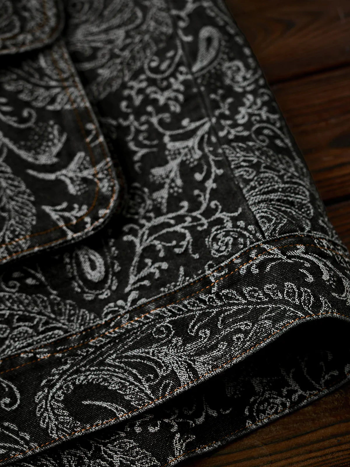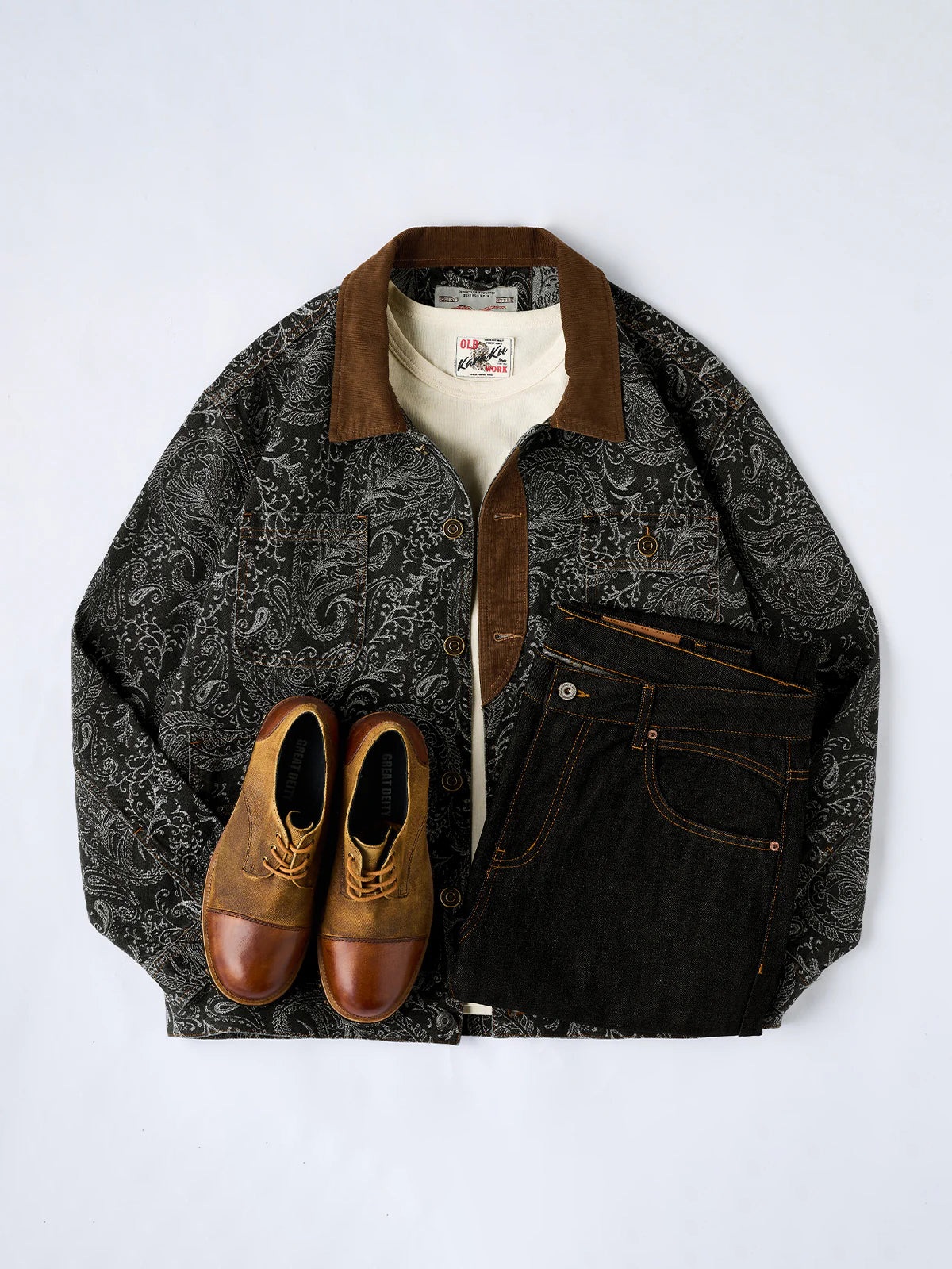 [Pre-Order] Paisley Jacquard Denim Jacket with Corduroy Contrast Panels