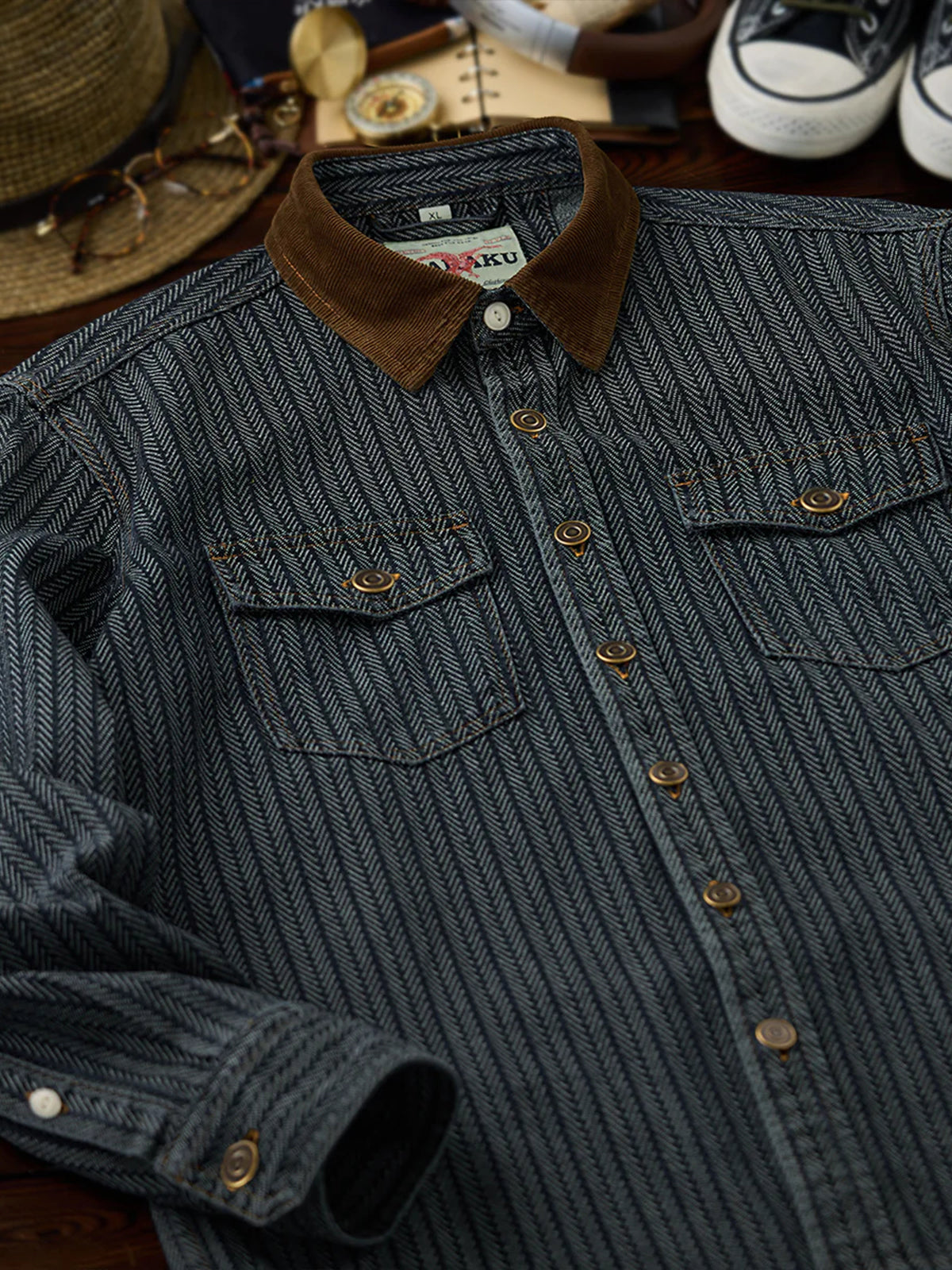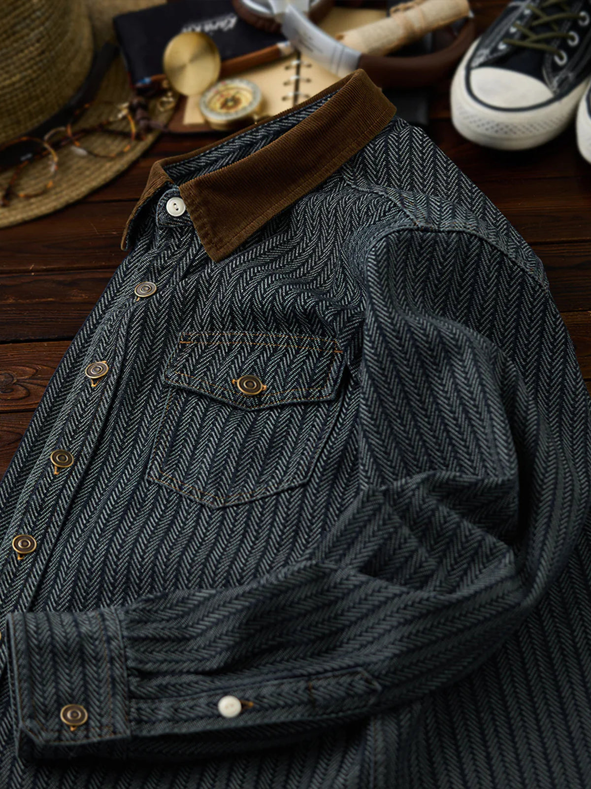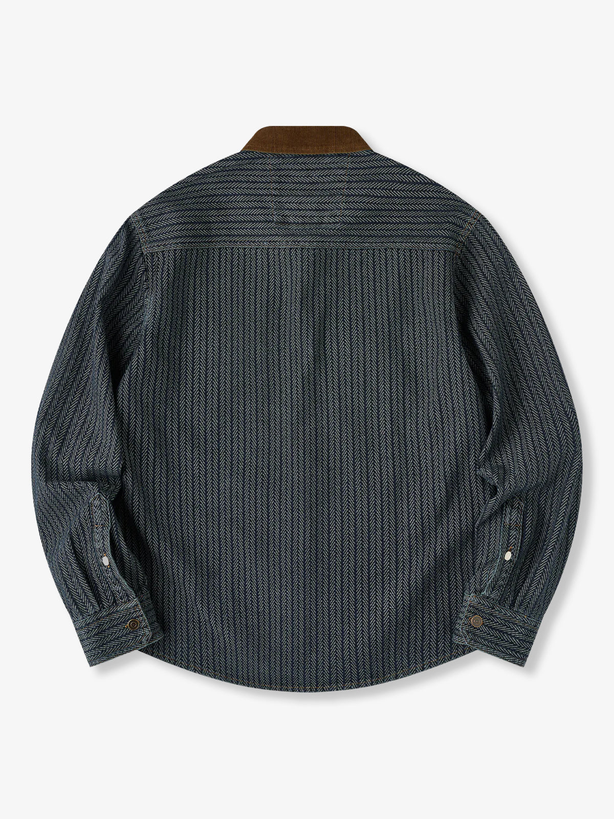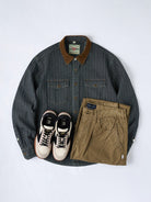 [Pre-Order] Herringbone Jacquard Denim Work Shirt with Corduroy Collar Contrast