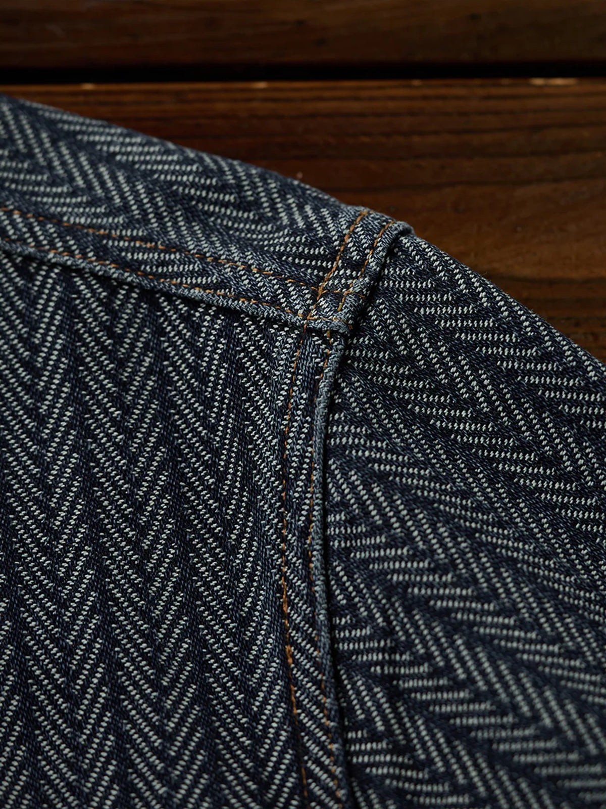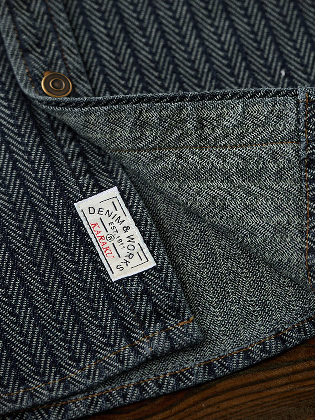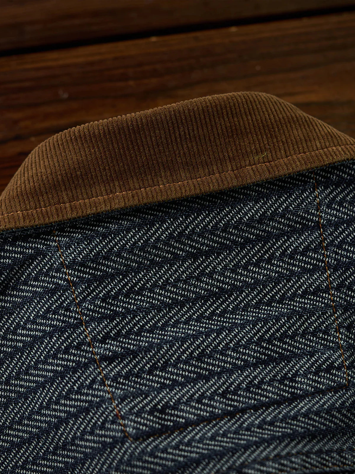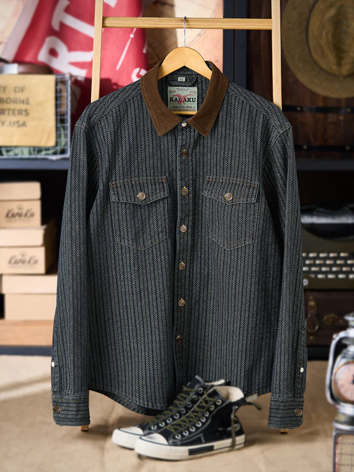 [Pre-Order] Herringbone Jacquard Denim Work Shirt with Corduroy Collar Contrast