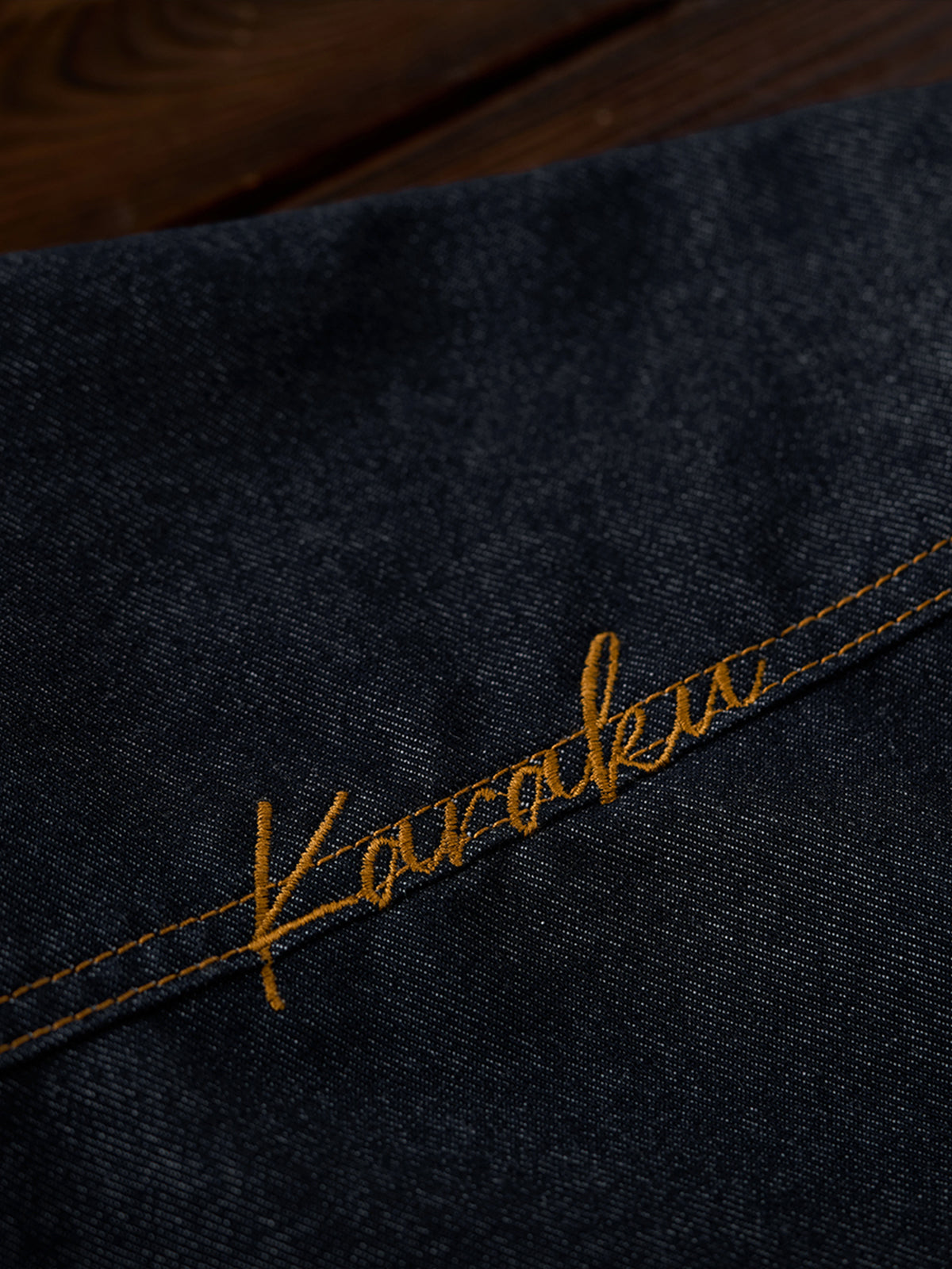 Functional details such as double stitching and thoughtfully placed front pockets reinforce its workwear heritage. The “KaraKu” embroidery on the right shoulder adds a refined brand signature—understated yet distinctive.