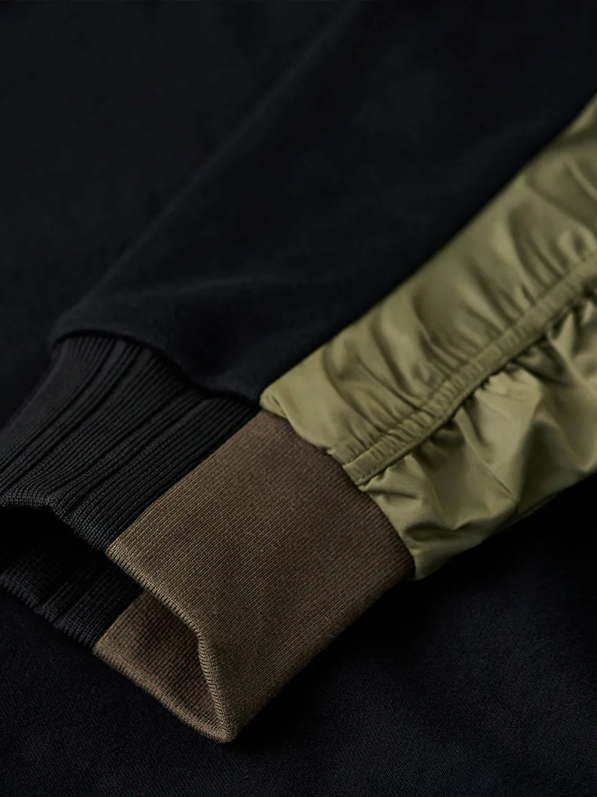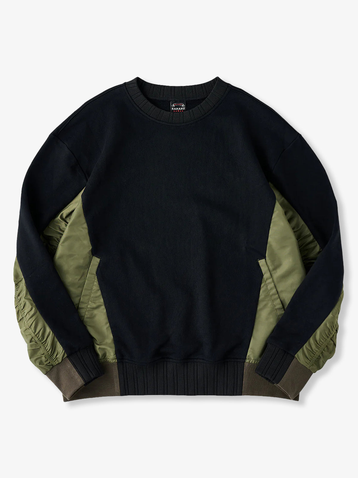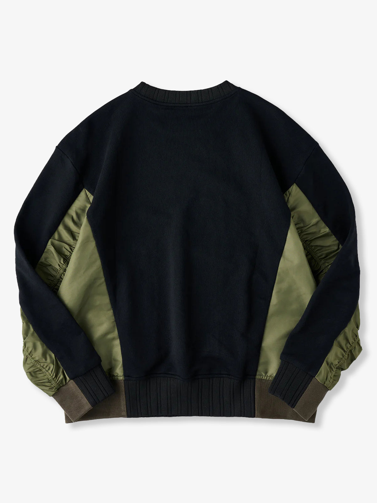 Nylon-Panel Pullover Sweatshirt with Shirred Sleeves