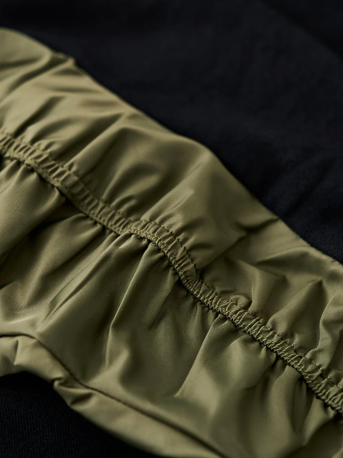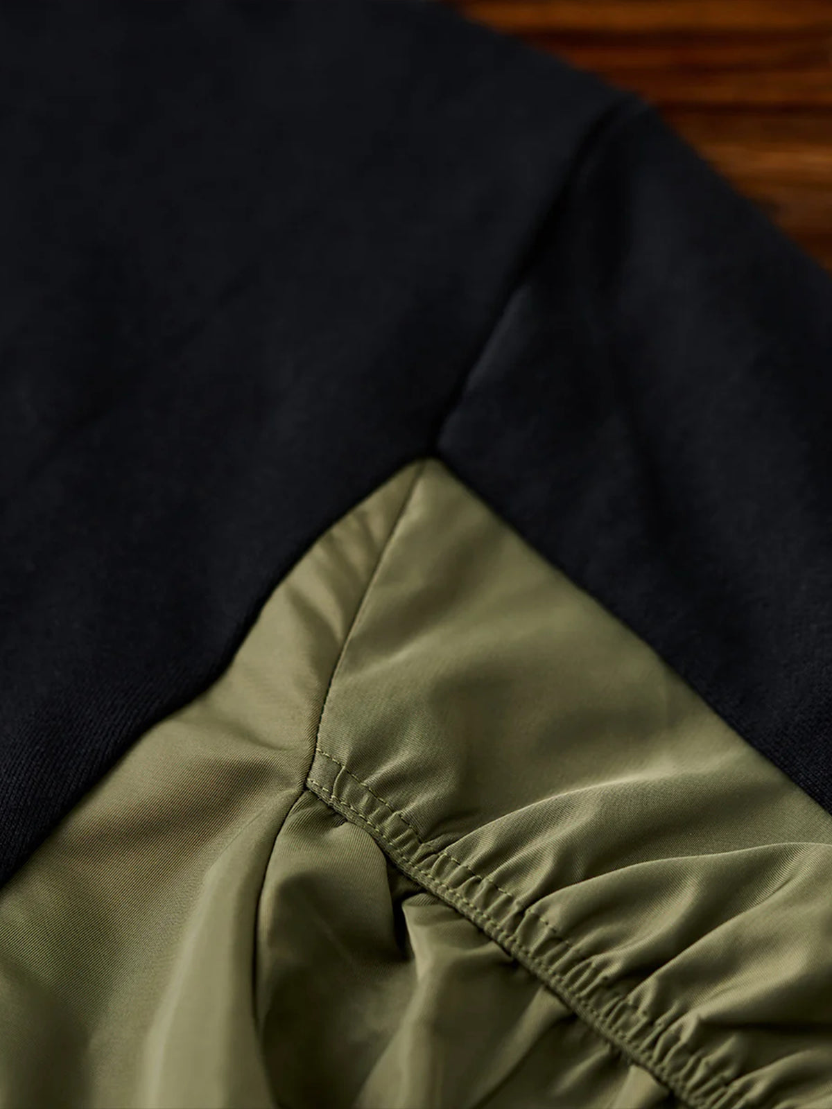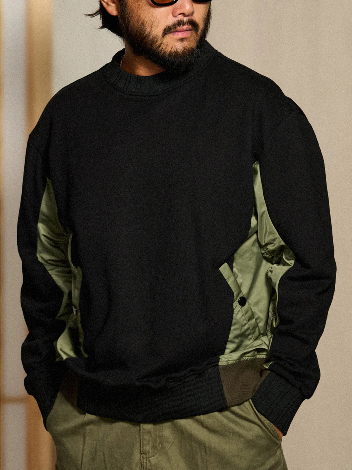 Nylon-Panel Pullover Sweatshirt with Shirred Sleeves