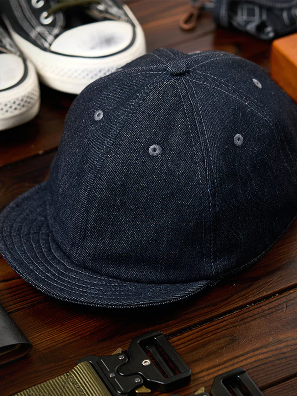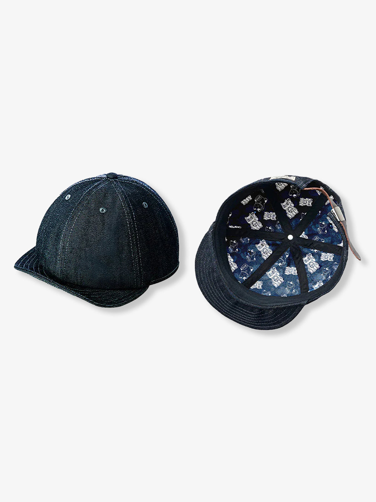 Maneki-neko Denim Baseball Cap with Printed Brim