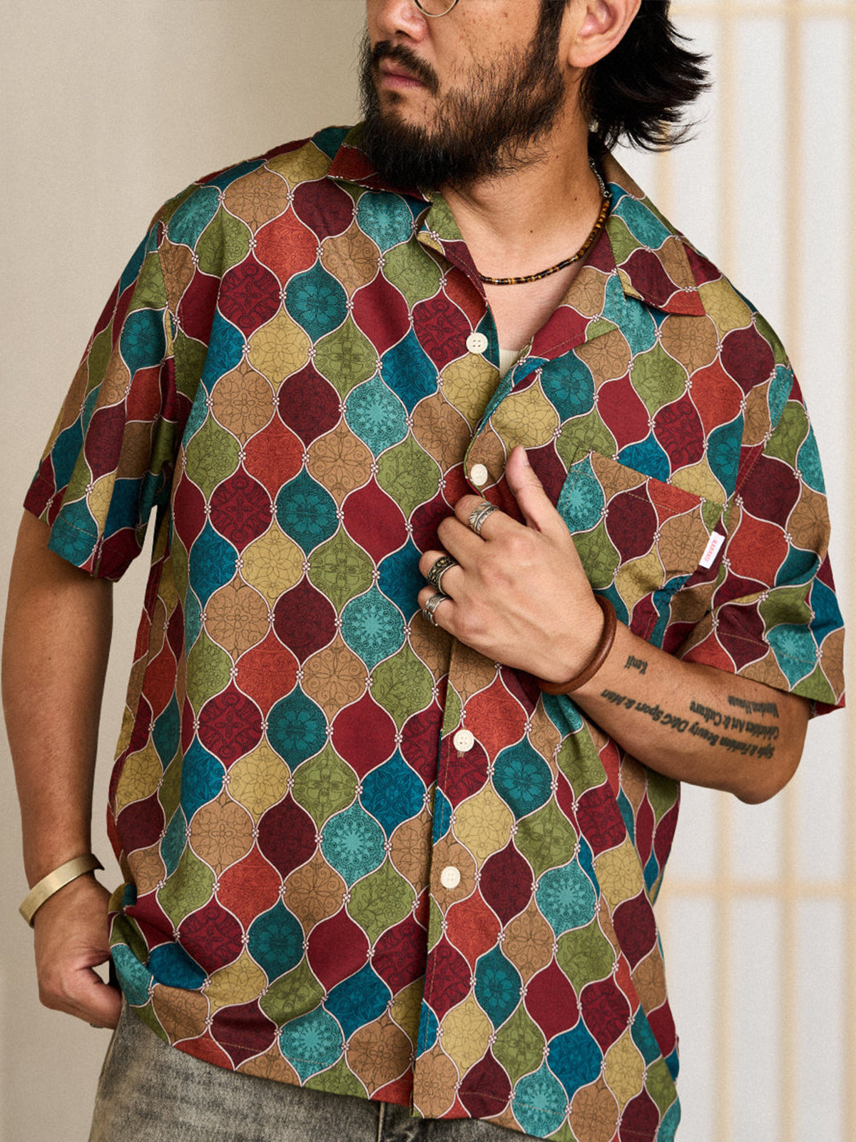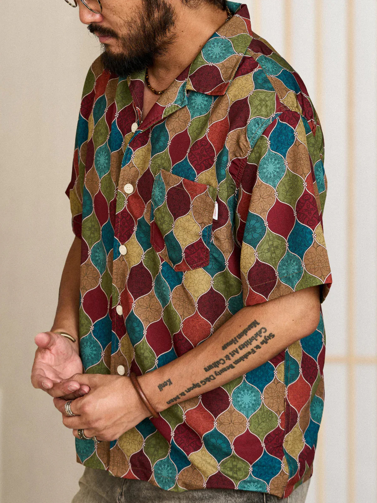 Bohemian Ethnic Allover Graphic Aloha Shirt