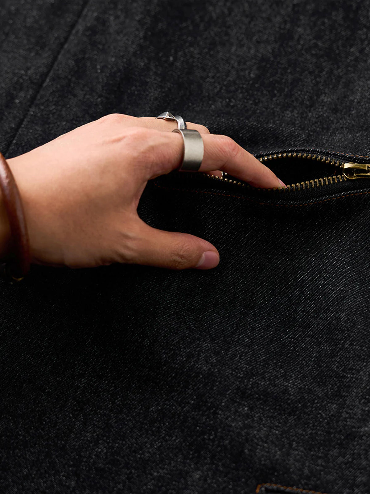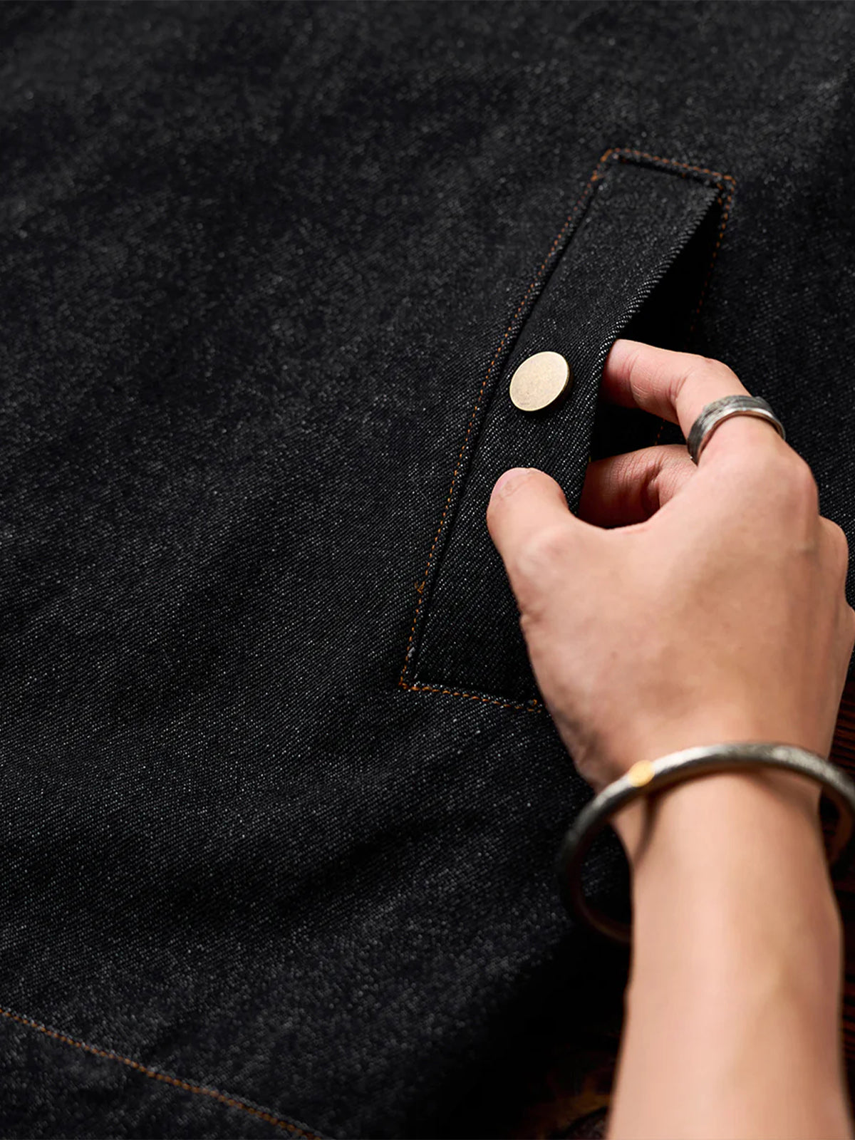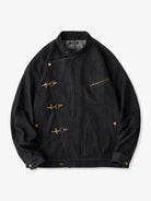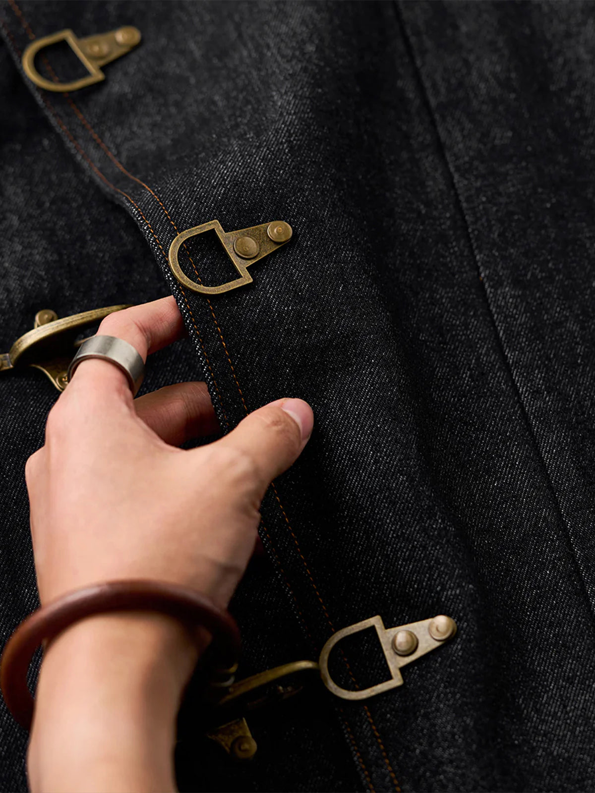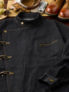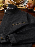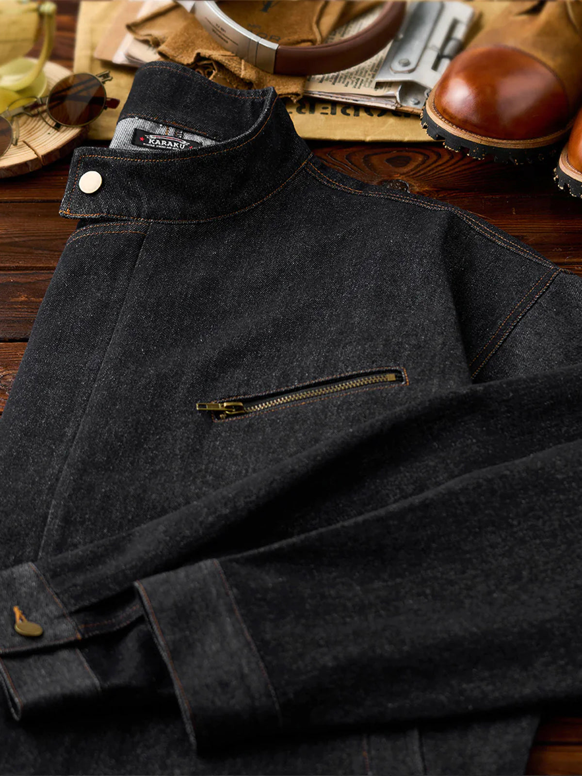 [Pre-Order] Stand-Collar Denim Jacket with Asymmetrical Front Placket and Hook Buttons
