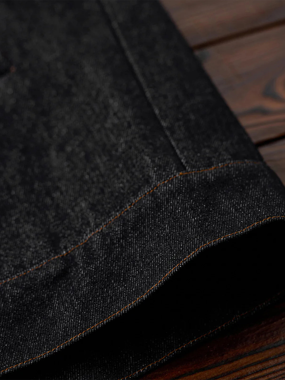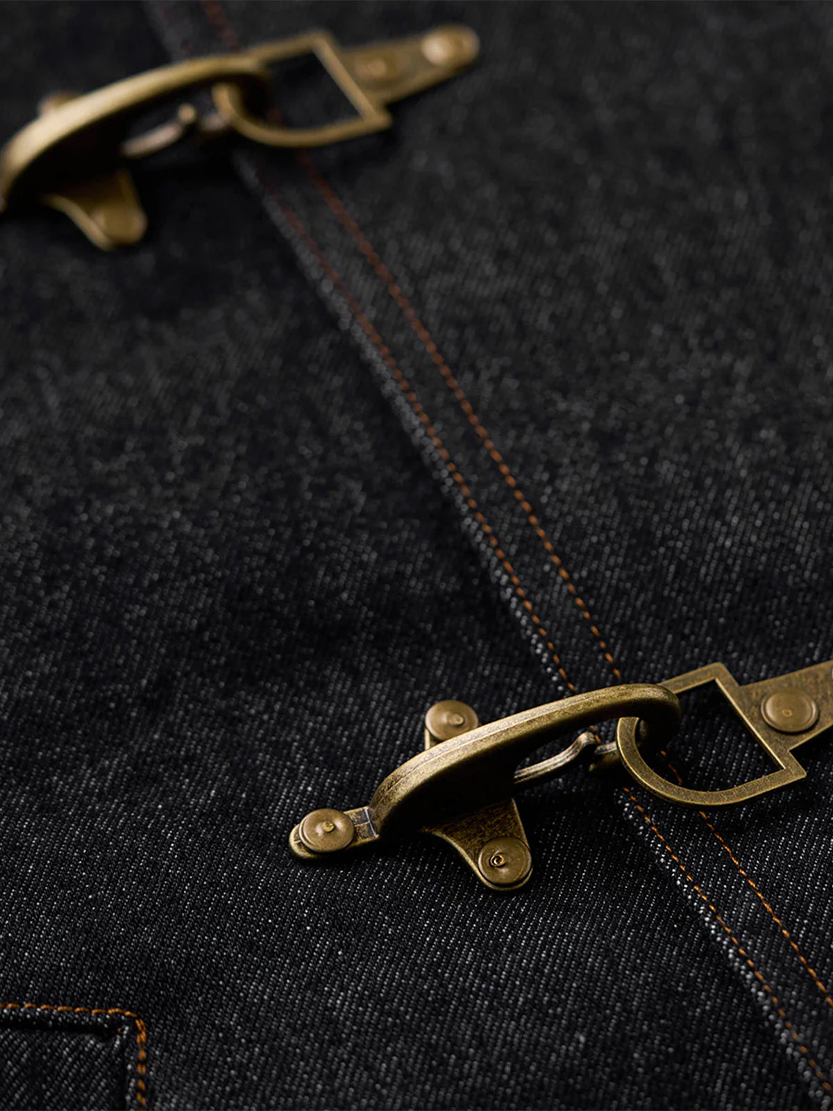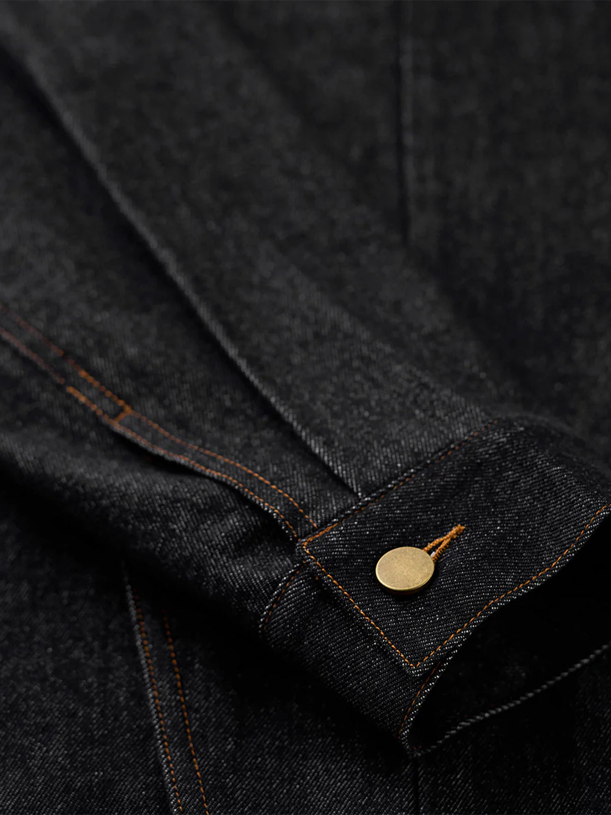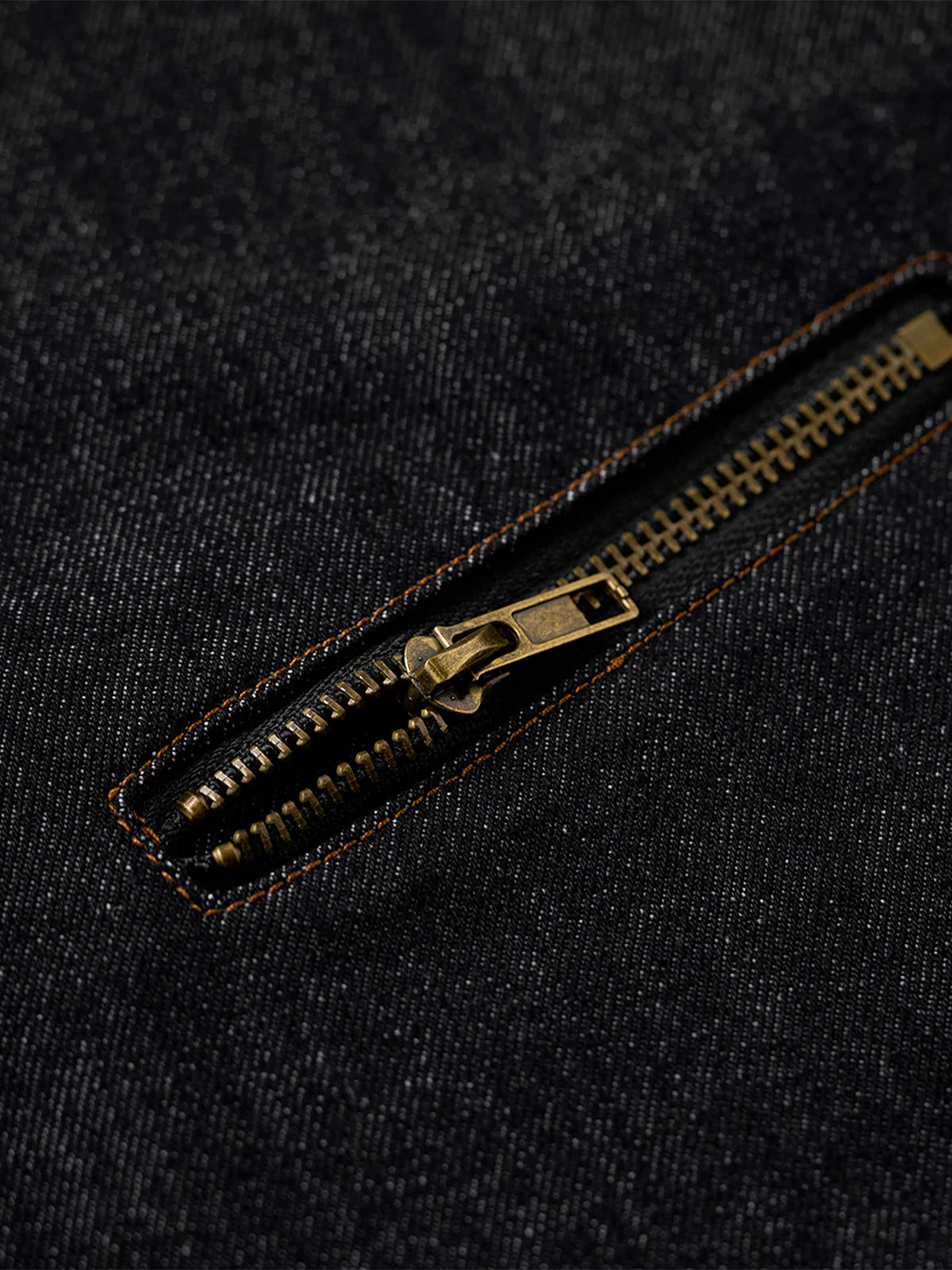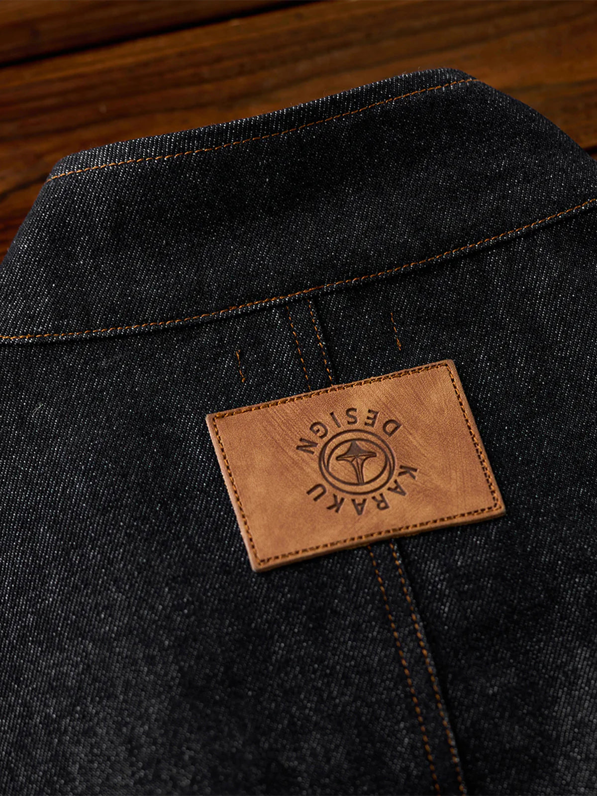 [Pre-Order] Stand-Collar Denim Jacket with Asymmetrical Front Placket and Hook Buttons