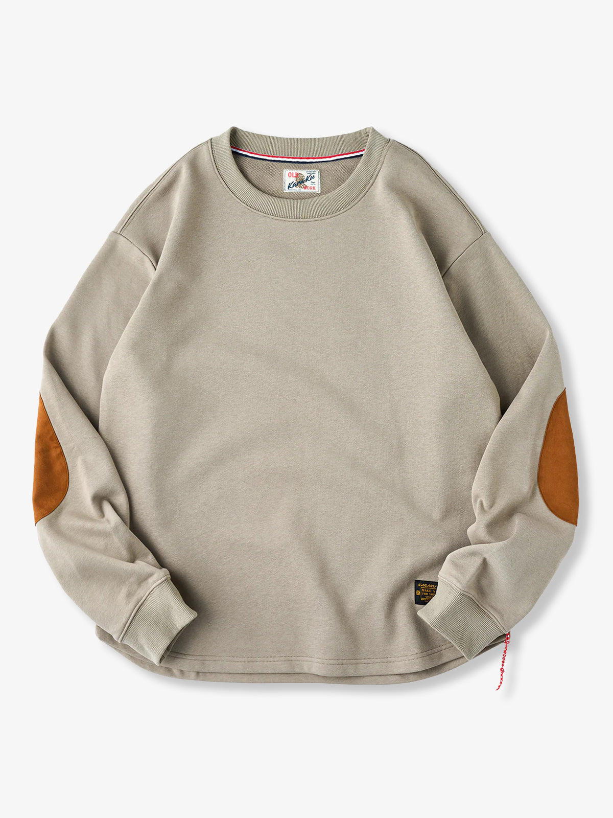 [Pre-Order] Terry-Lined Crewneck Sweatshirt with Red Drawstring & Suede Elbow Patches