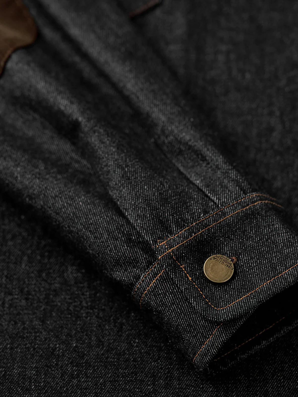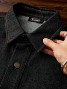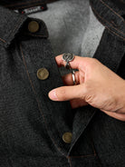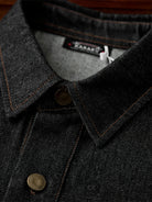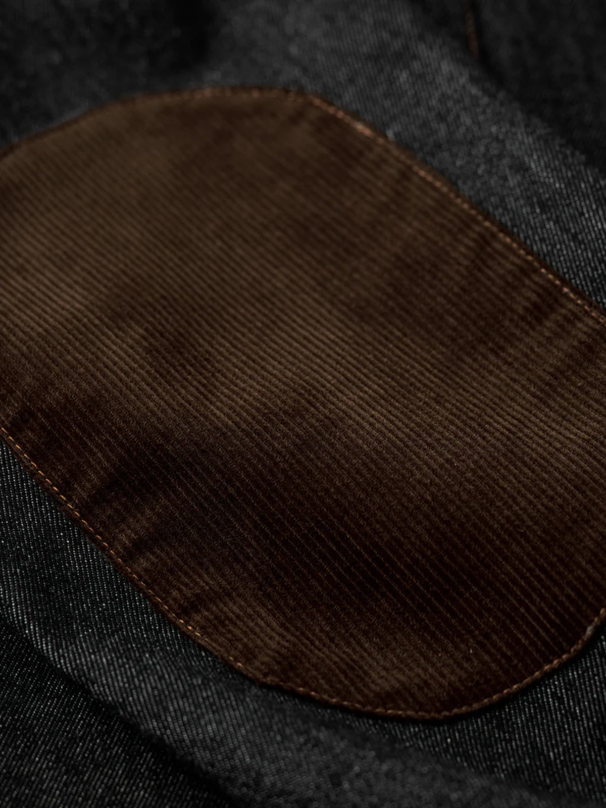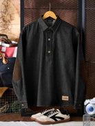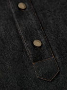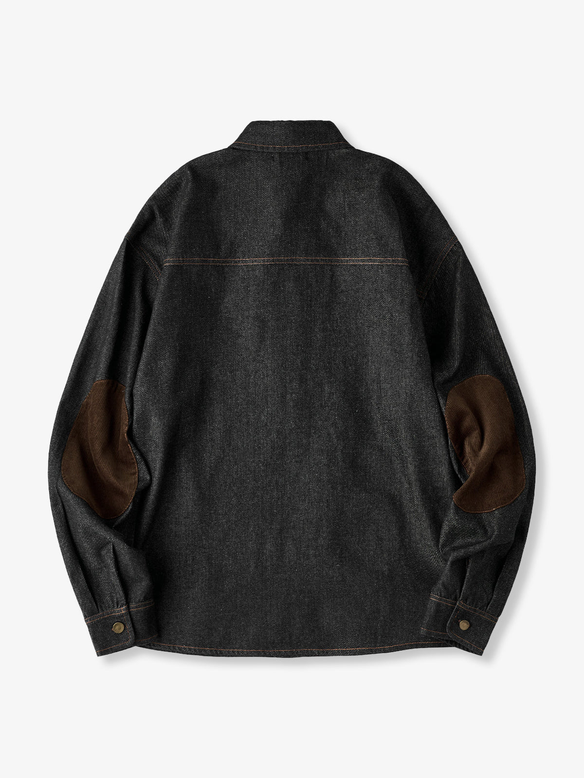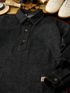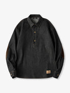 Corduroy Elbow Patch Denim Pullover Shirt with Brass Half-Buttons