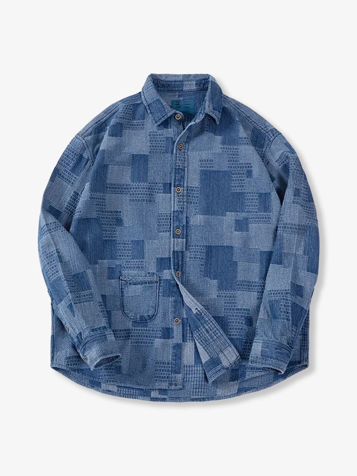 Boro Jacquard Pre-dyed Denim Work Shirt
