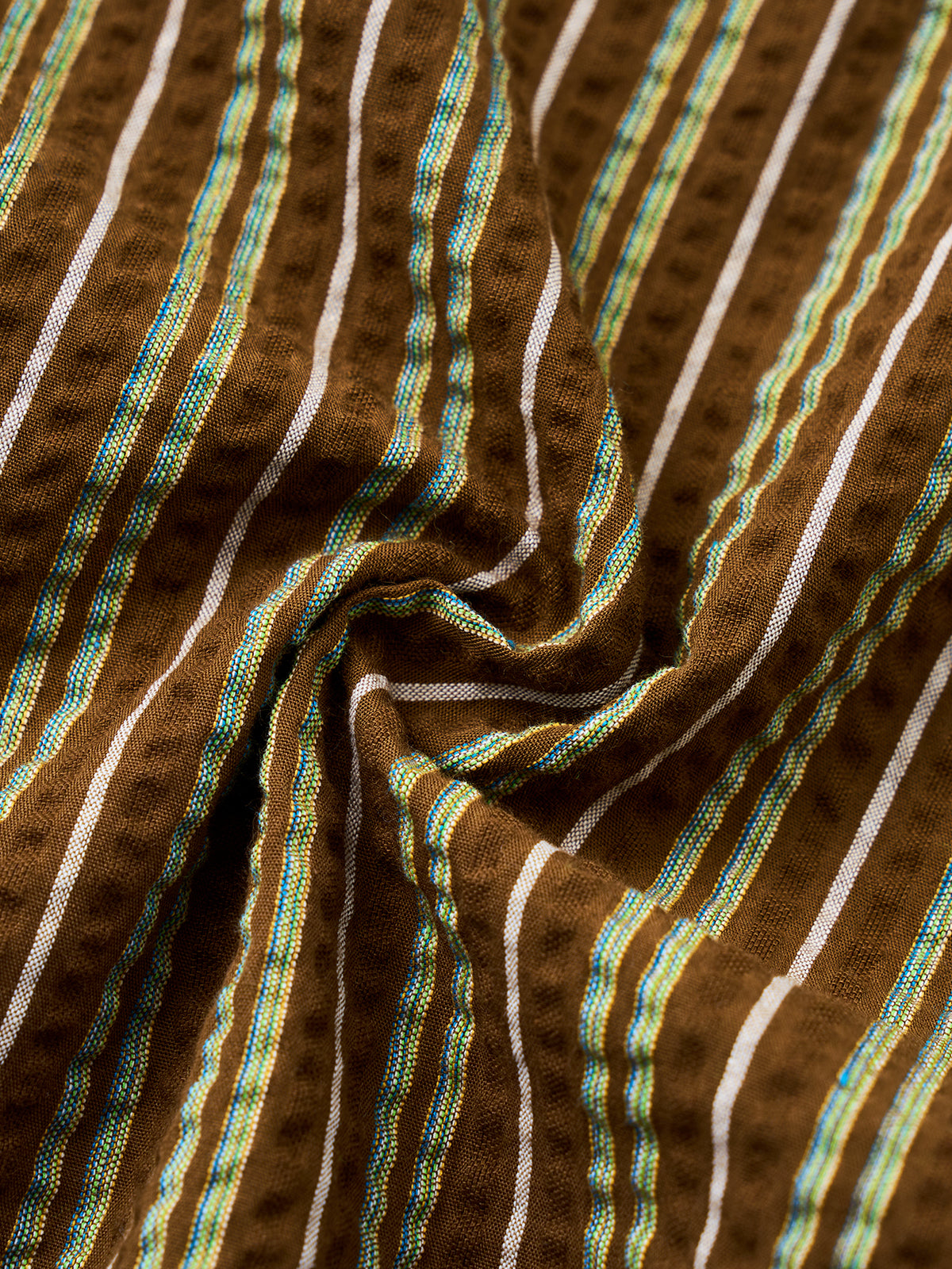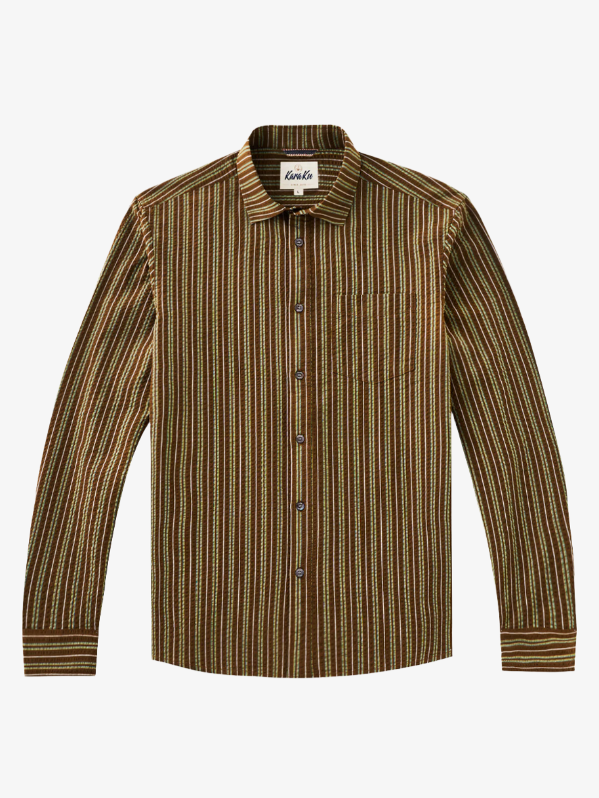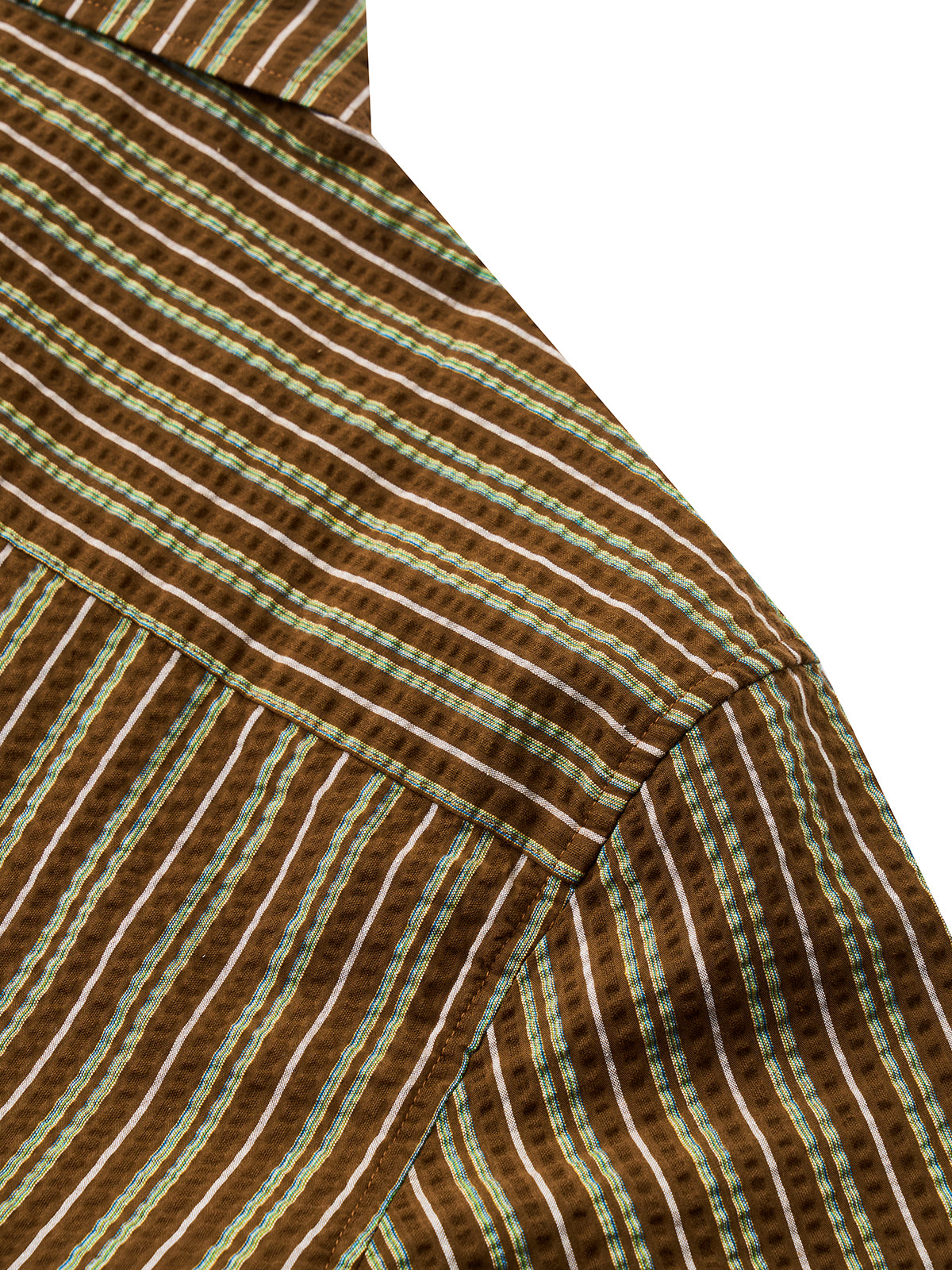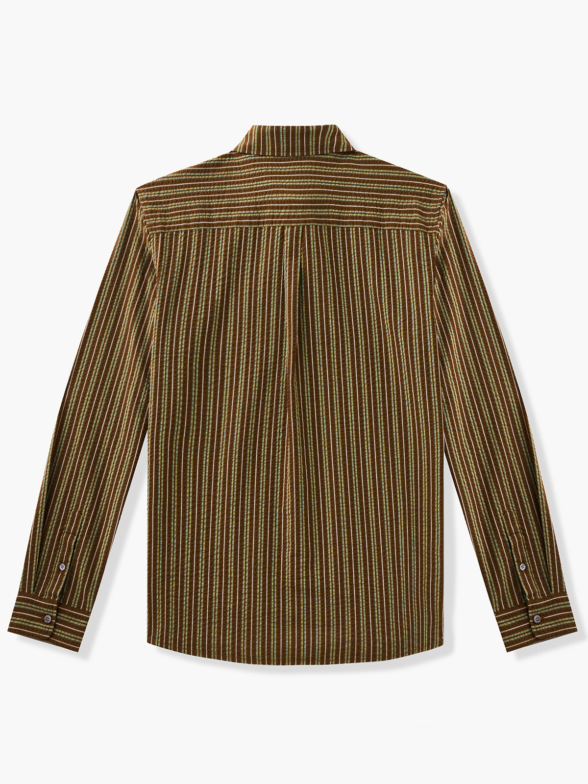 This shirt features a striking design with broad brown stripes contrasted by thin green and white stripes, inspired by nature's earthy tones and fresh greenery. Crafted from cotton, the shirt provides excellent breathability, softness, and moisture-wicking properties, ensuring all-day comfort, and making it ideal for casual outings, workdays, or relaxed weekends.