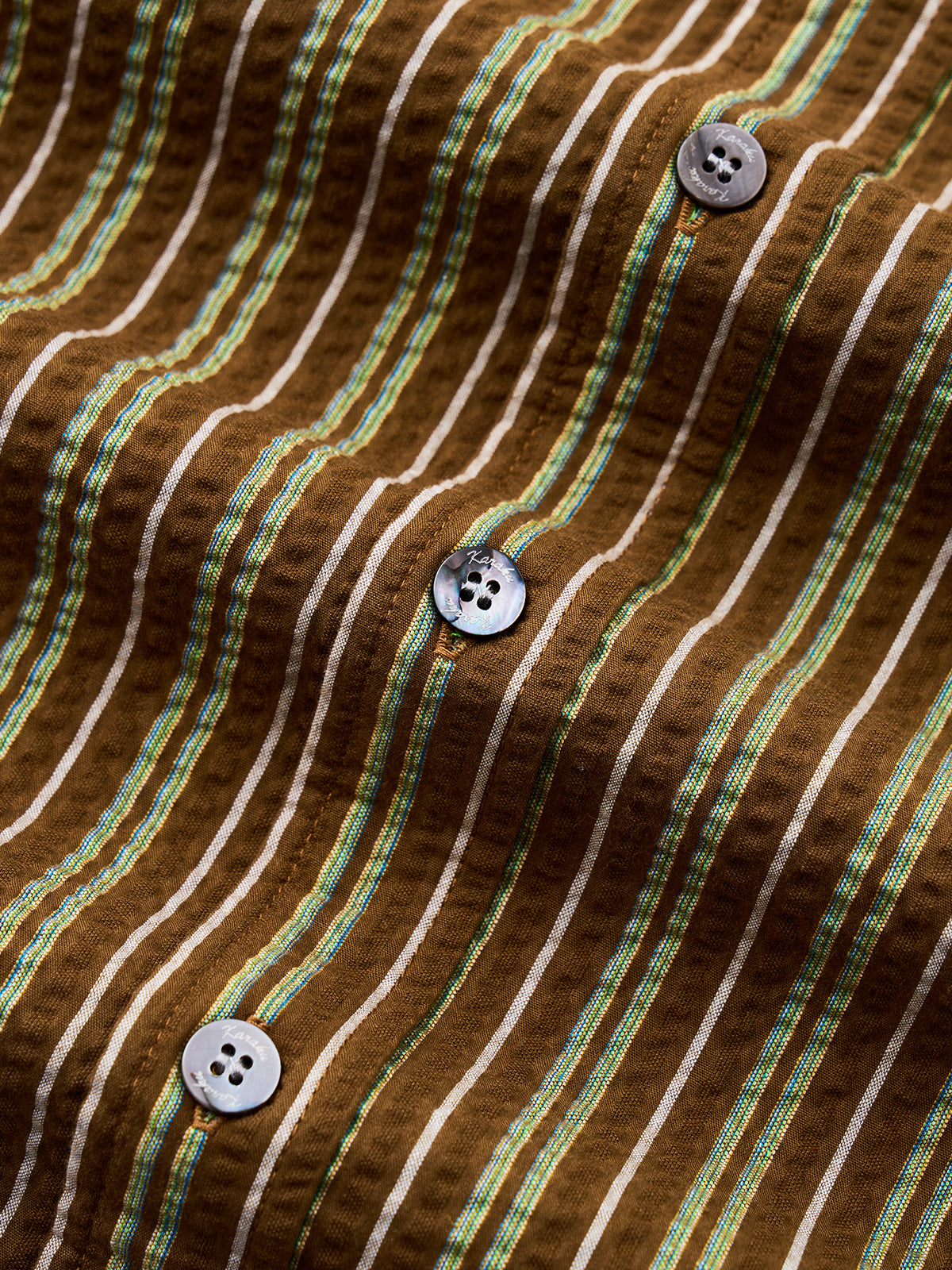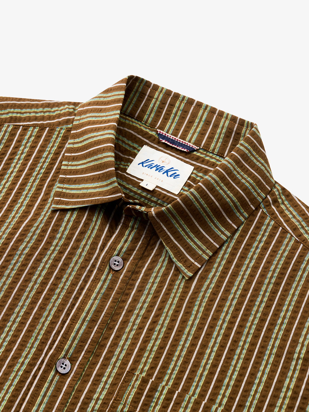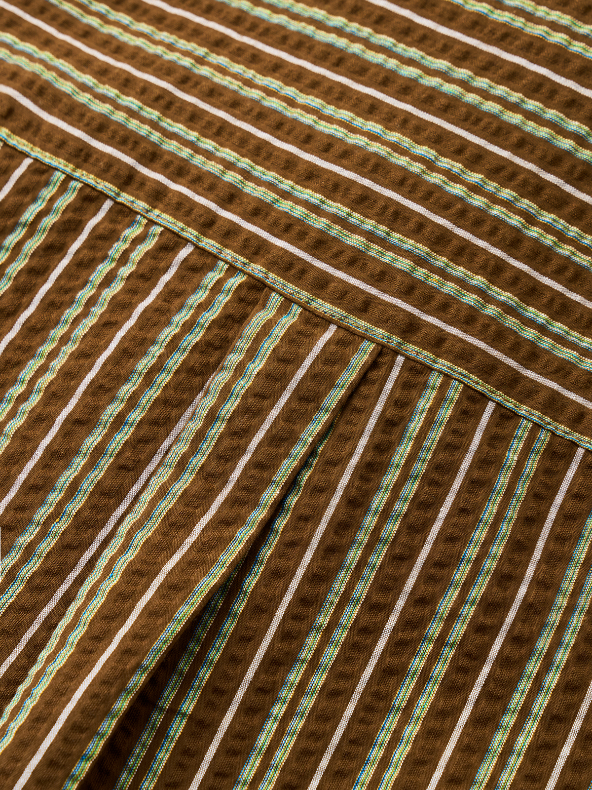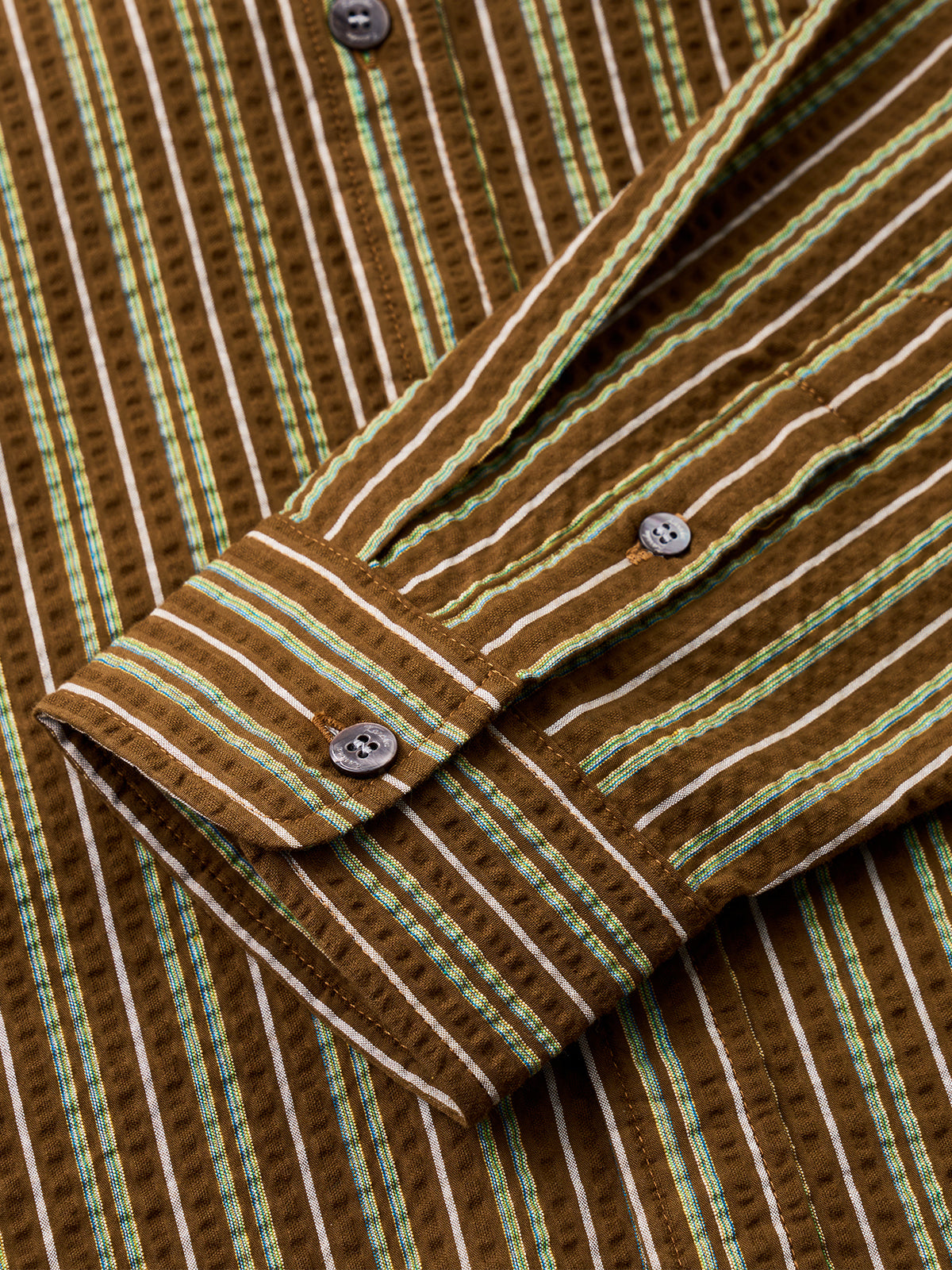 This shirt features a striking design with broad brown stripes contrasted by thin green and white stripes, inspired by nature's earthy tones and fresh greenery. Crafted from cotton, the shirt provides excellent breathability, softness, and moisture-wicking properties, ensuring all-day comfort, and making it ideal for casual outings, workdays, or relaxed weekends.