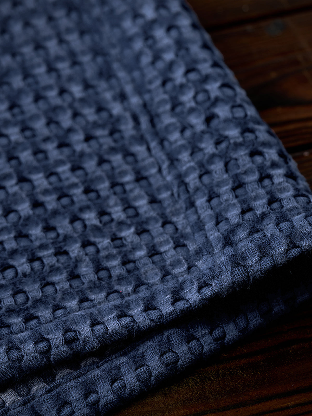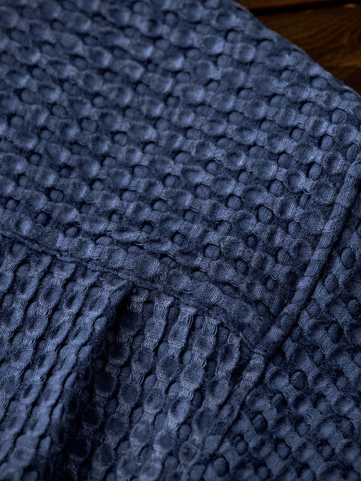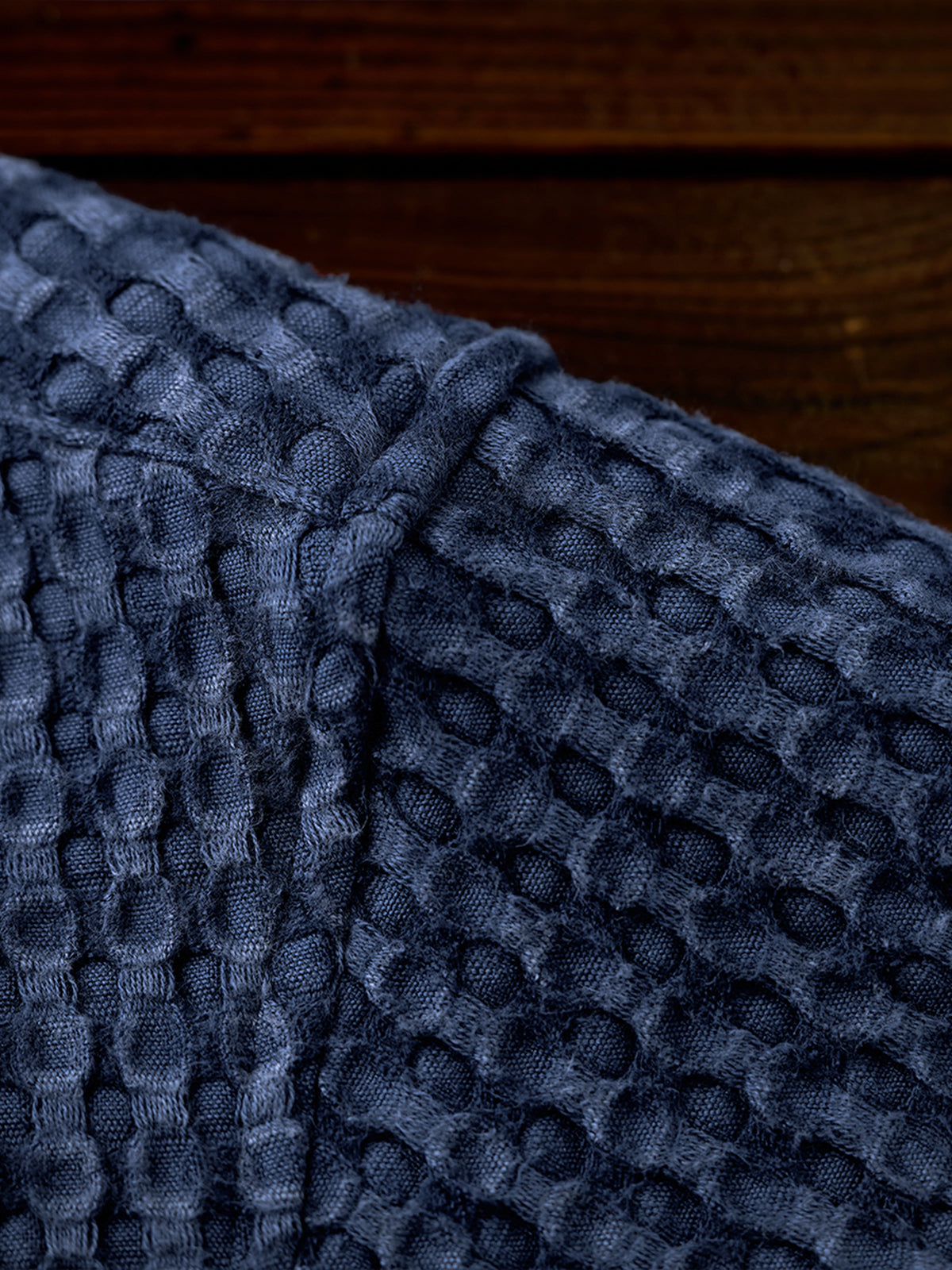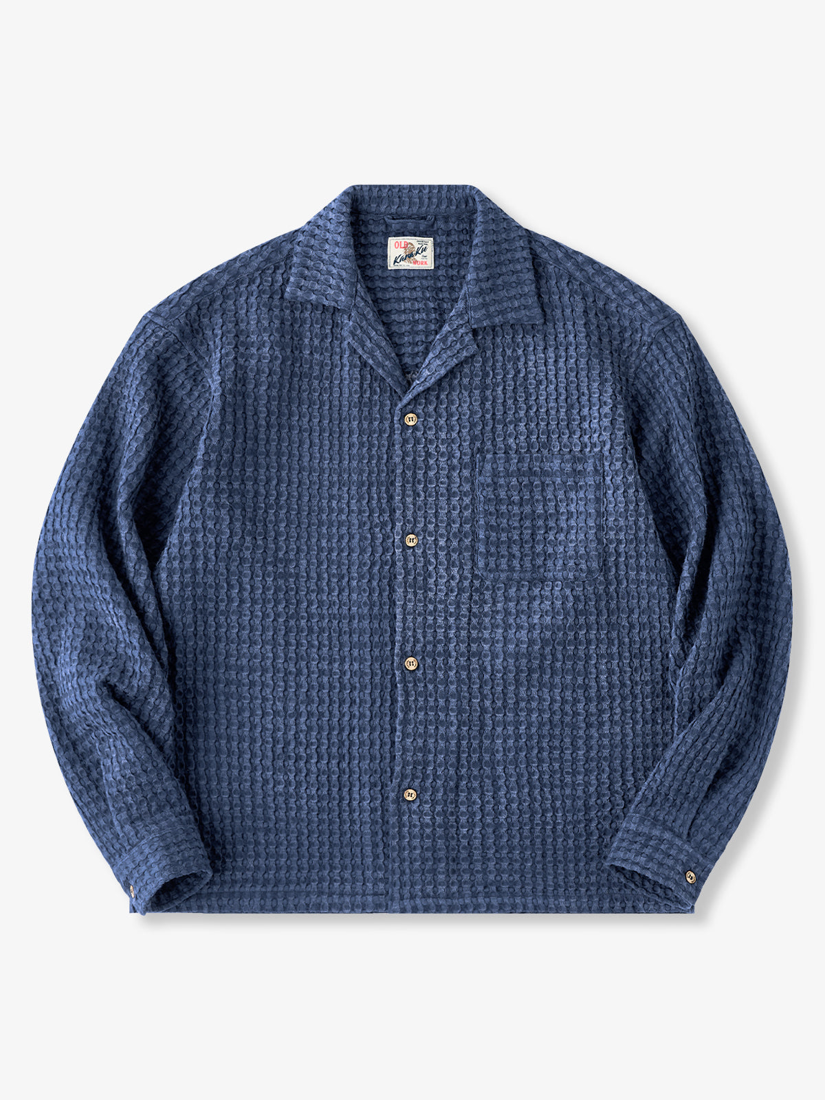 "Indigo-Dyed Series" Cotton-Linen Aloha Shirt with Toucan & Monstera Print