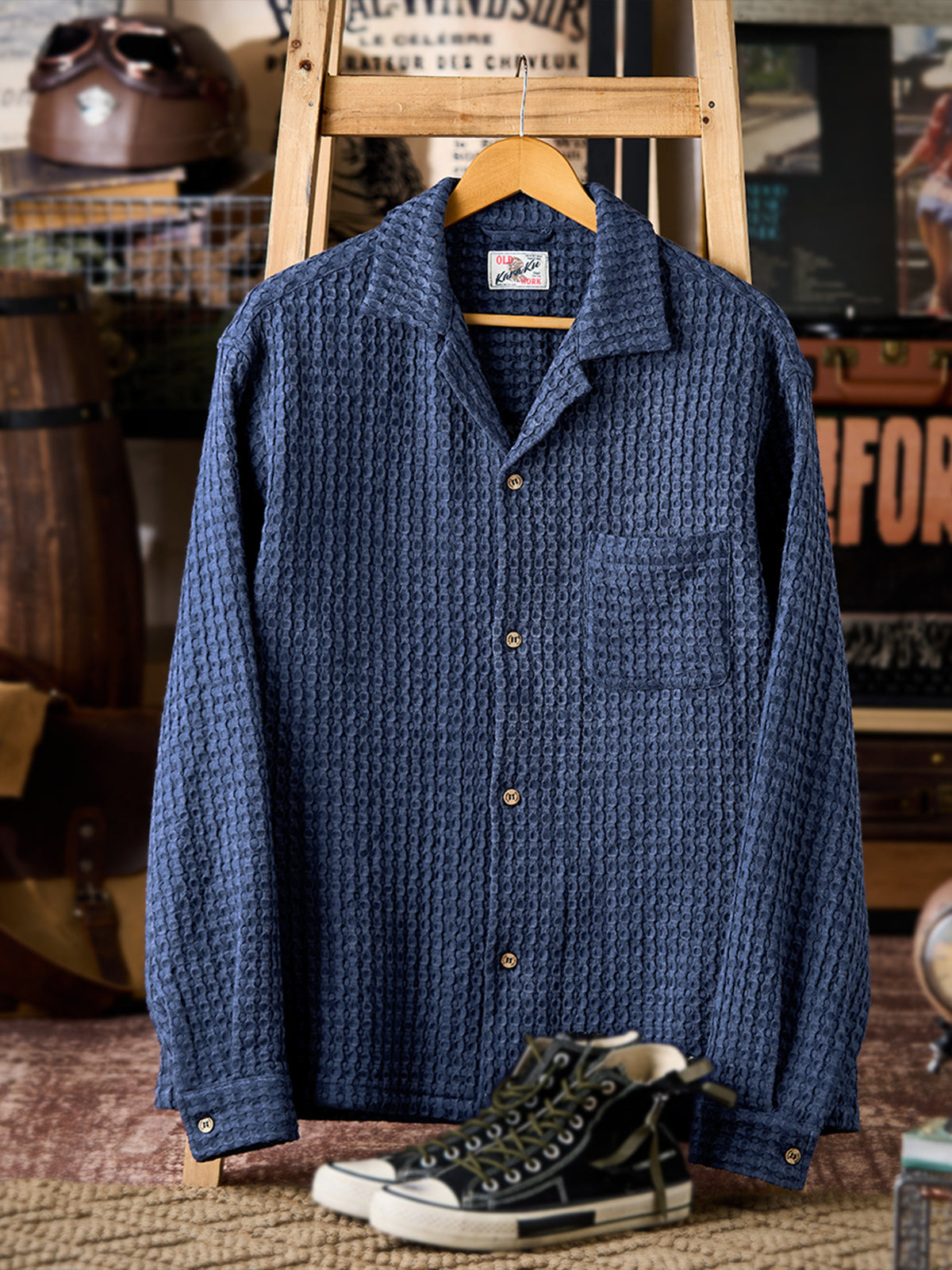 Ukiyo-e "Kumagai Jirō Naozane / Ichikawa Danjūrō" Wave pattern open collar shirt