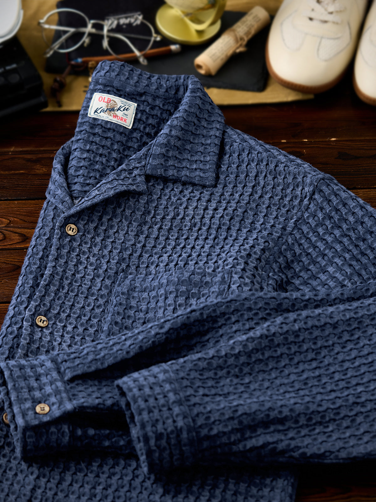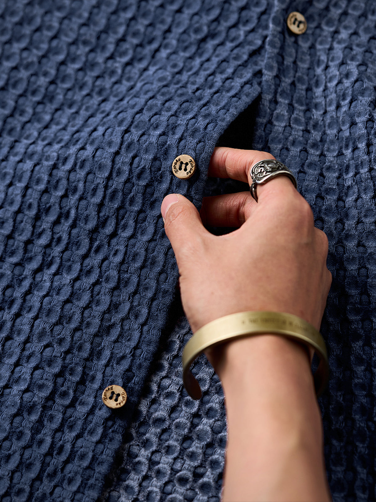 Jacquard Stripe Openwork Lace Cuban Shirt