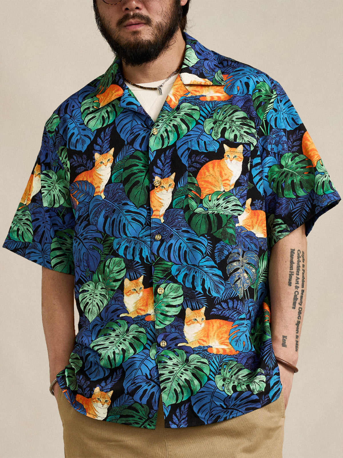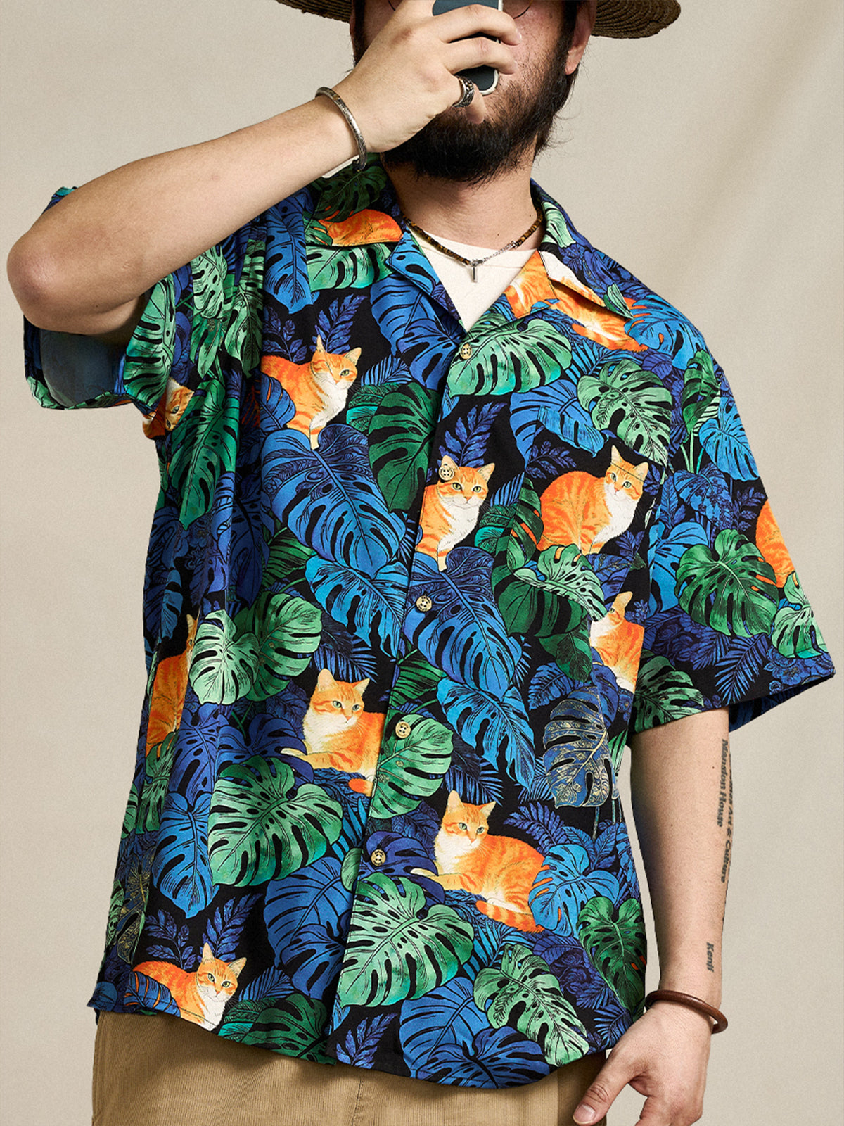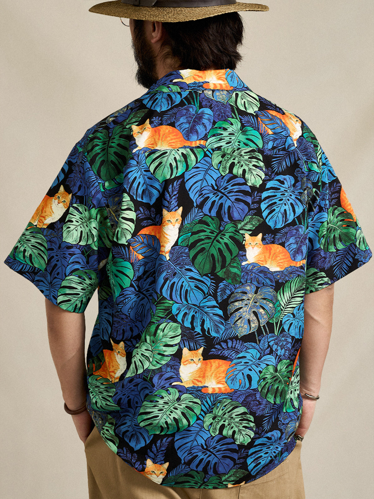 [Pre-order] Monstera & Ginger Tabby Print Cuban Collar Aloha Shirt