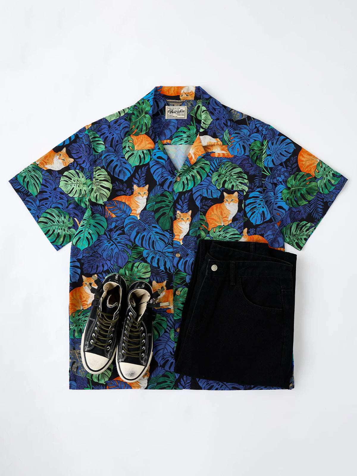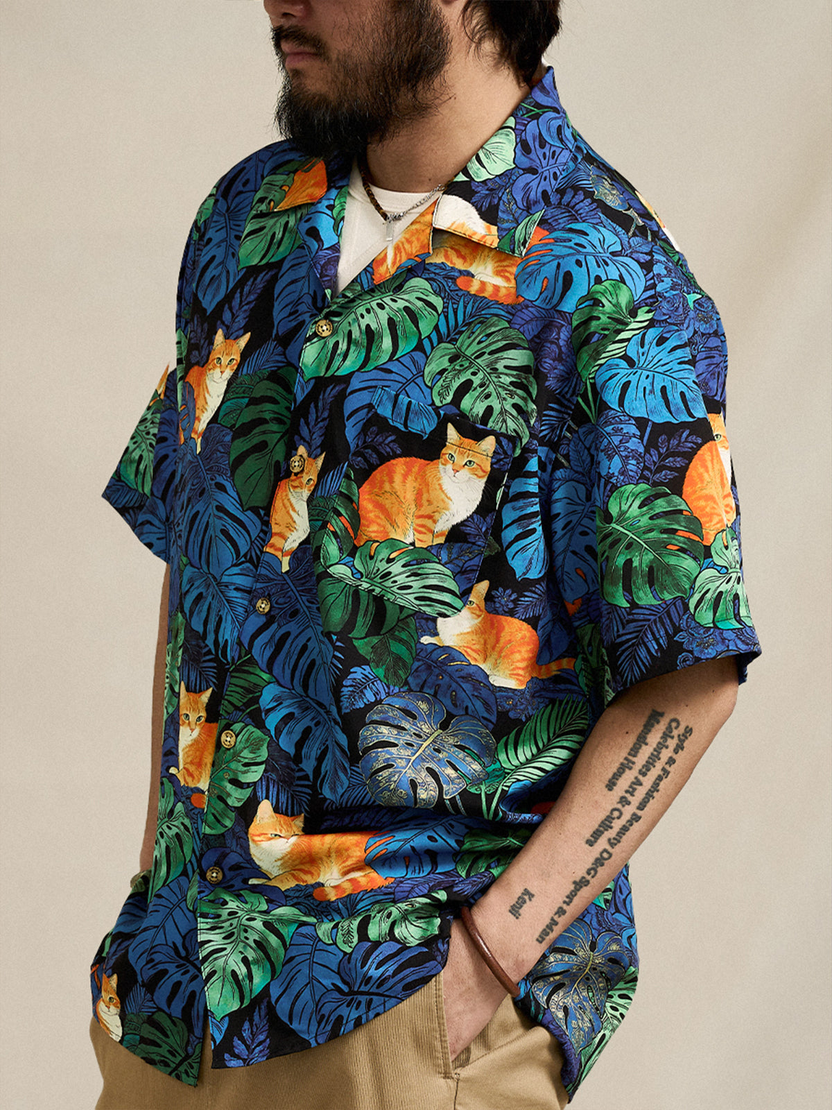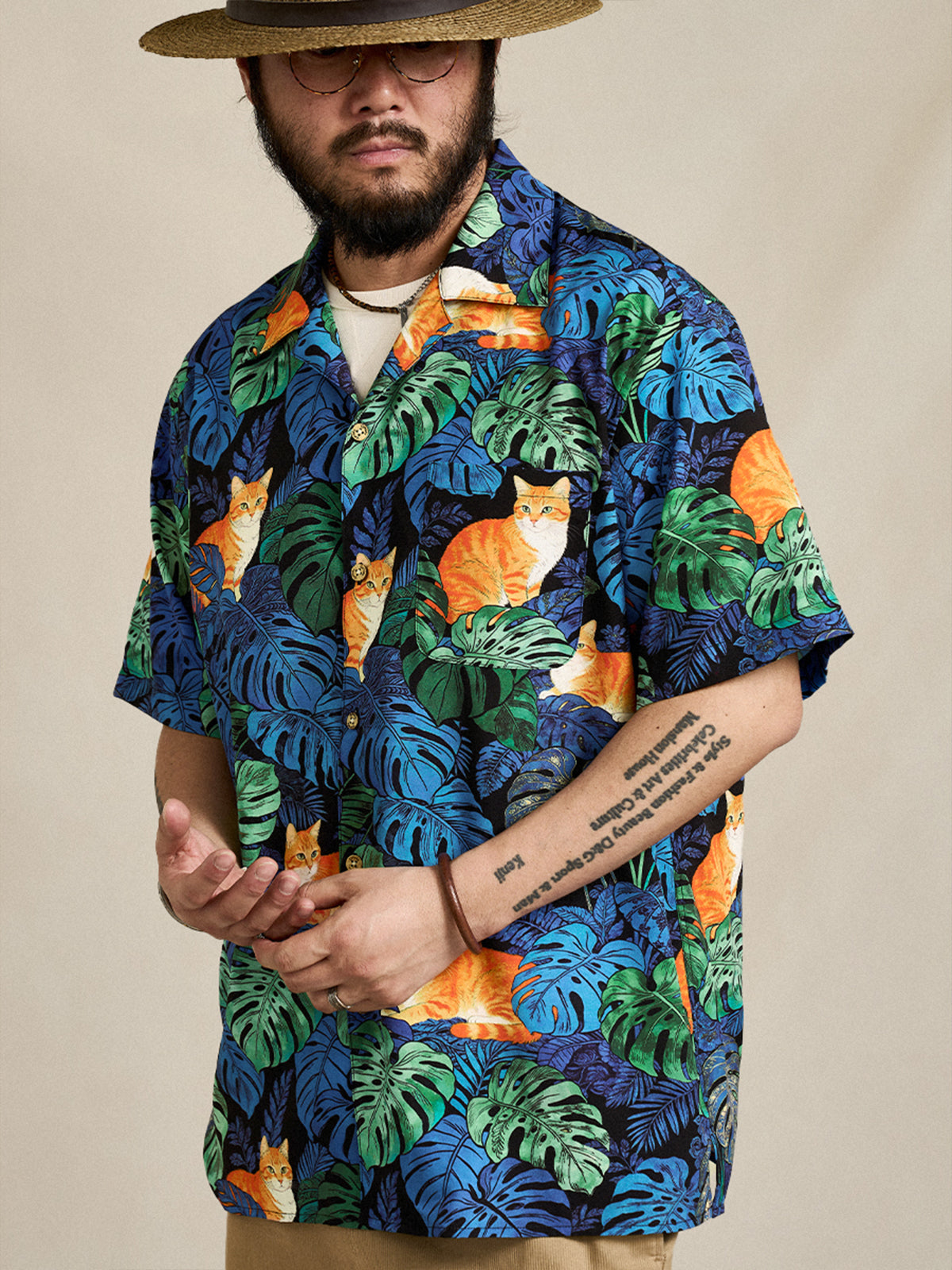 [Pre-order] Monstera & Ginger Tabby Print Cuban Collar Aloha Shirt