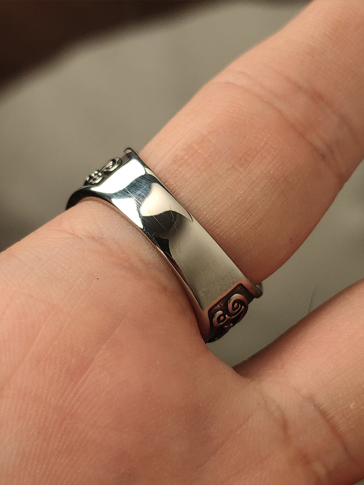 Rune & Beast Engraved Titanium Steel Ring with Turquoise
