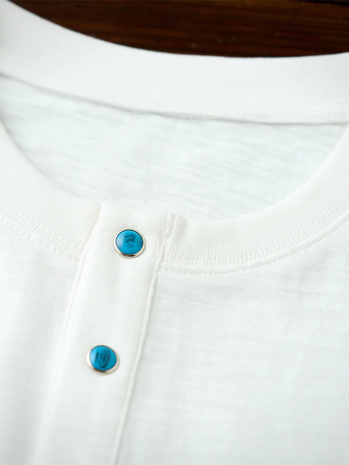 Turquoise Button Cotton Slub Henley T-Shirt