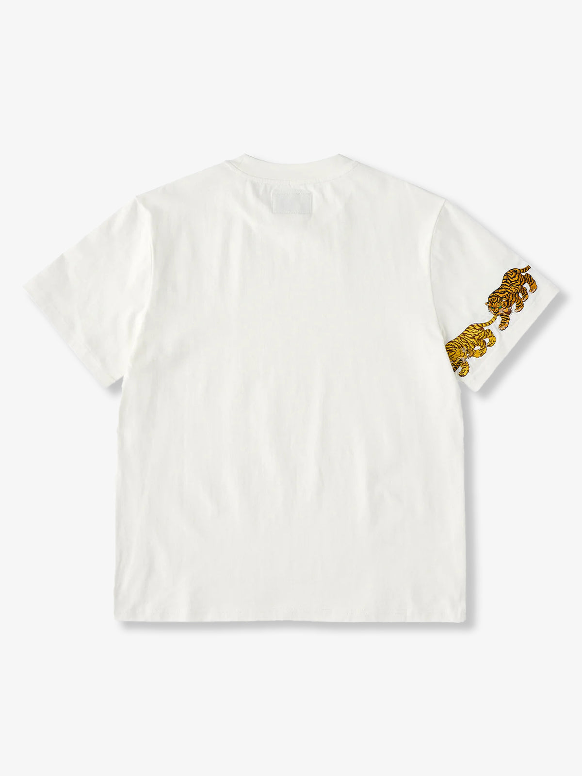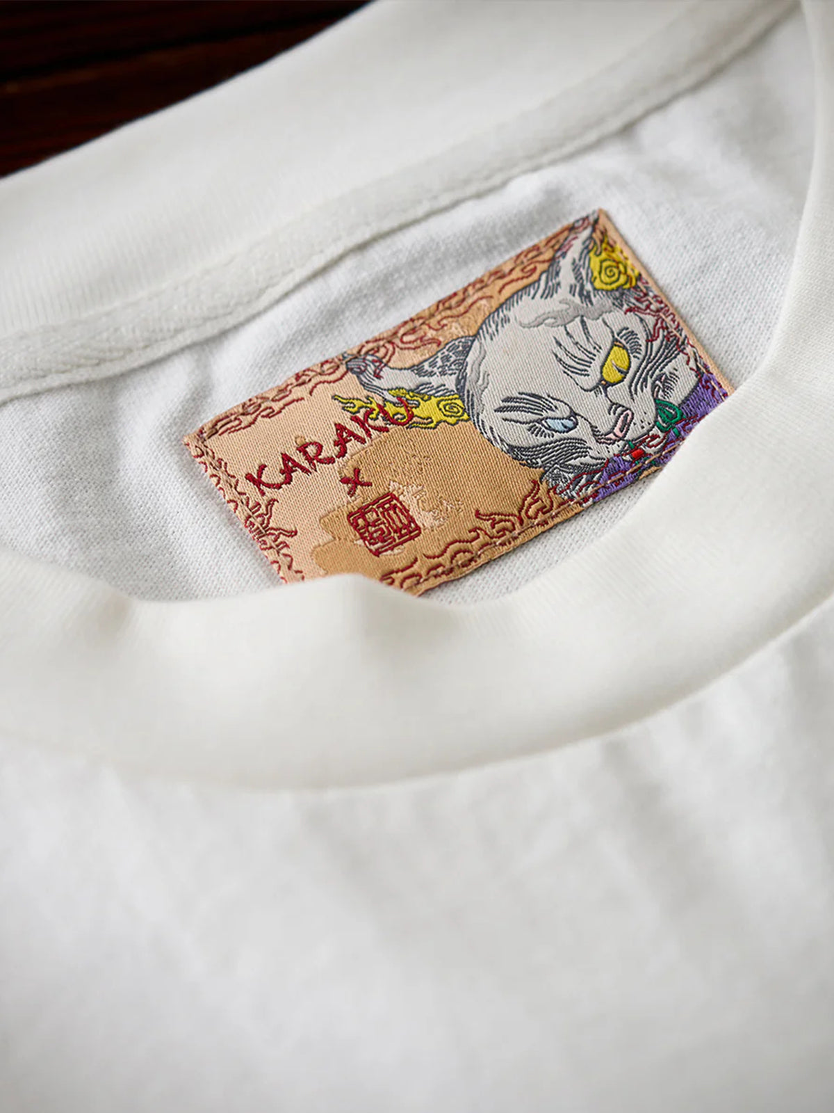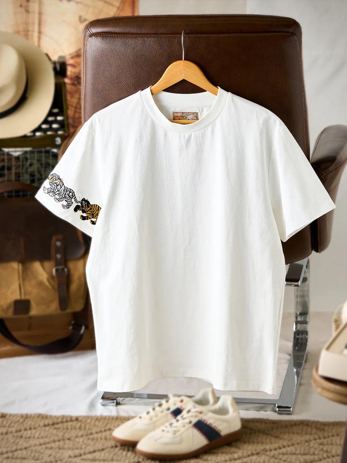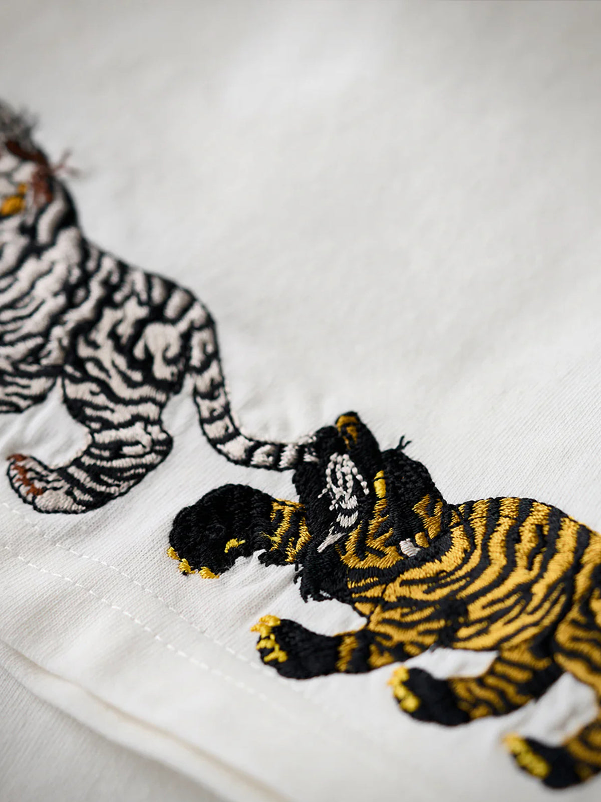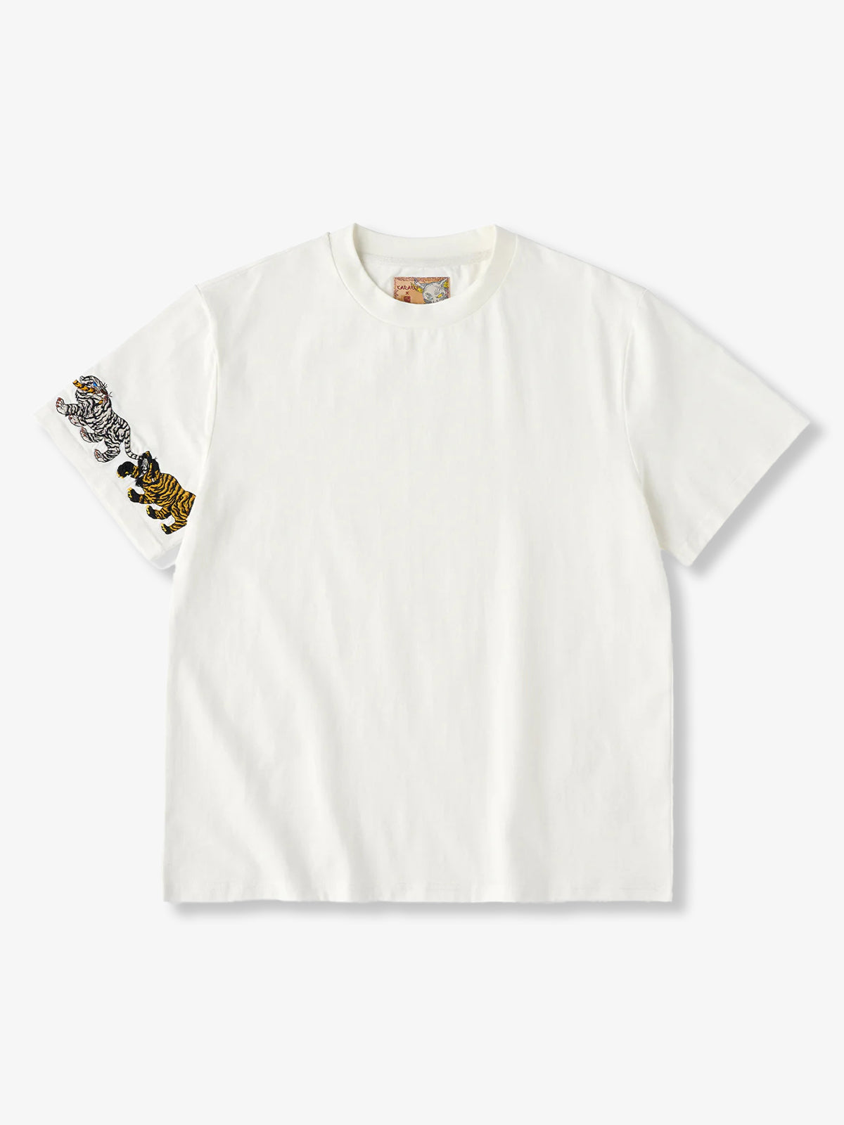 KARAKU×Ayako Ishiguro "Tiger Row Biting the Tail" Sleeve Embroidery Cotton T-Shirt