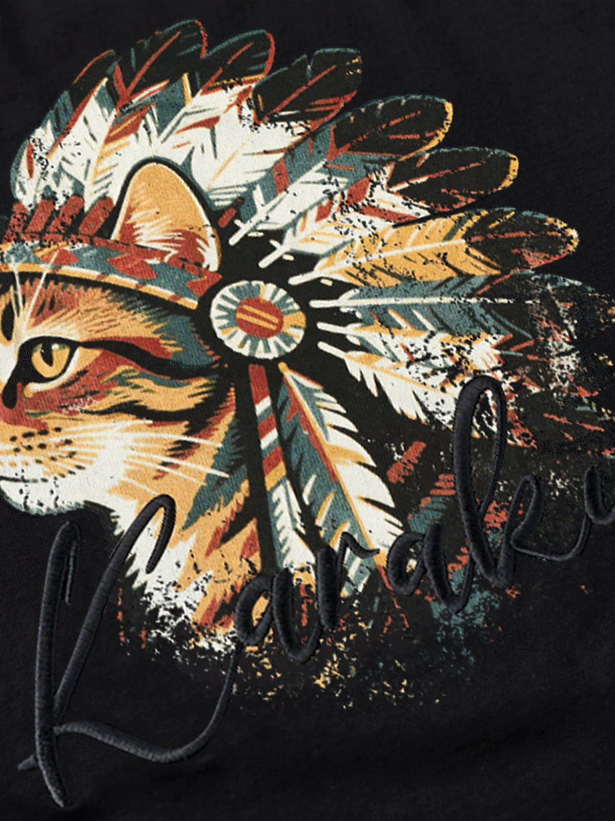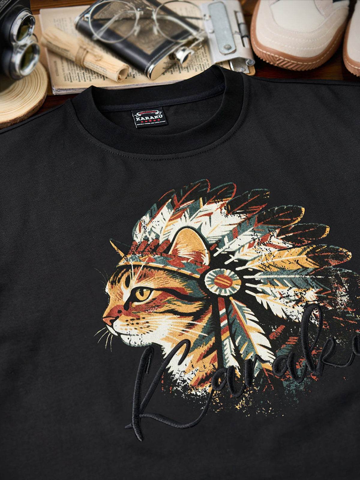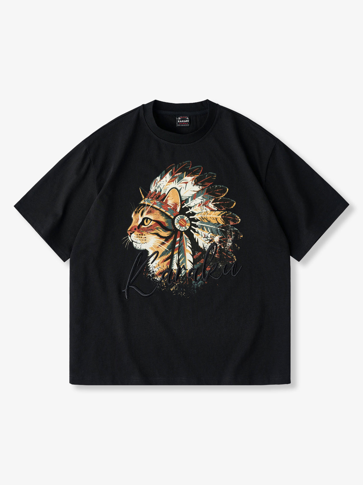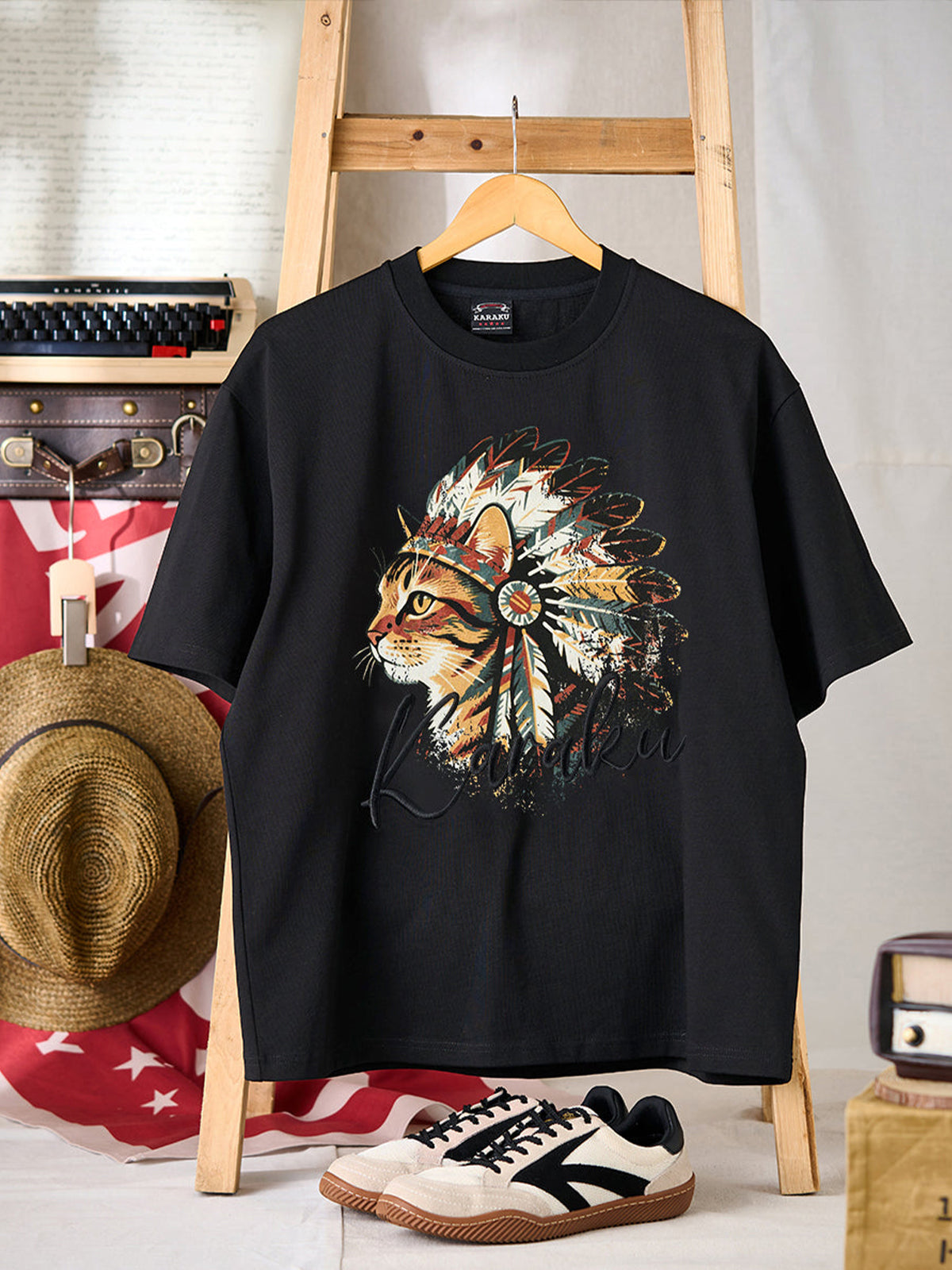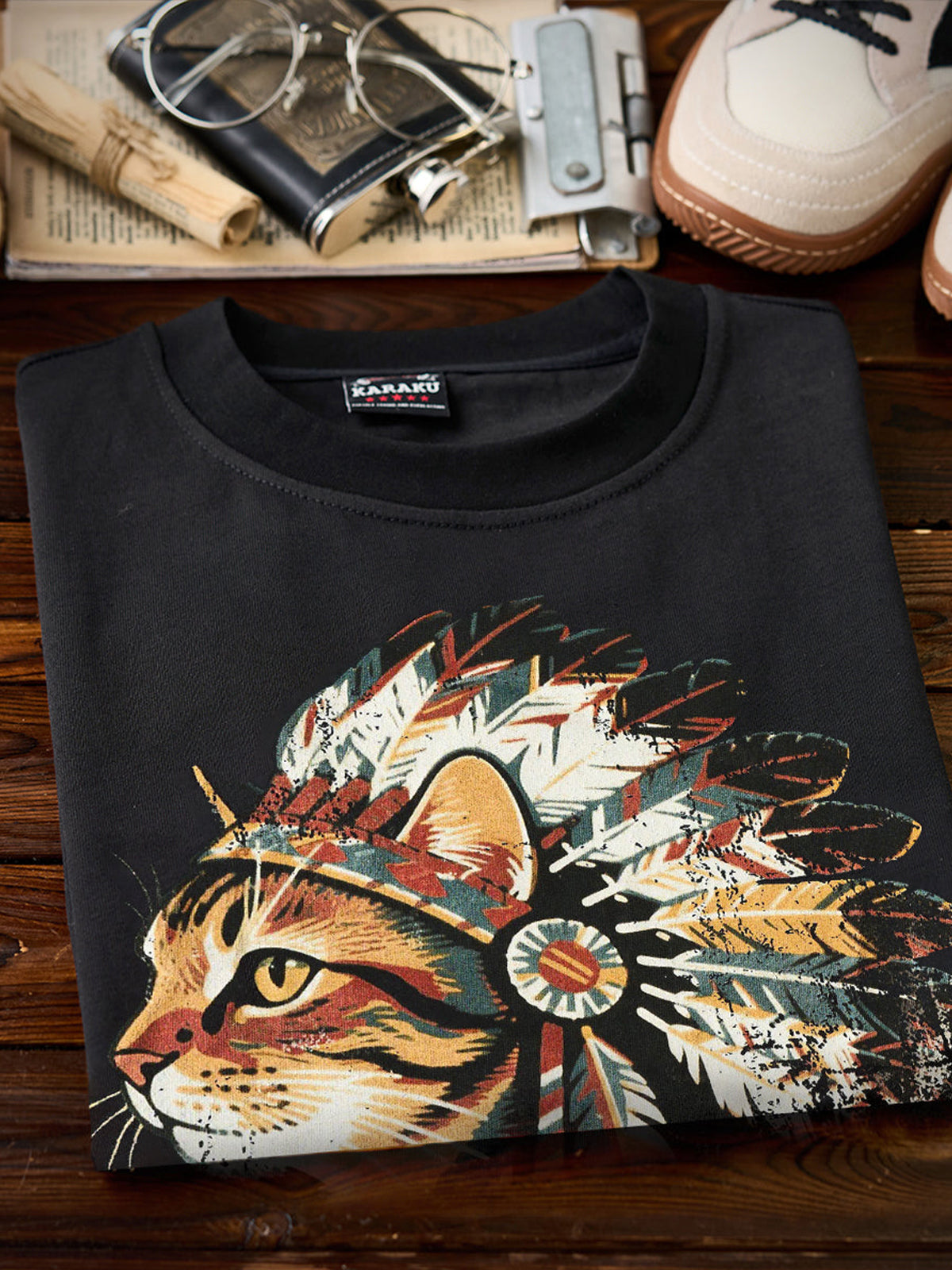 "Indian Chief Cat" Pattern Cotton T-shirt