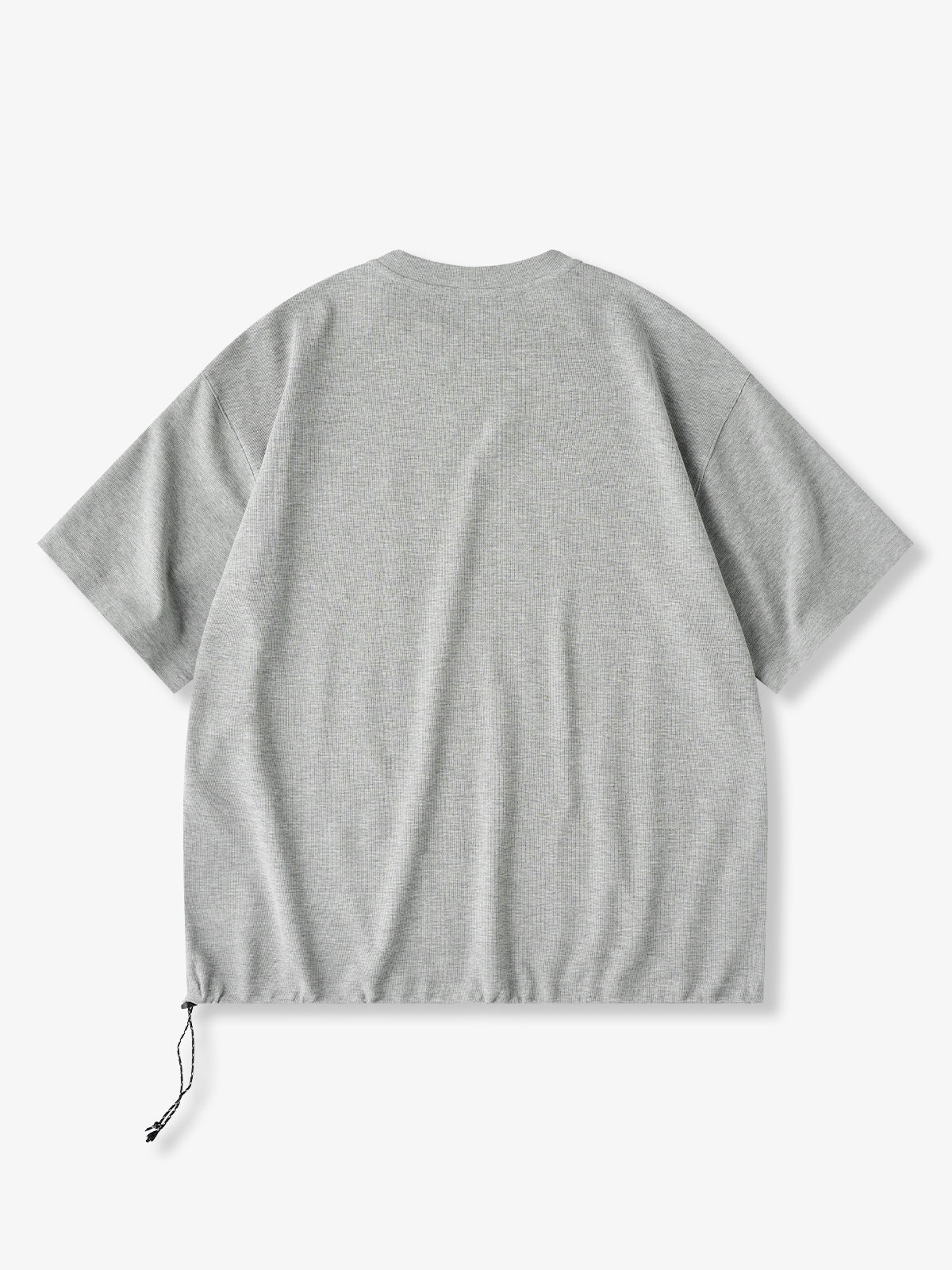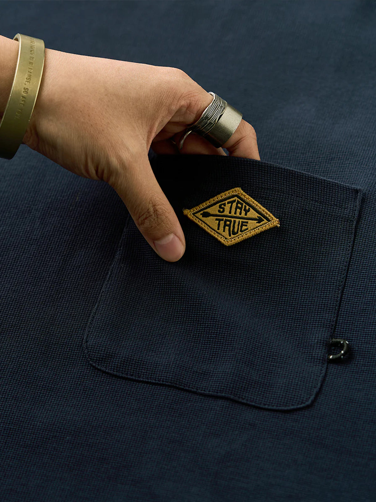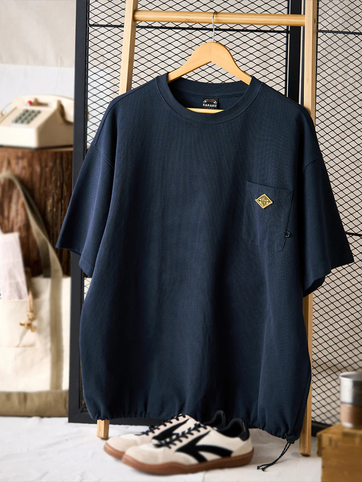 “STAY TRUE” Embroidered Patch Drawstring Waffle T-shirt