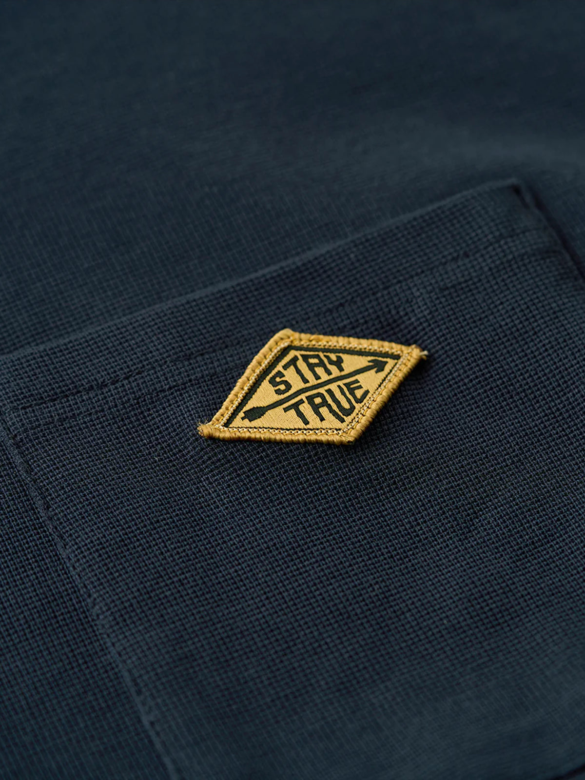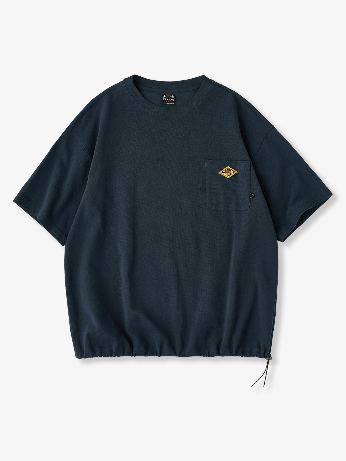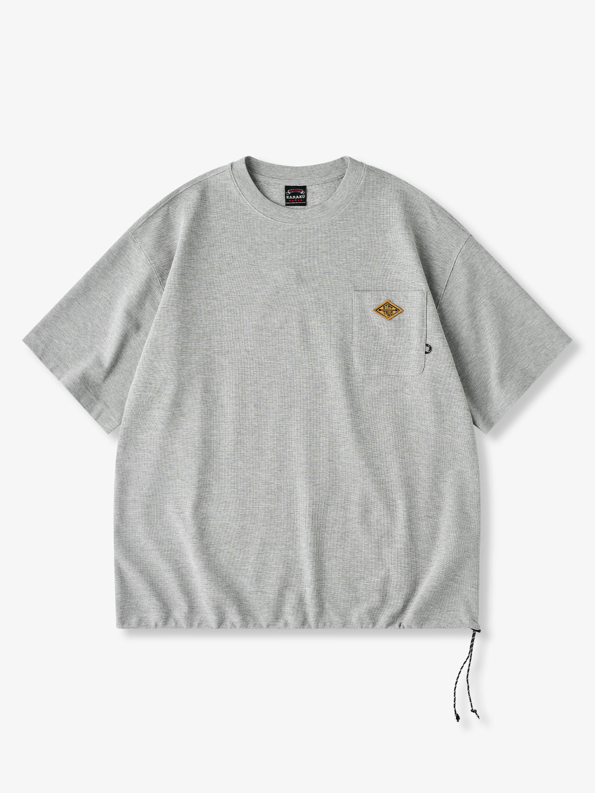 “STAY TRUE” Embroidered Patch Drawstring Waffle T-shirt