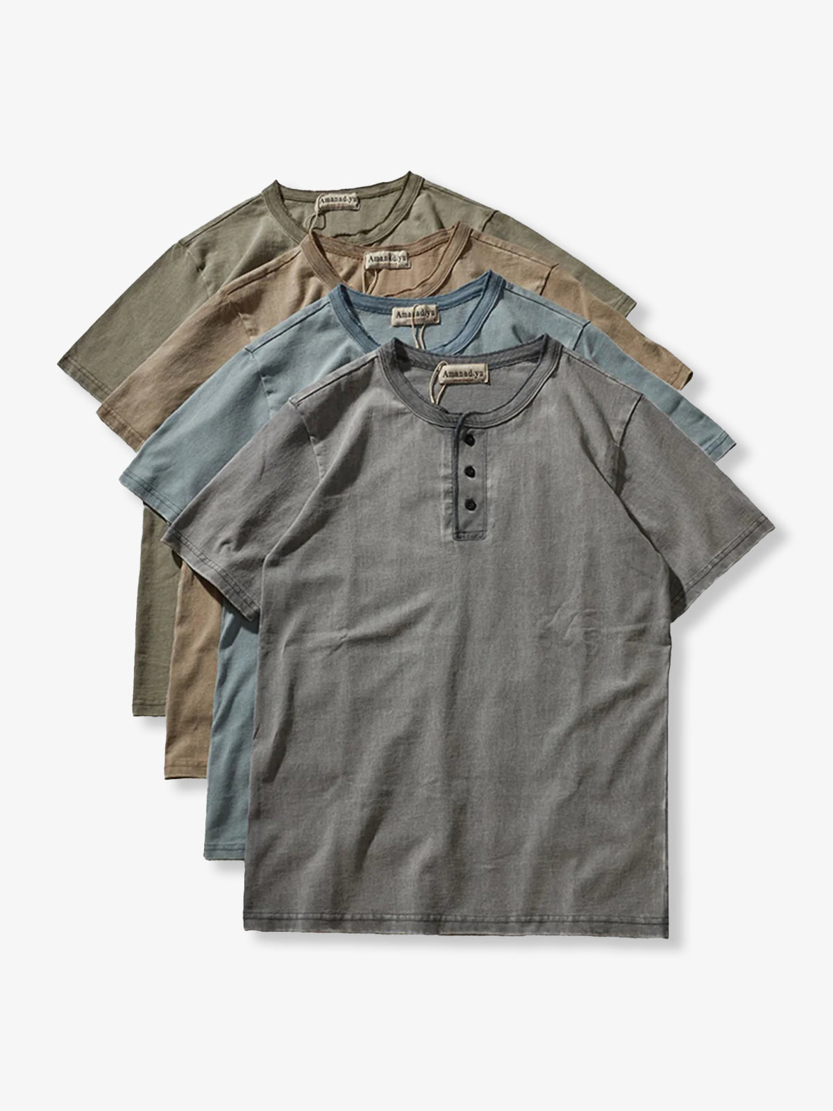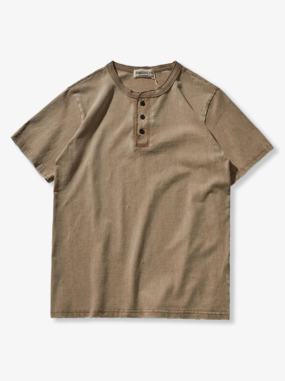 280g Heavyweight 3-Button Henley Neck T-shirt