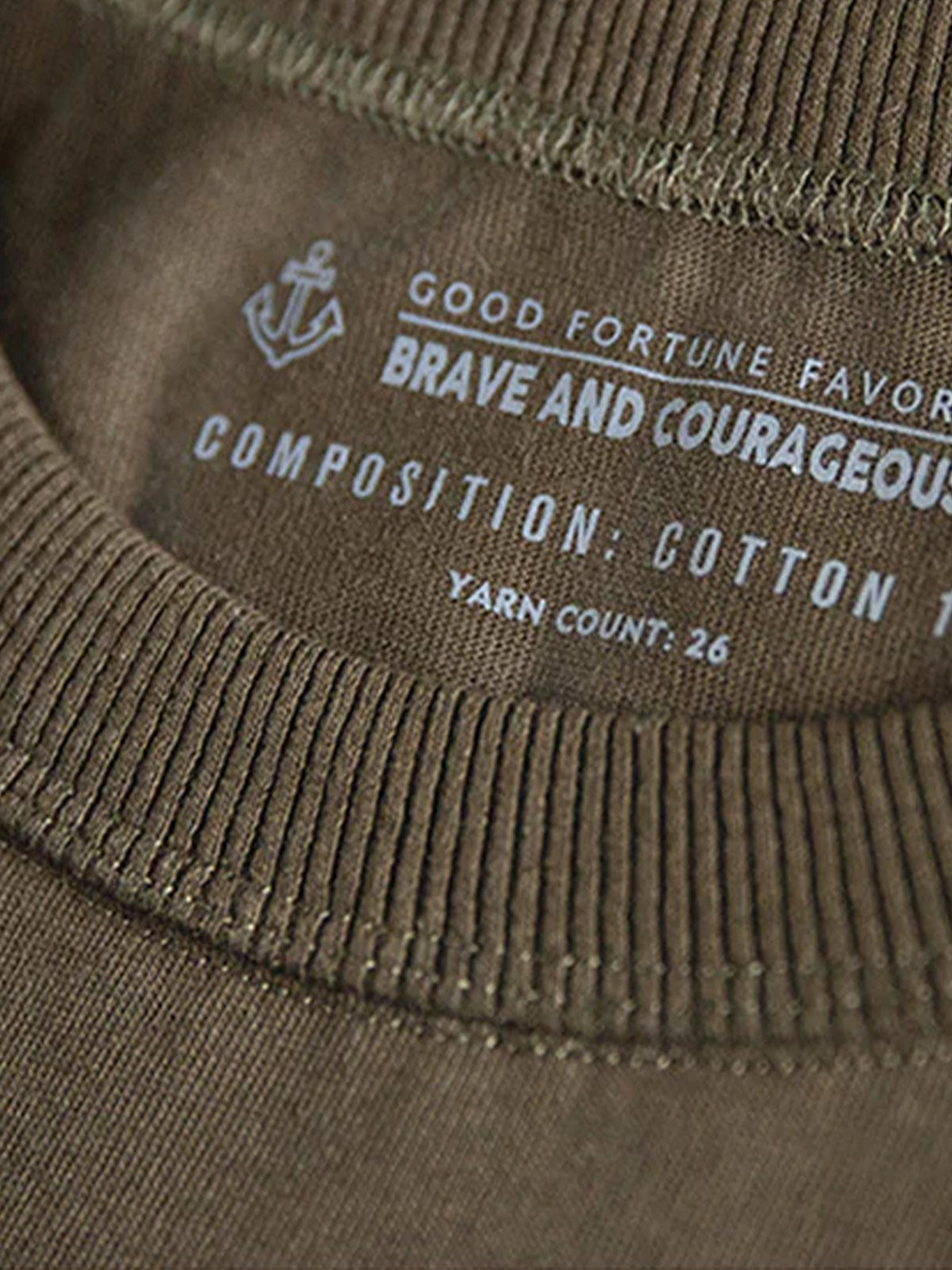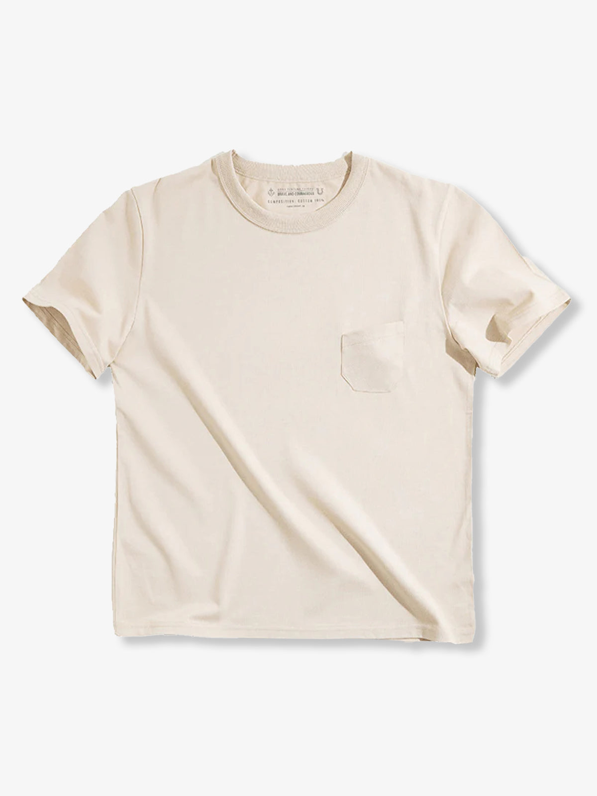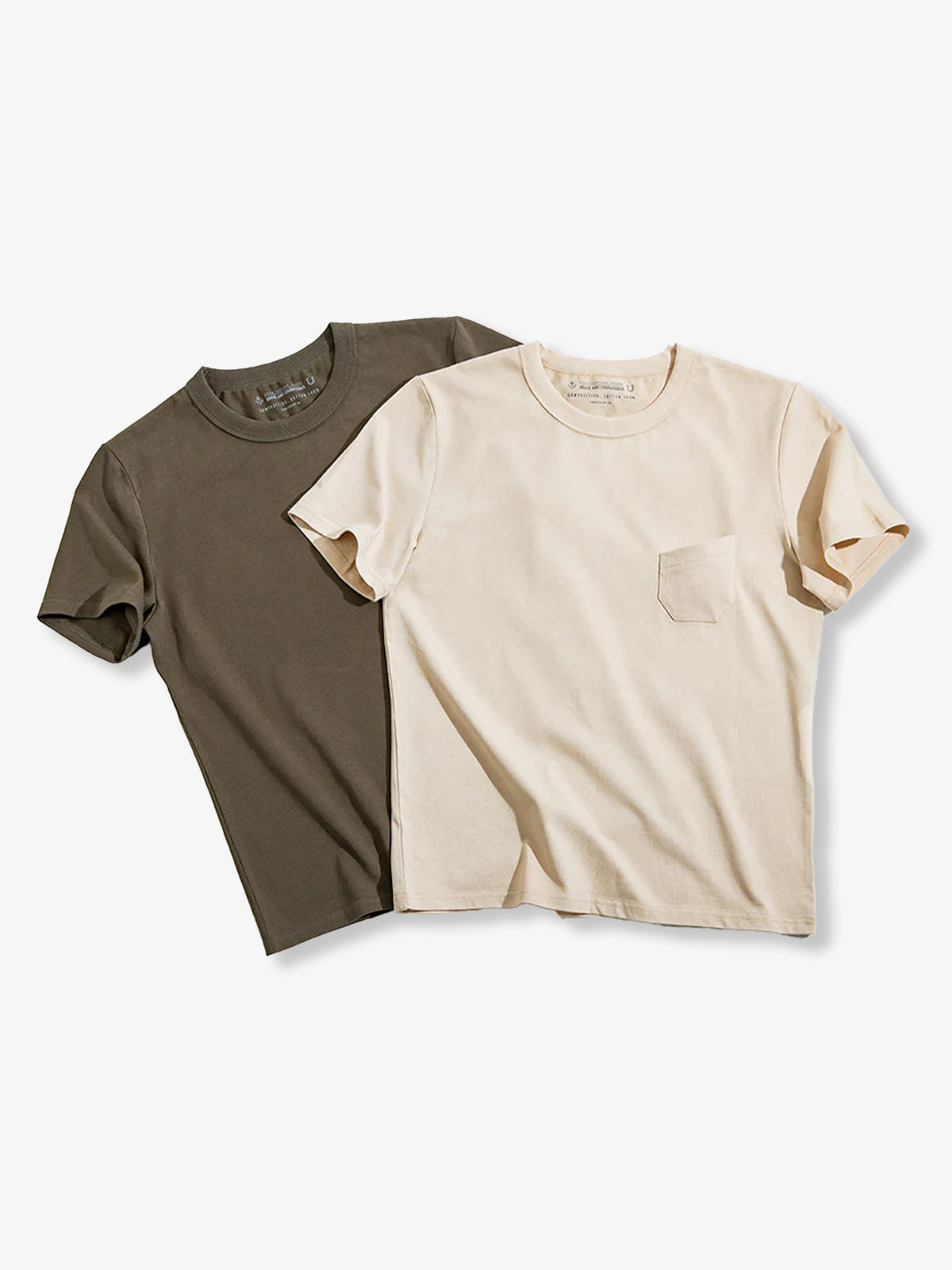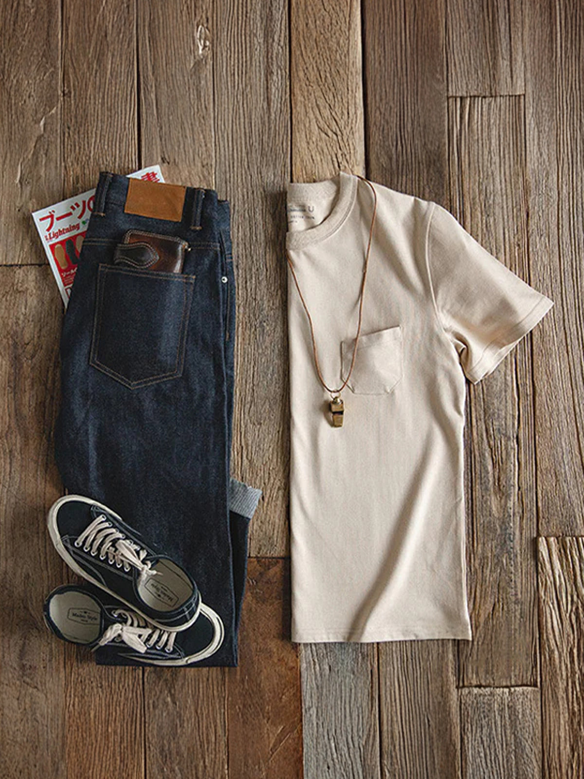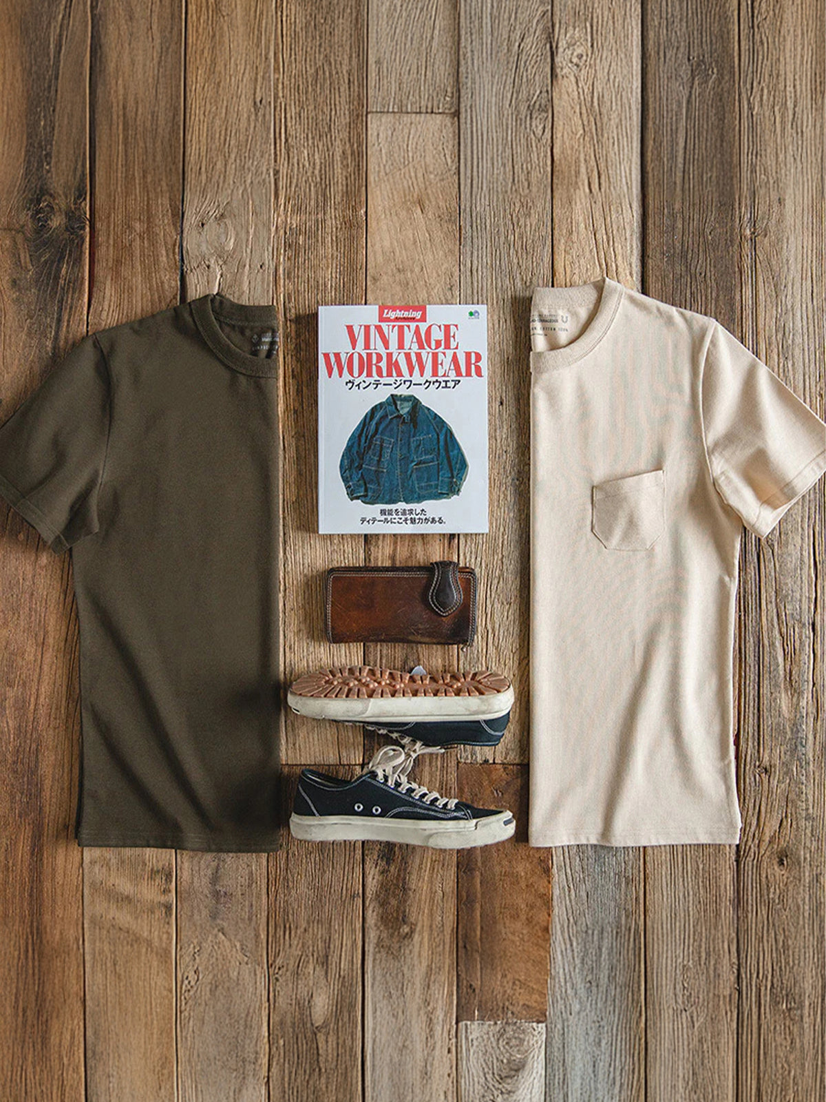 The triple stitching adopted is tightly sewn with three threads. Its characteristics are called a sturdy specification, which gives the workwear a sturdiness. An irregularly shaped pocket is attached to the left chest. It is light and soft, so it is stress-free to wear. The ribbing at the collar is also triple stitched, and the ribbing gives a simple but moderately casual impression, and it is a tough item that pursues long-term wear.
