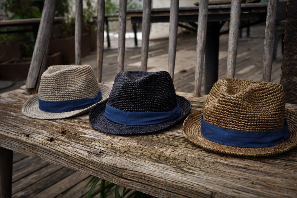 Crafted from raffia palm materials, this hat features a unique, timeless design for effortless elegance. Trimmed with a grosgrain ribbon and a comfortable sweatband, it combines style and comfort seamlessly.