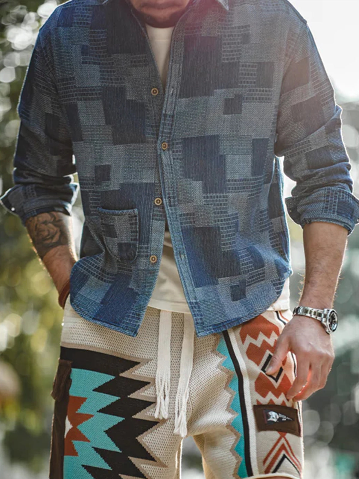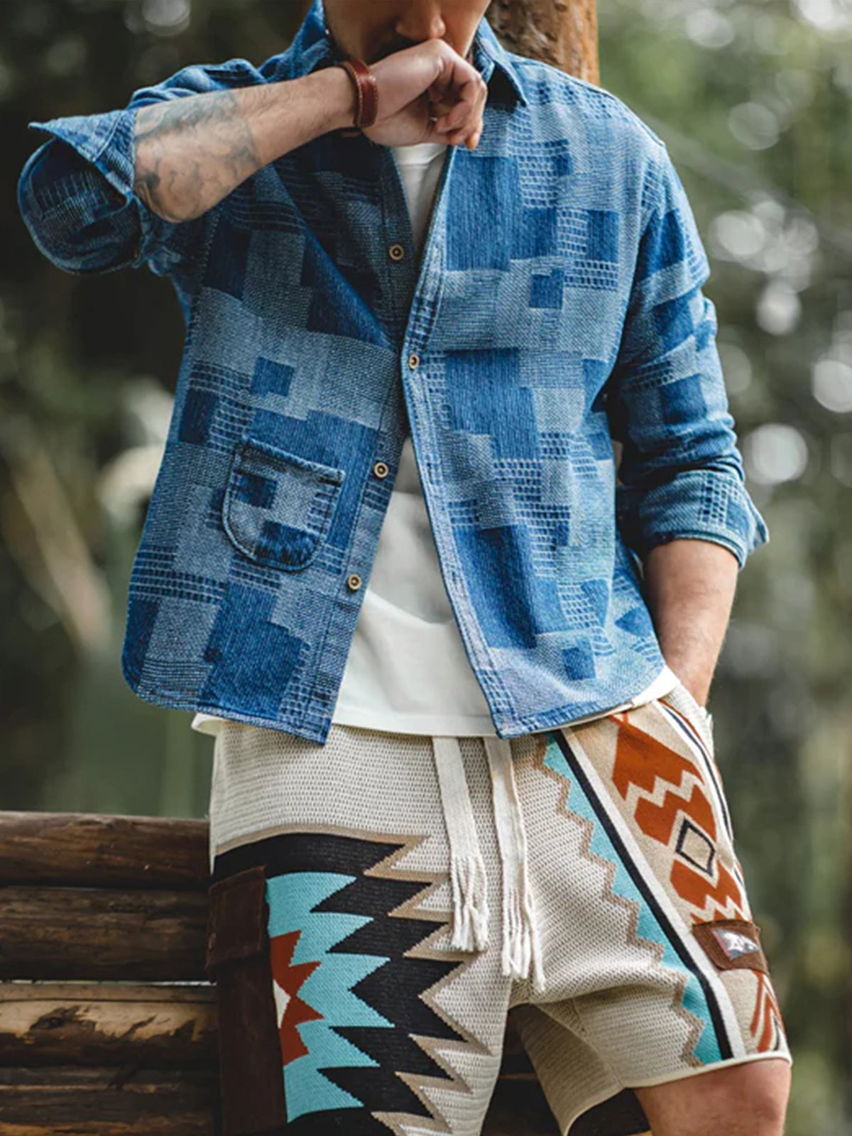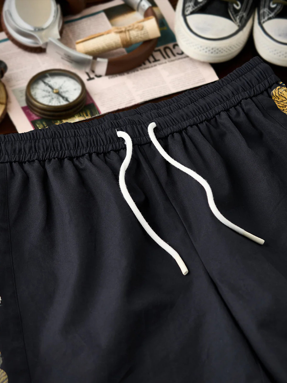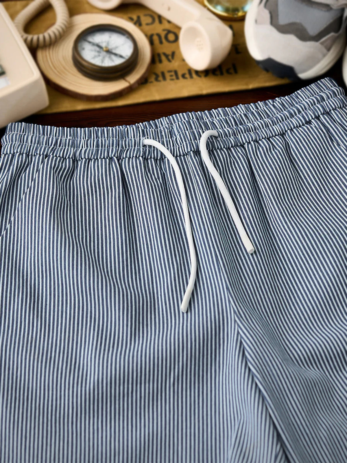 "Stay True" Embroidered Yarn-Dyed Stripe Easy Shorts
