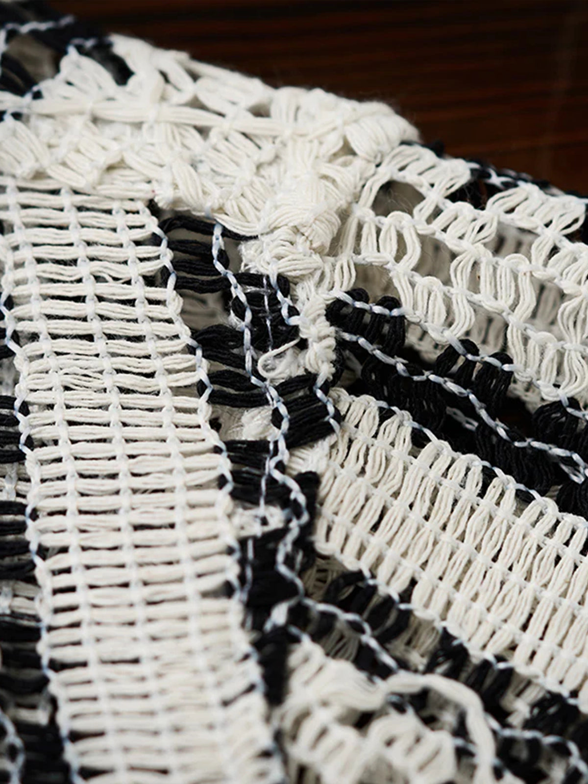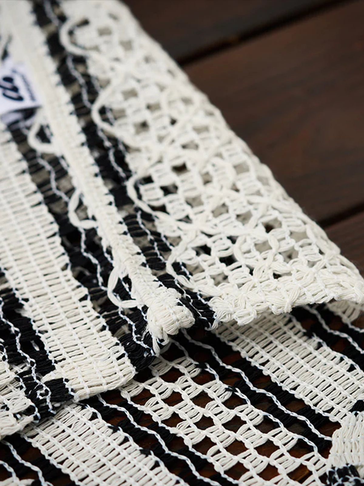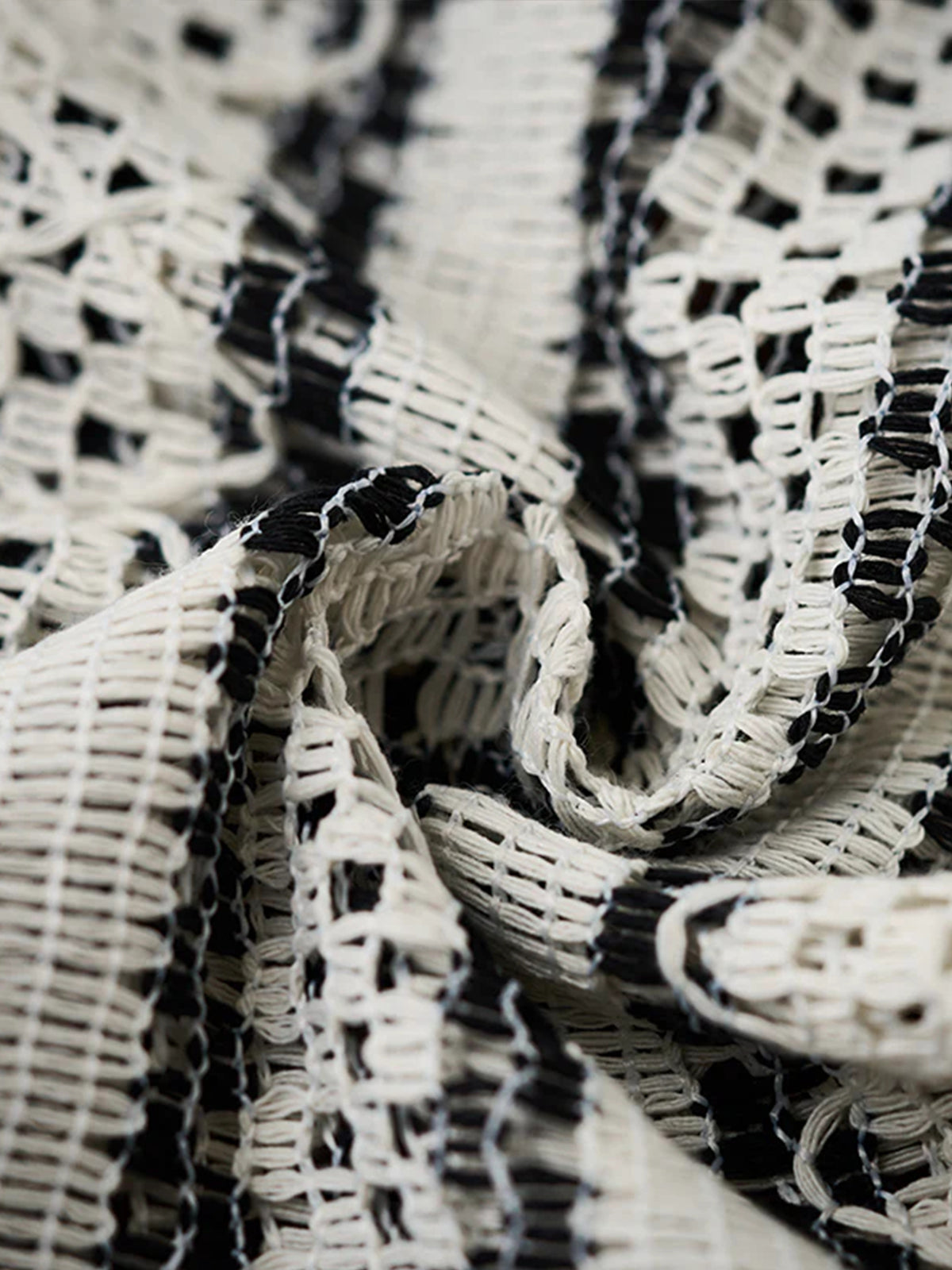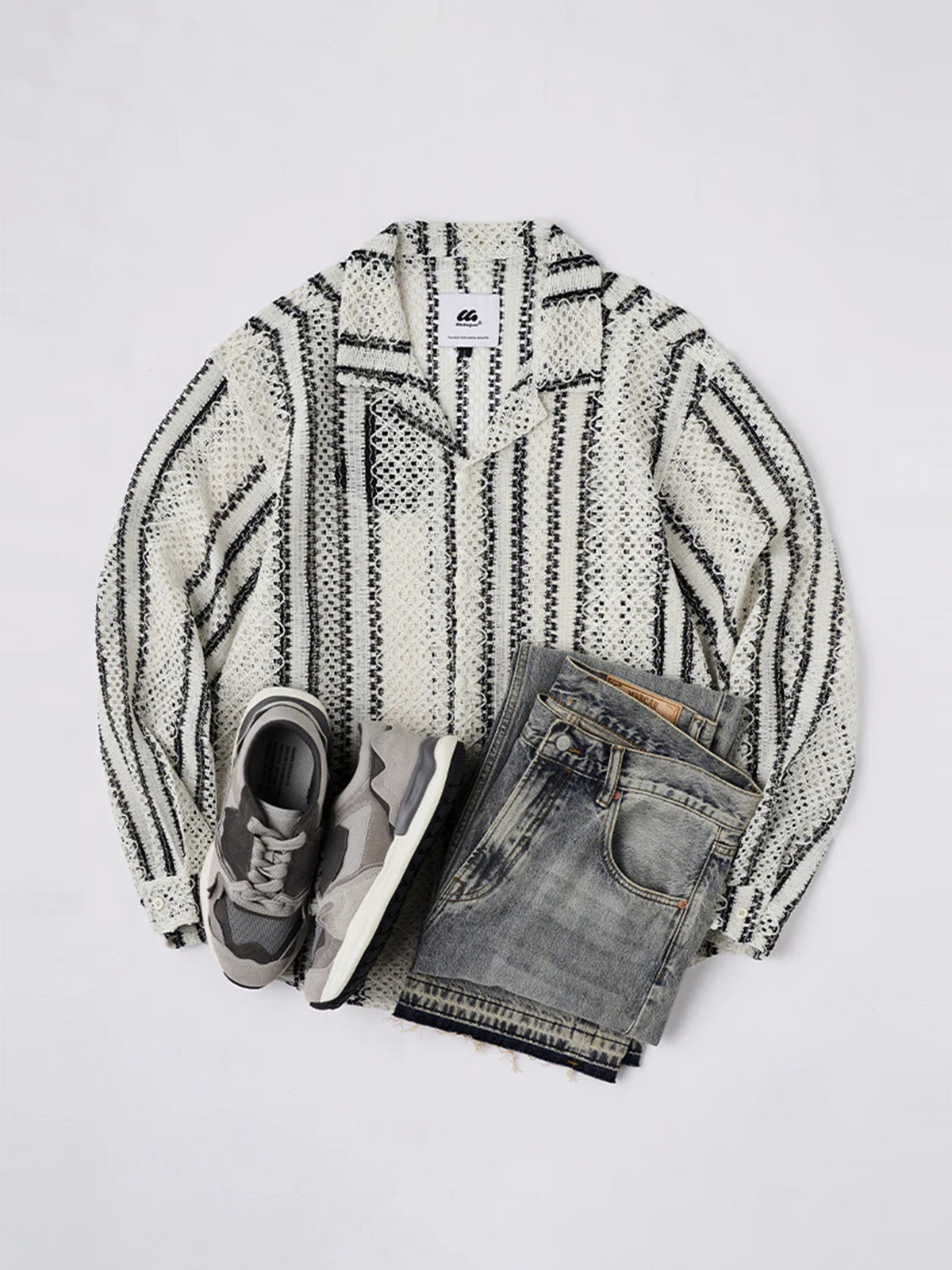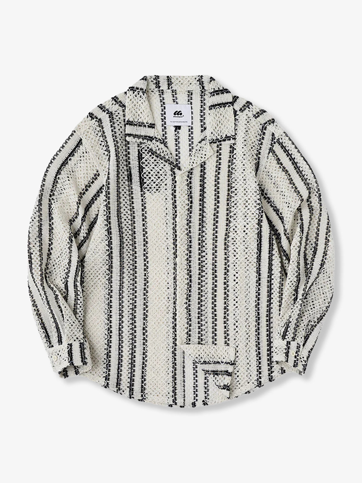 The openwork knit is a knitting method characterized by holes or patterns between the stitches. This knit pattern adds lightness and elegance to the shirt’s appearance. The horizontally knitted stripe pattern blends well with simple summer styles. The trendy openwork knit provides a moderate sheerness that creates a relaxed feel. The sheer look offers a refreshing impression and a lightweight wearing experience, allowing you to enjoy spring and summer fashion.