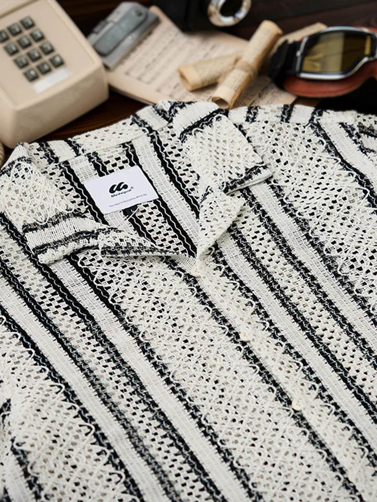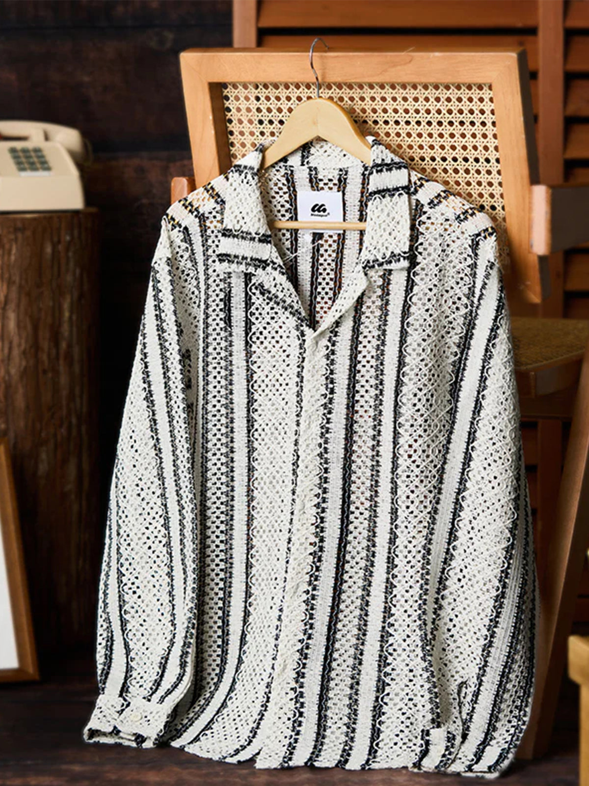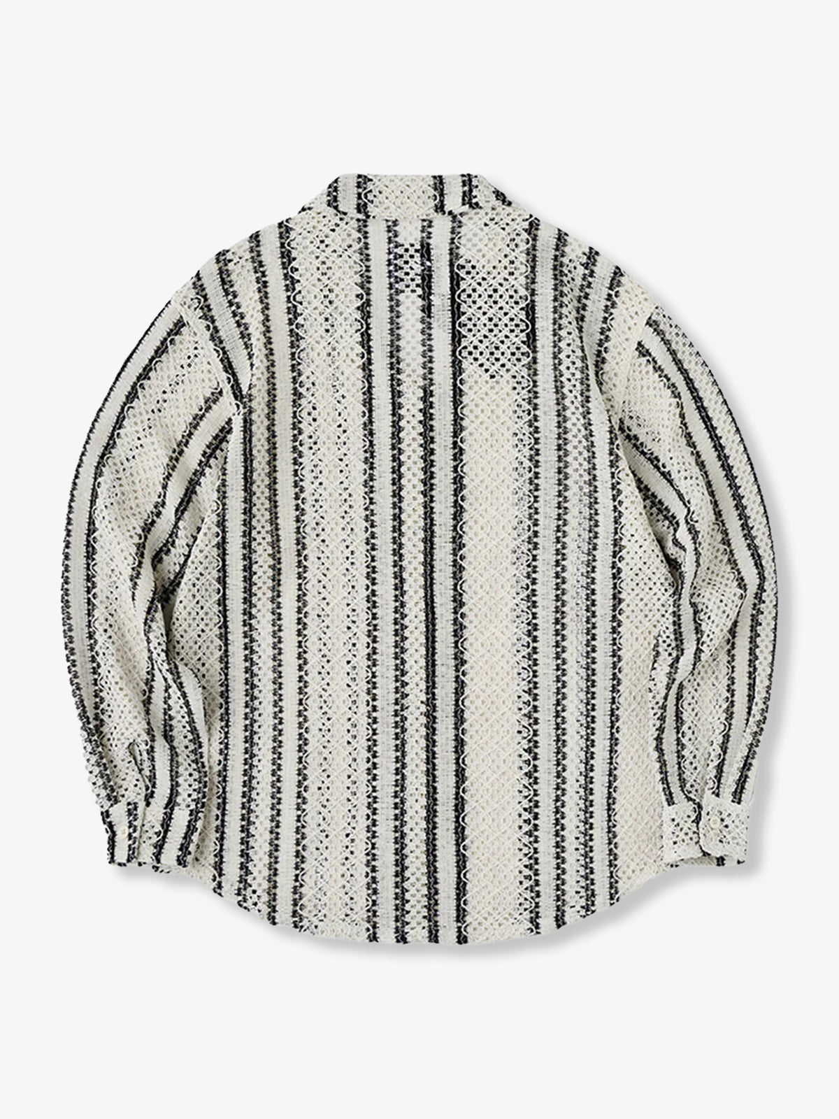 Knit Stripe Pattern Open-Collar Valfas Lace Shirt