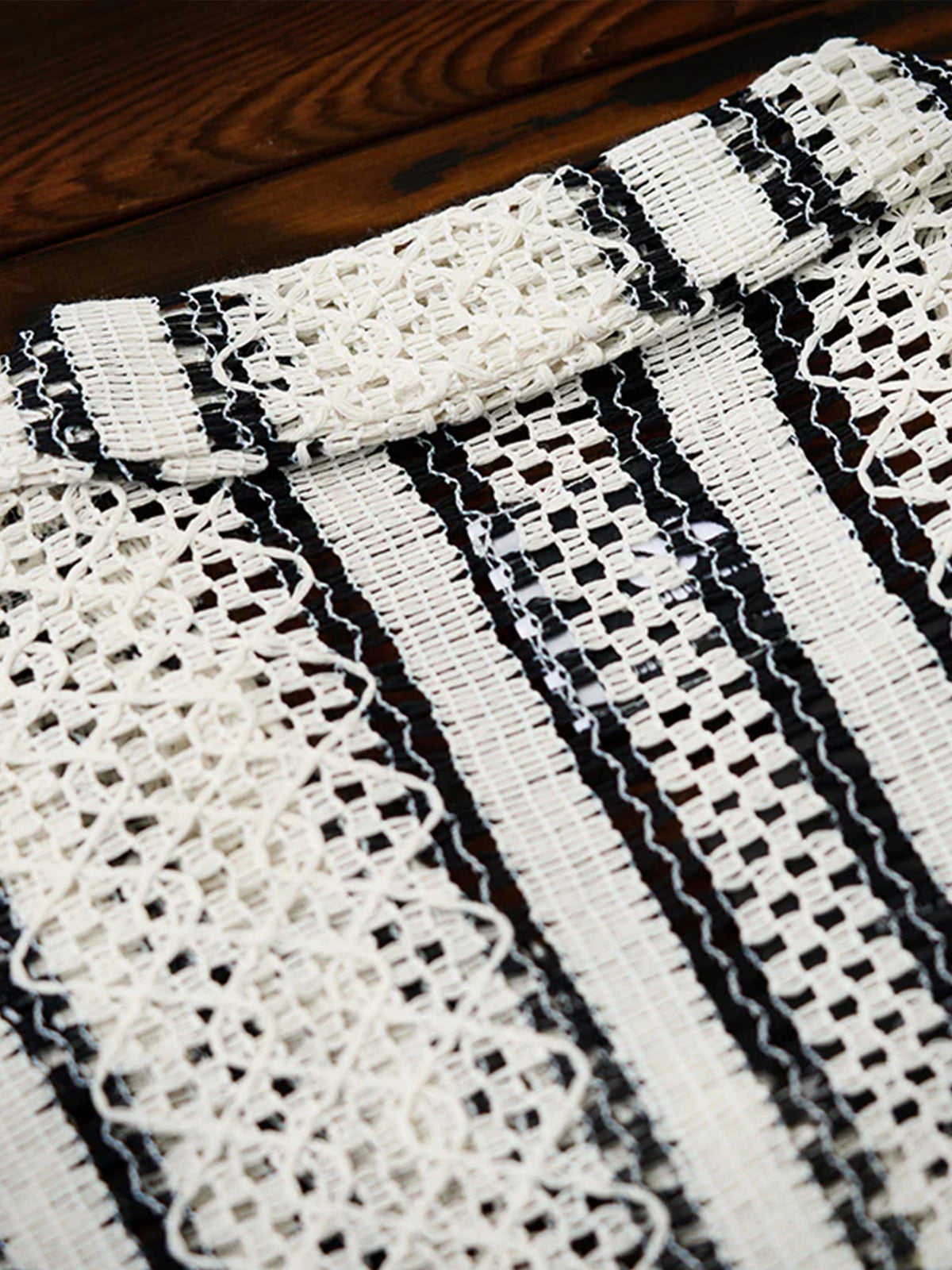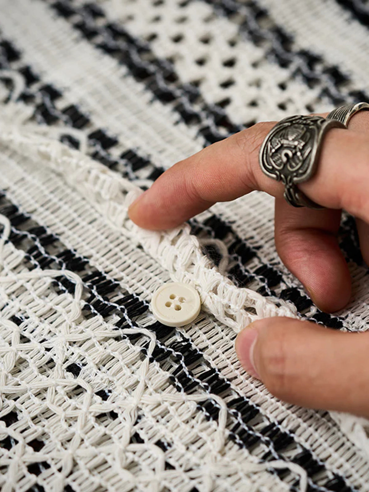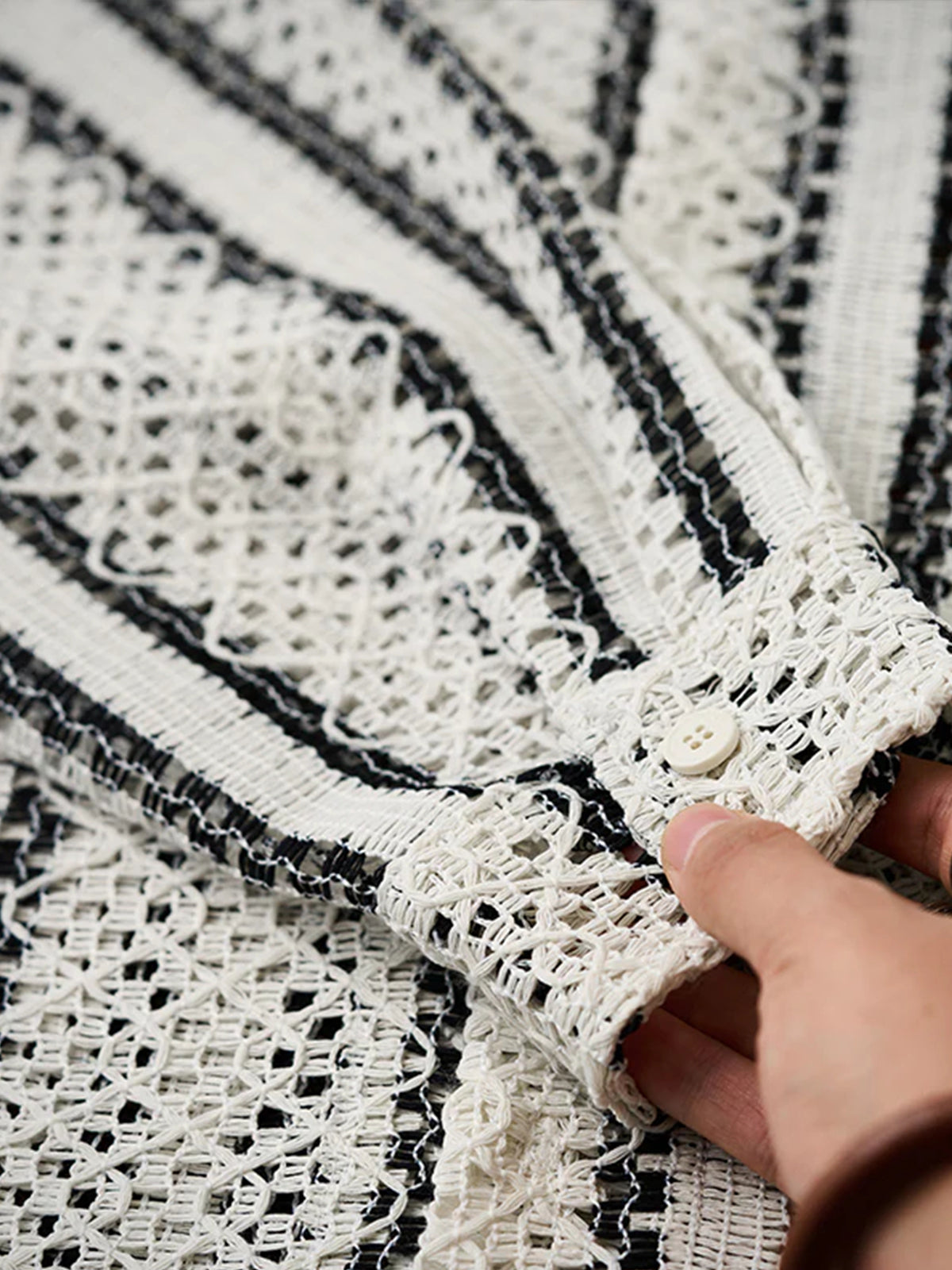 Knit Stripe Pattern Open-Collar Valfas Lace Shirt