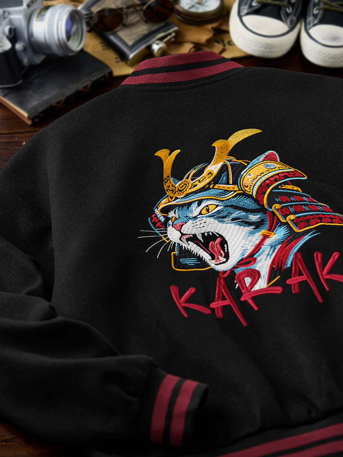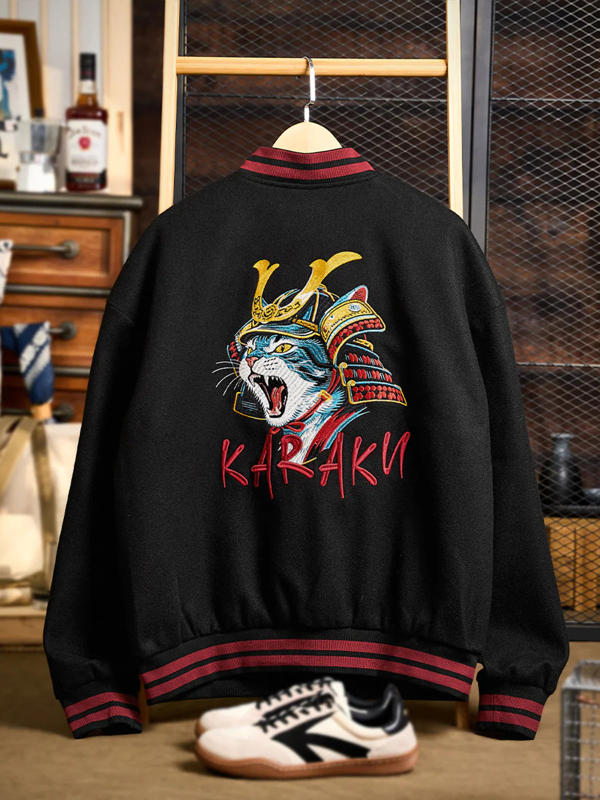 “Roaring Shogun Cat” Embroidered & Karaku Logo Embroidered Stadium Jacket