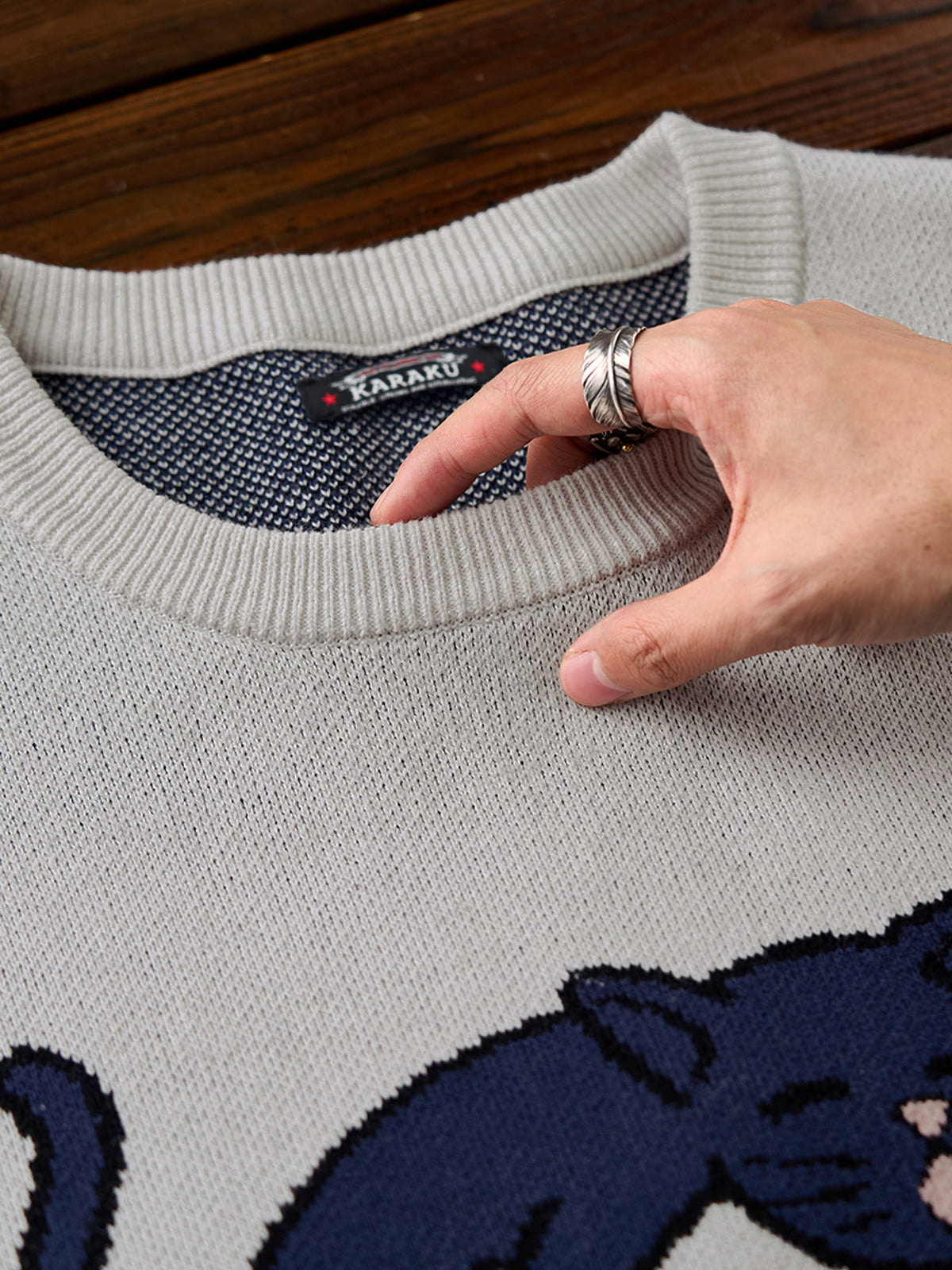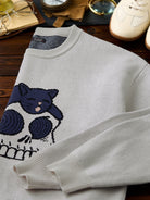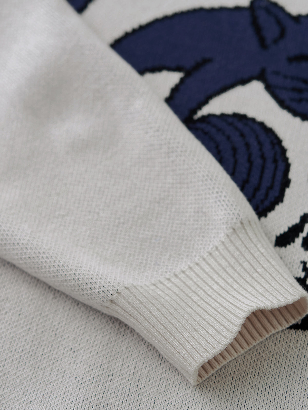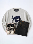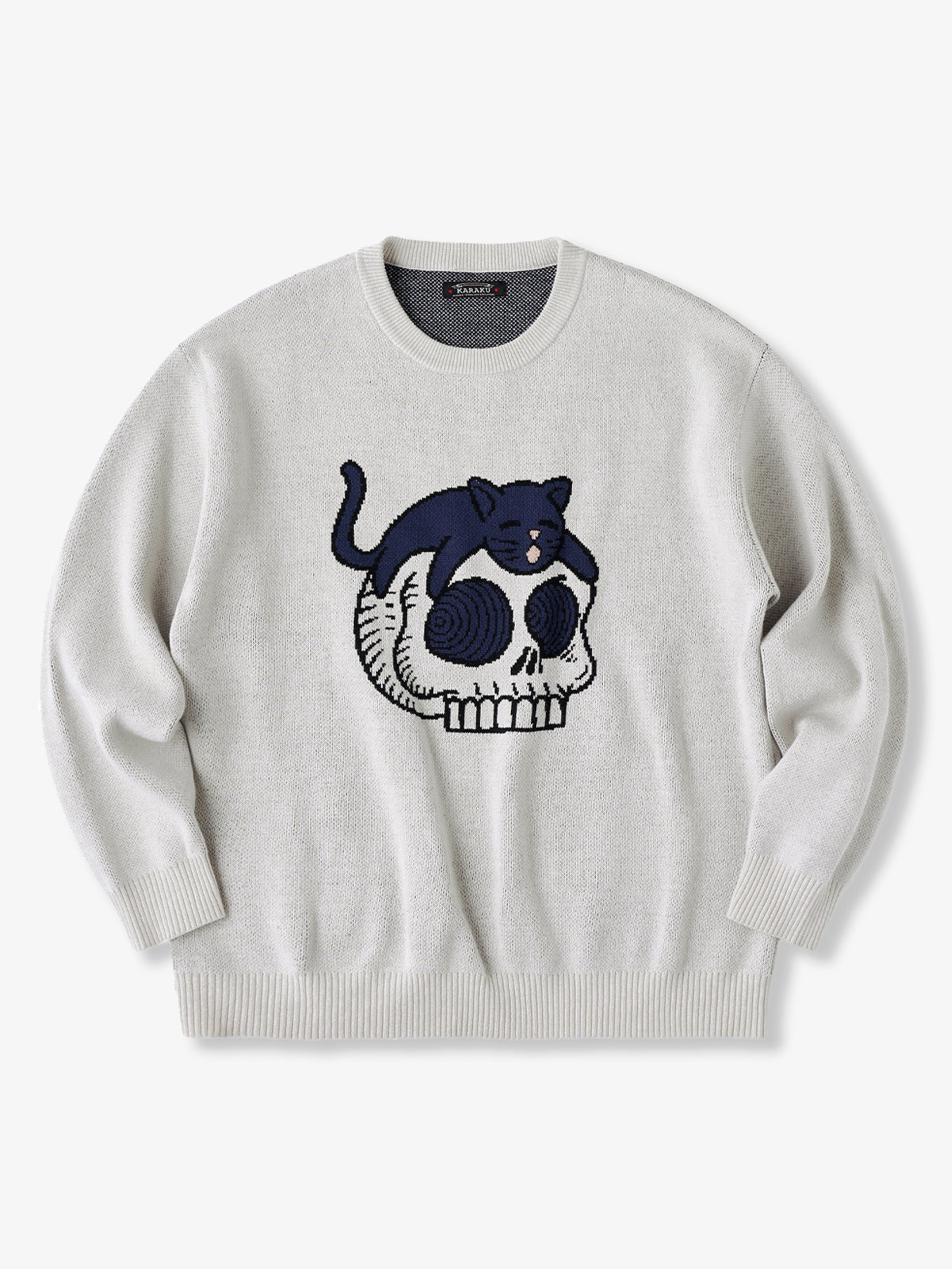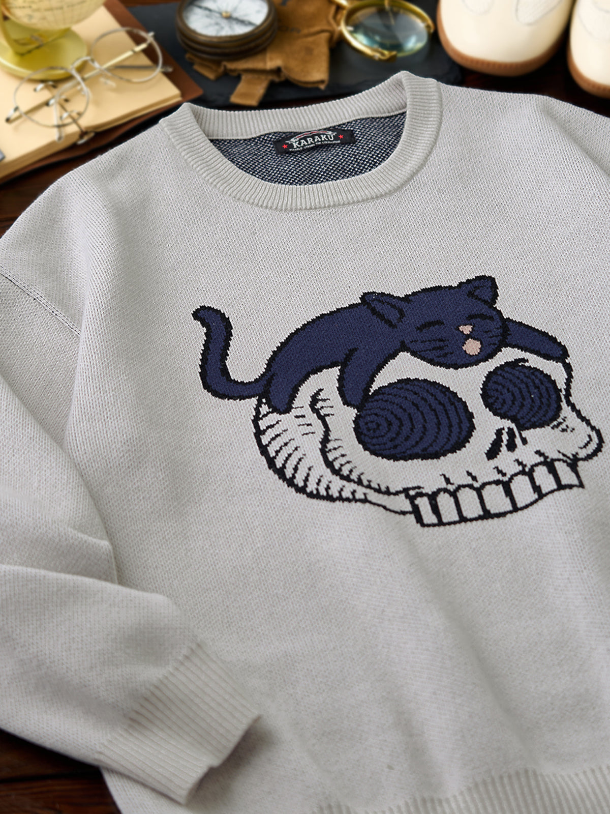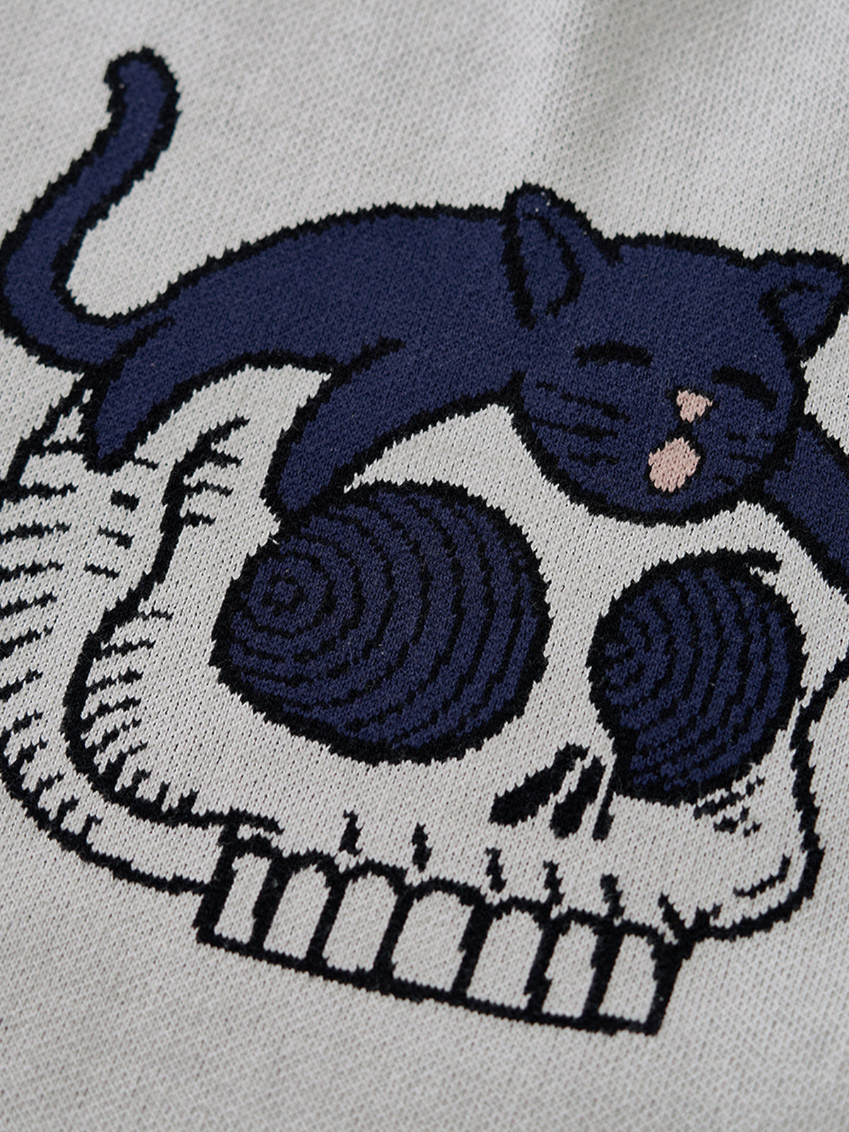 [Pre-Order] “Black Cat on Skull” Pop Art–Style Jacquard Knit Sweater