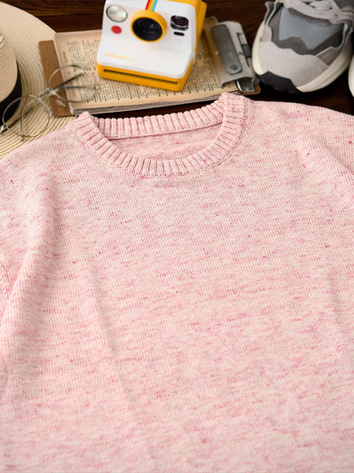 MACHO PINK Melange Knit Crew Neck T-Shirt