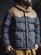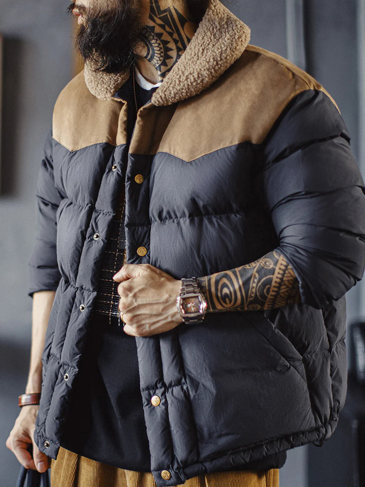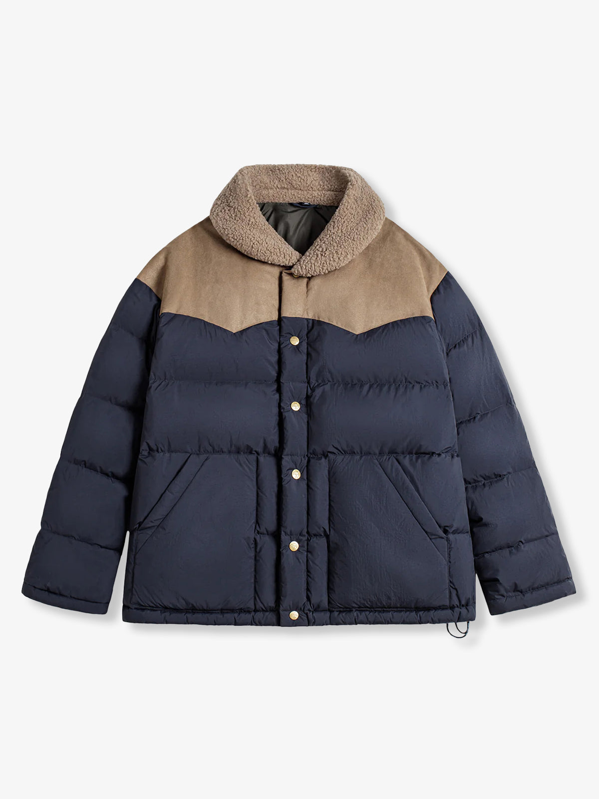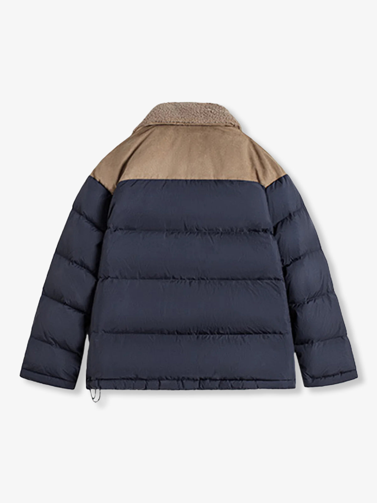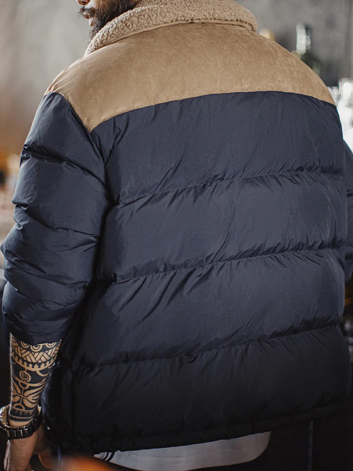 Suede-Panel Collar Fleece & Nylon Down Jacket