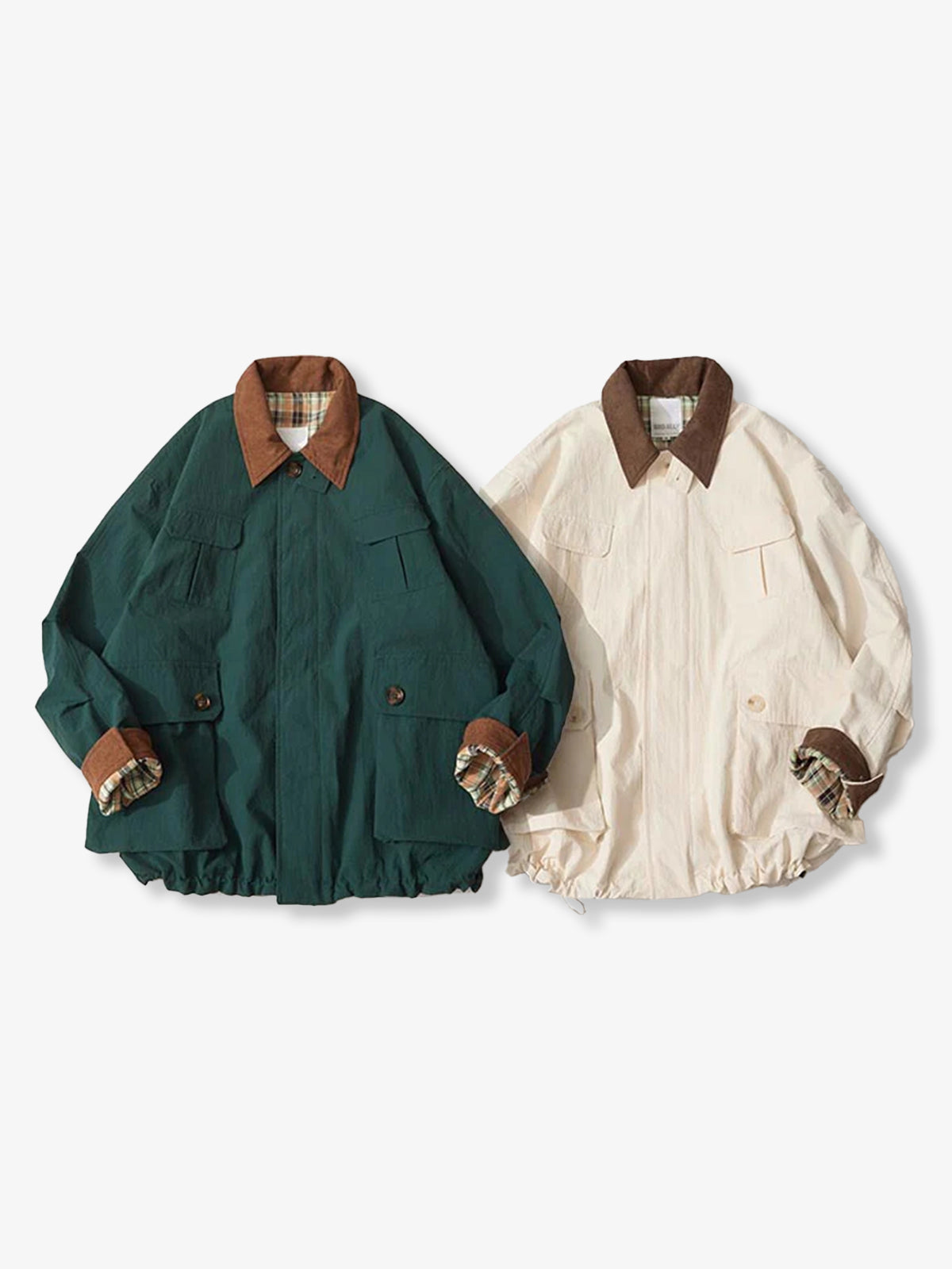 Corduroy-Lined Collar and Cuffs Water-Repellent Hunting Jacket