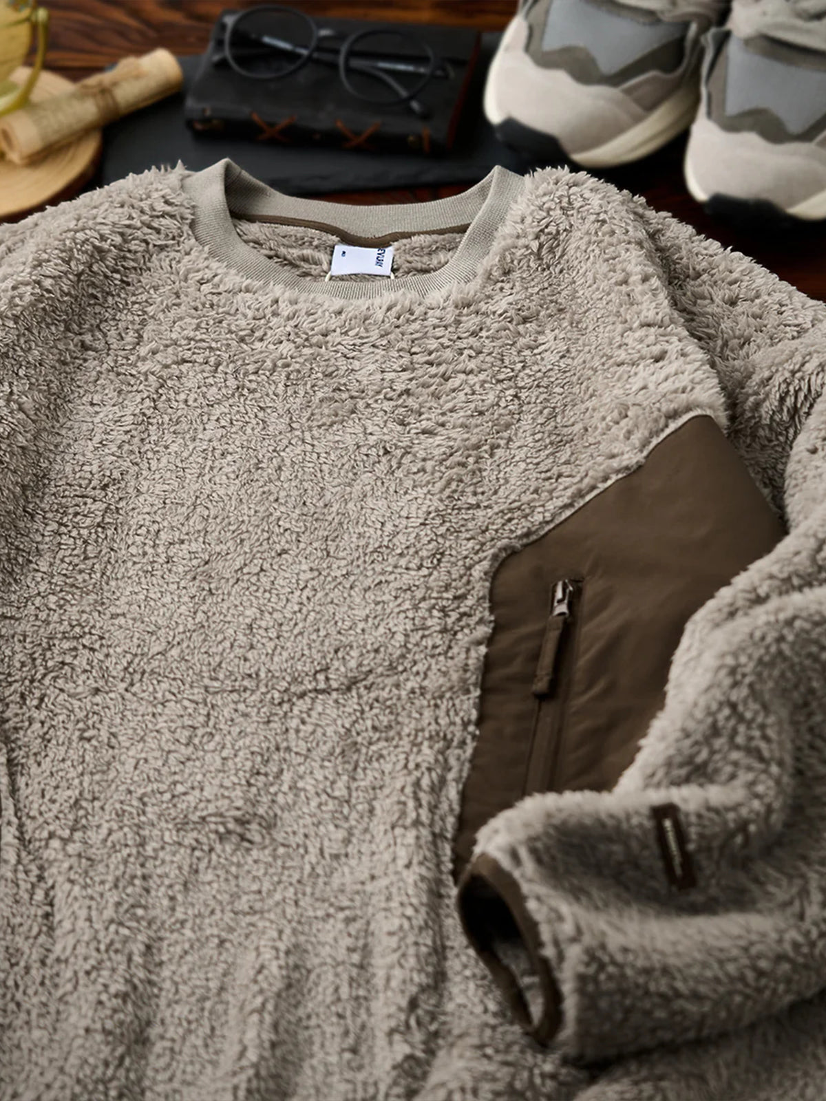 Dual-Faced Fleece Sweatshirt with Contrasting Material Unique Pocket
