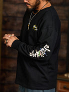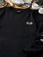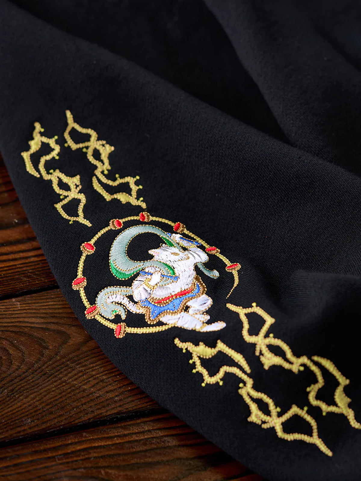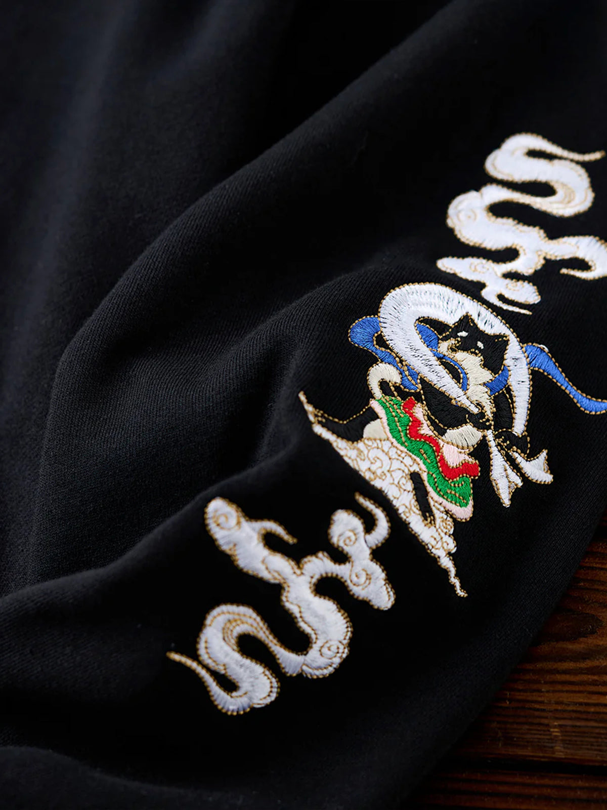 “Black Shiba Fujin & White Cat Raijin” Embroidered Cotton Crewneck Long Sleeve Tee