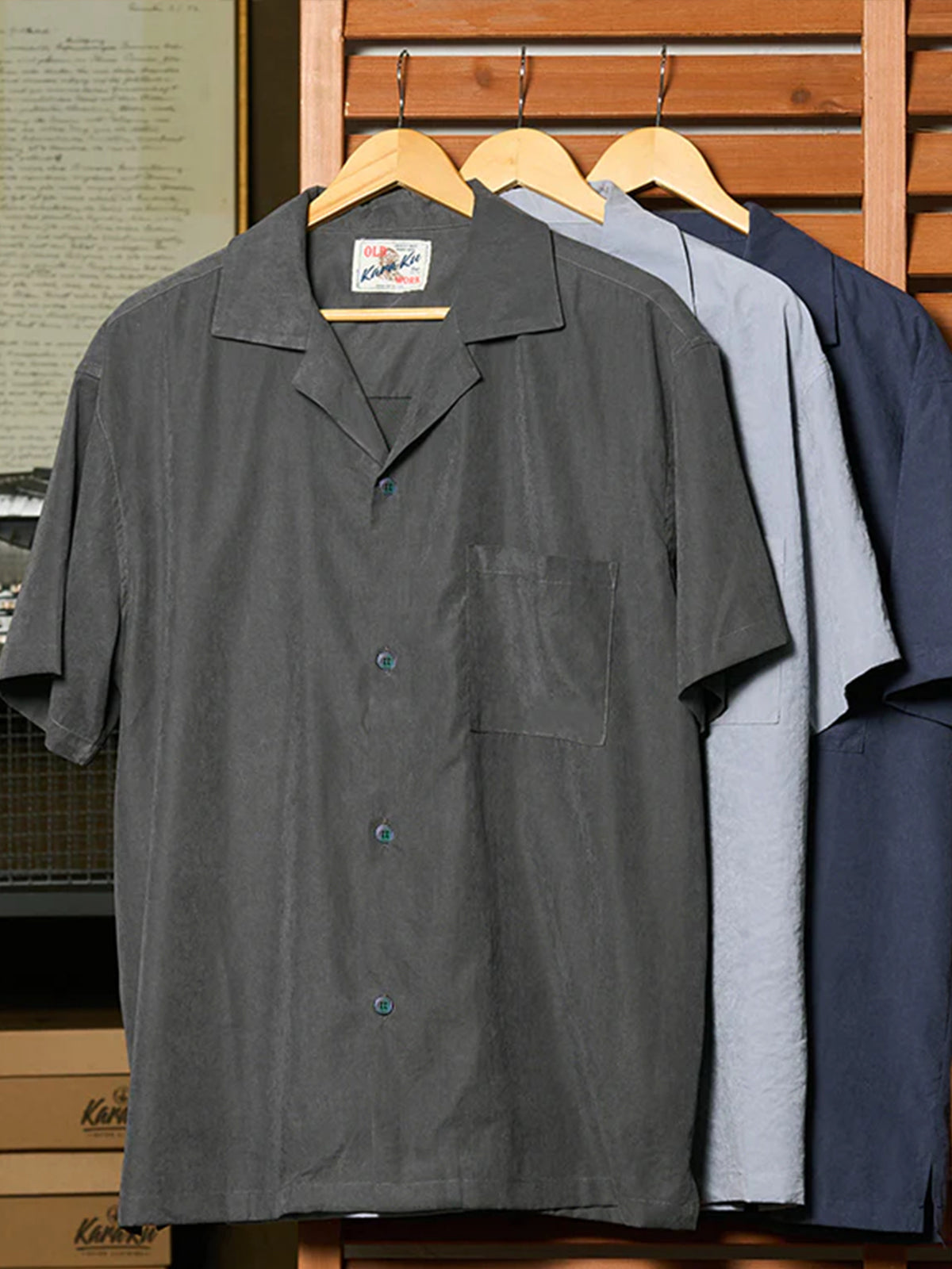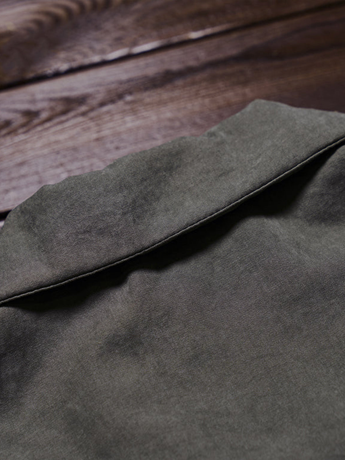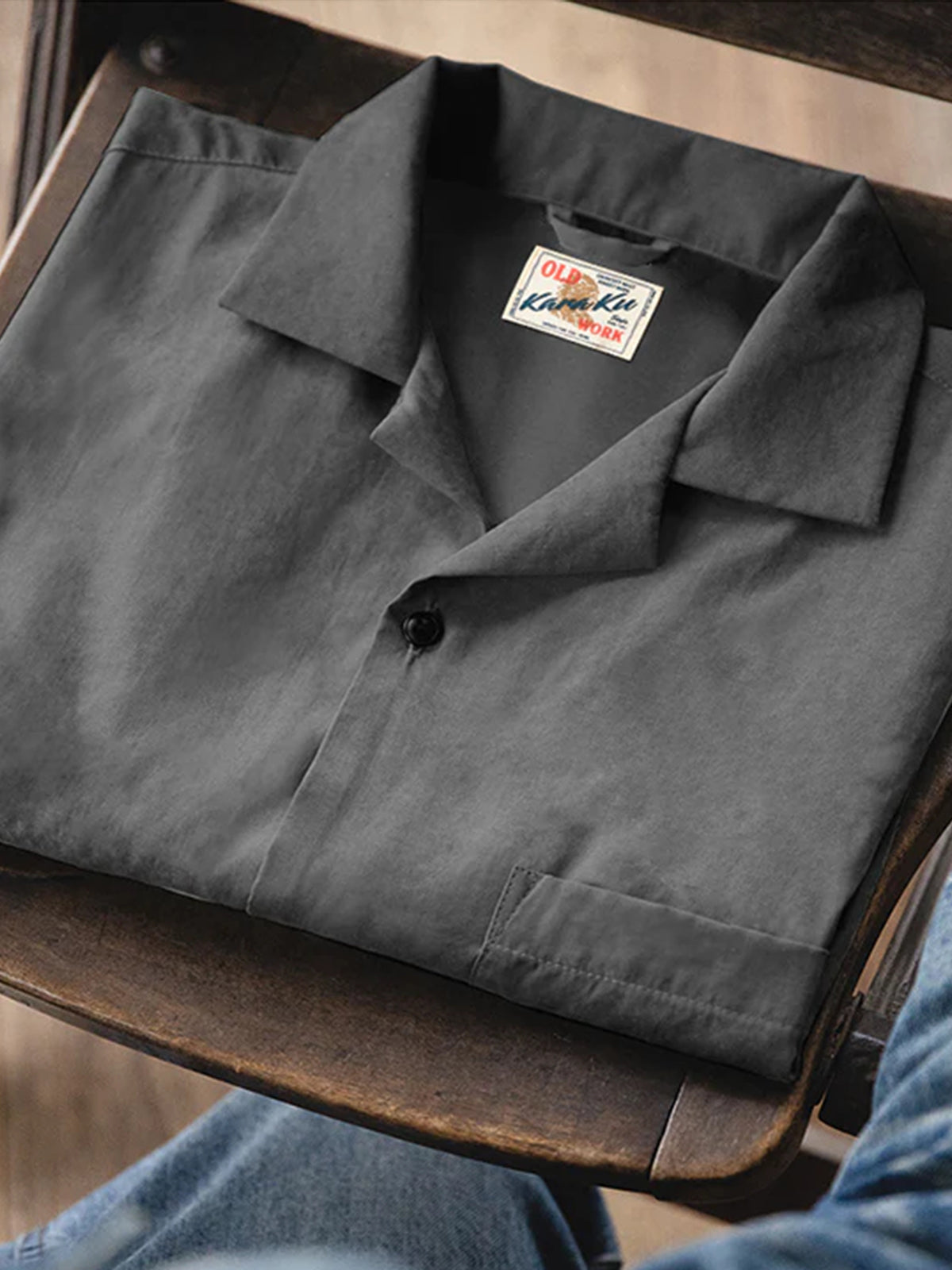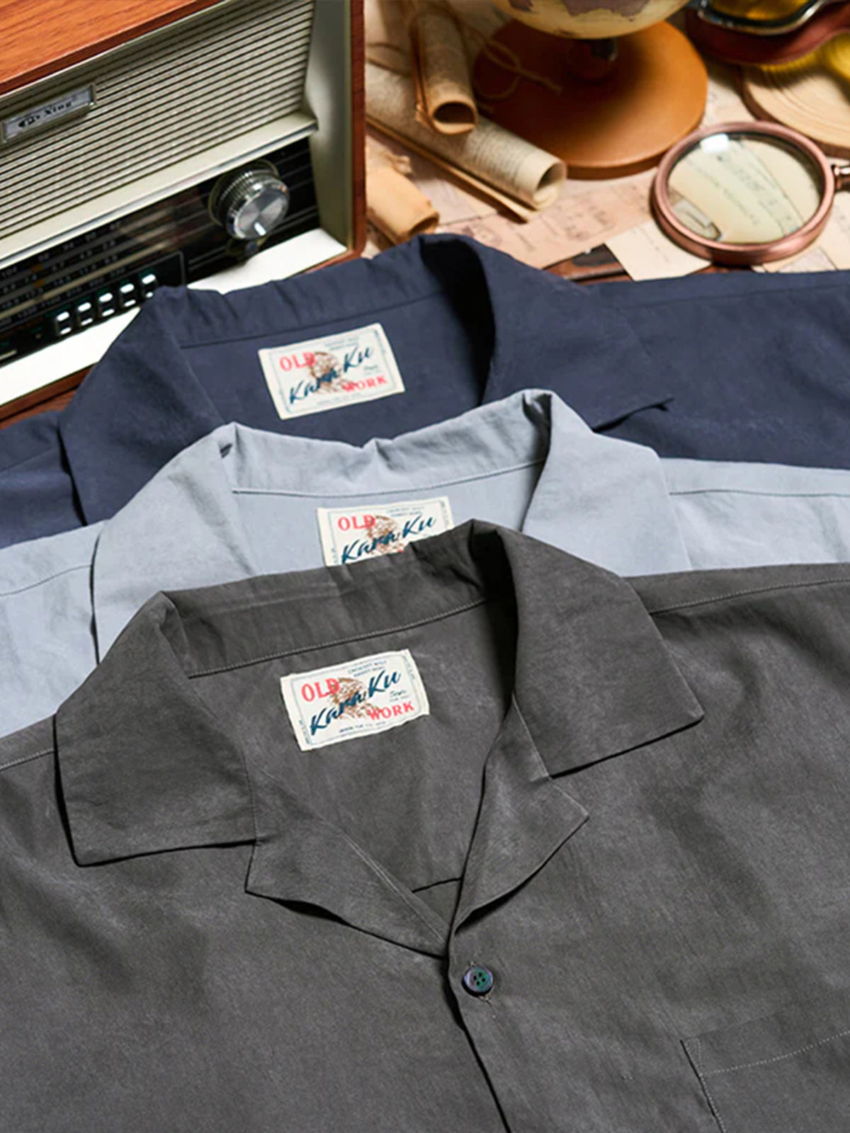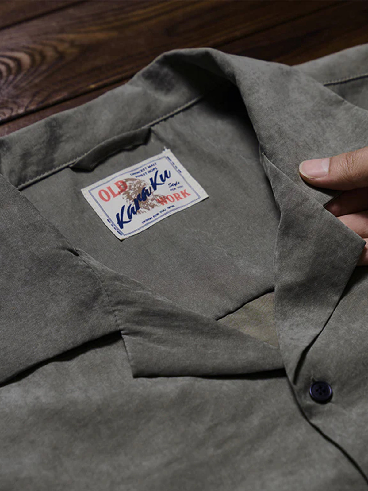Solid Tricolor Peach Leather Cuban Collar Shirt