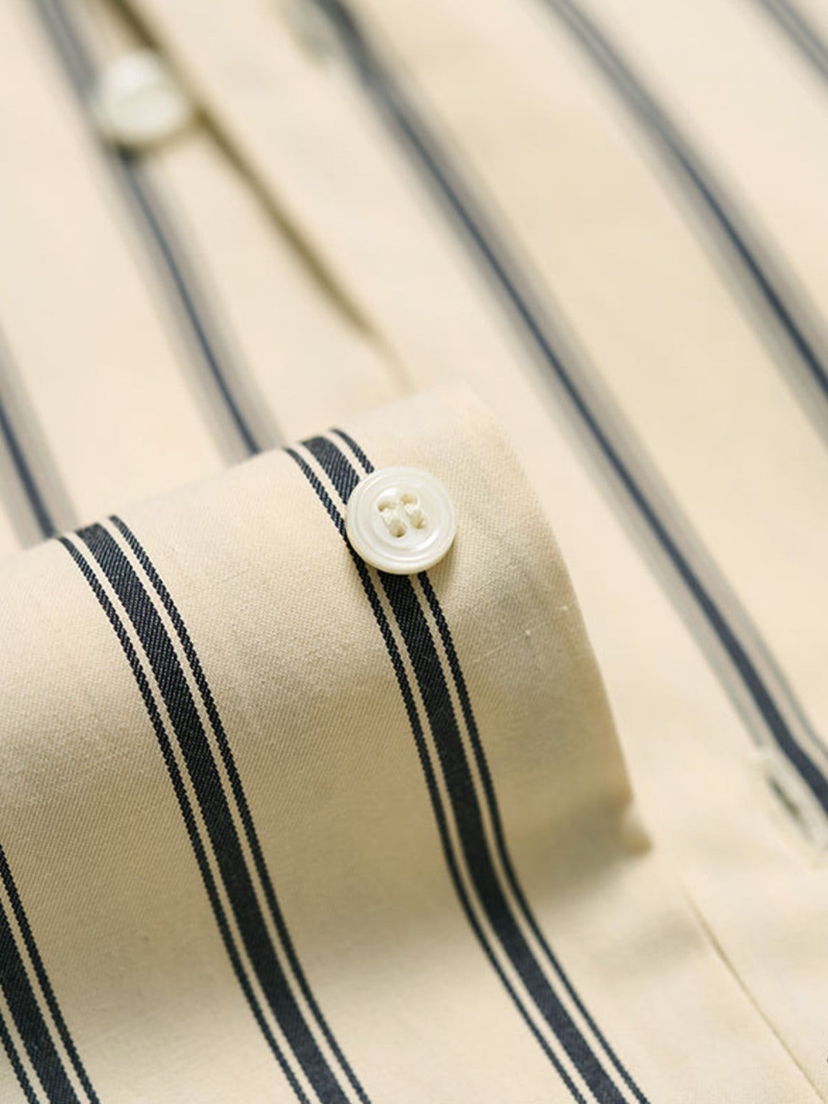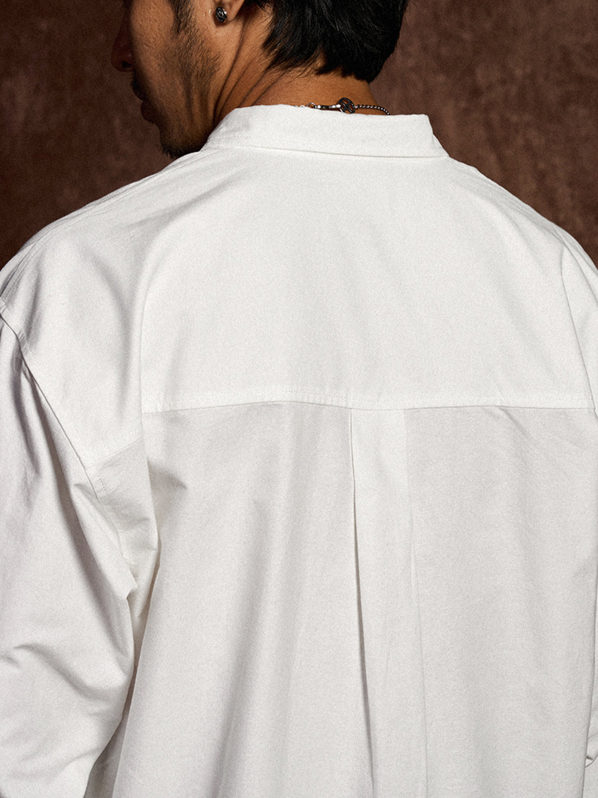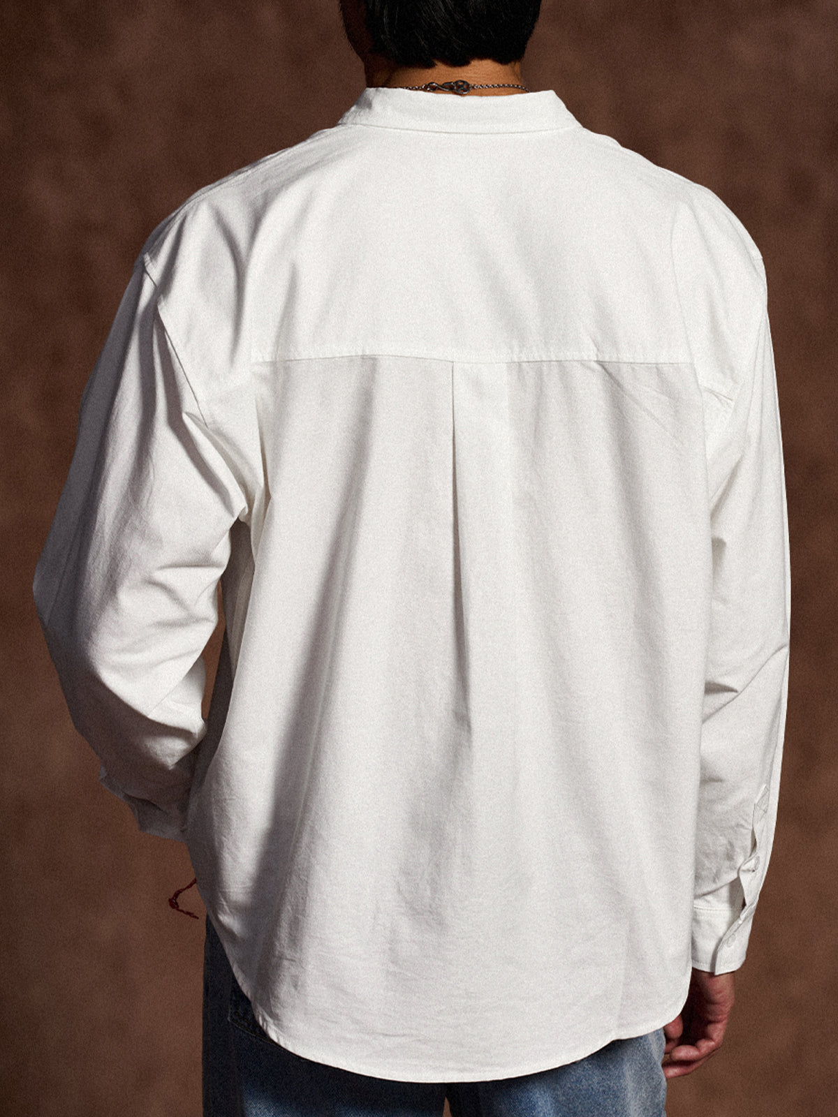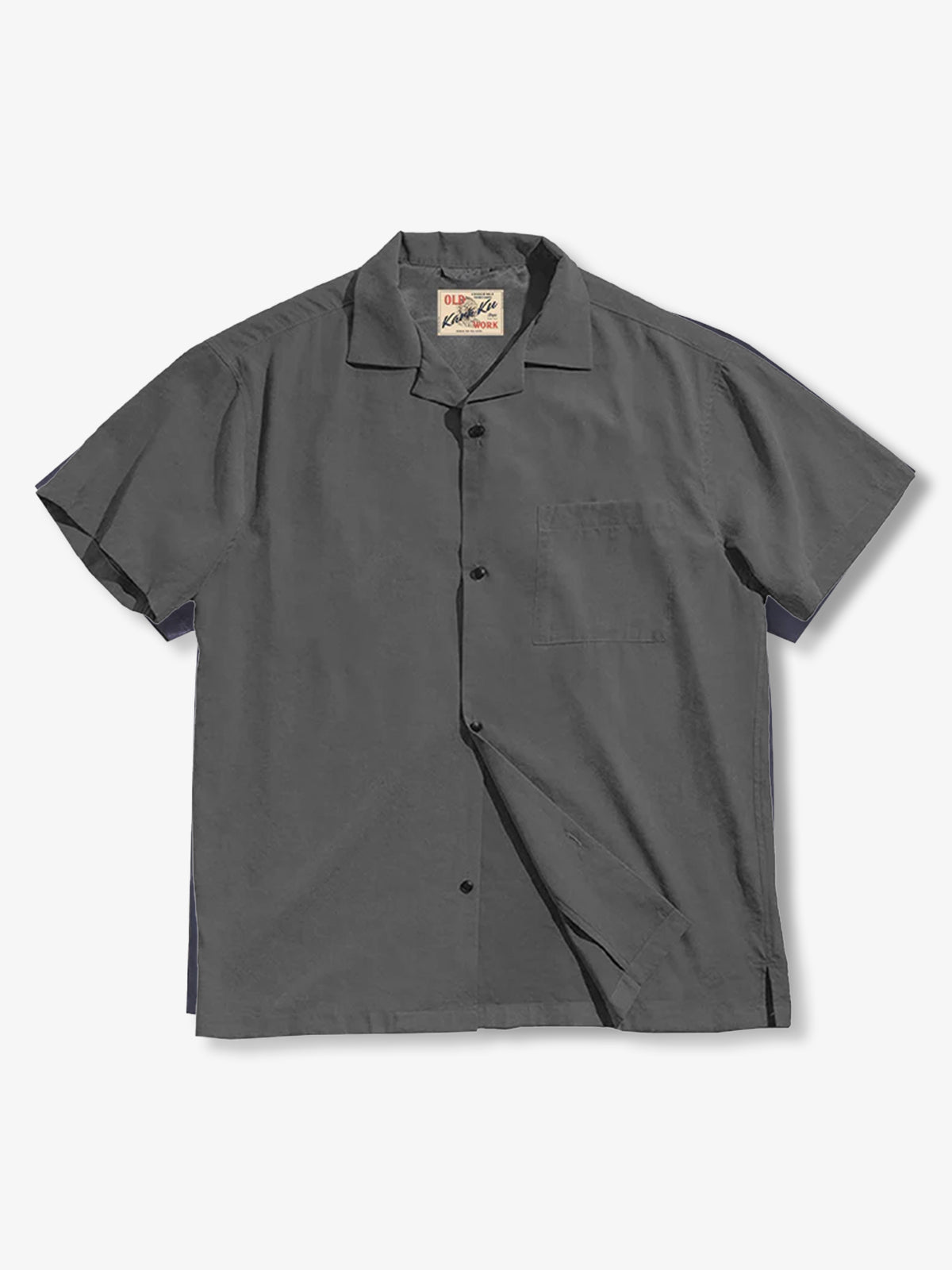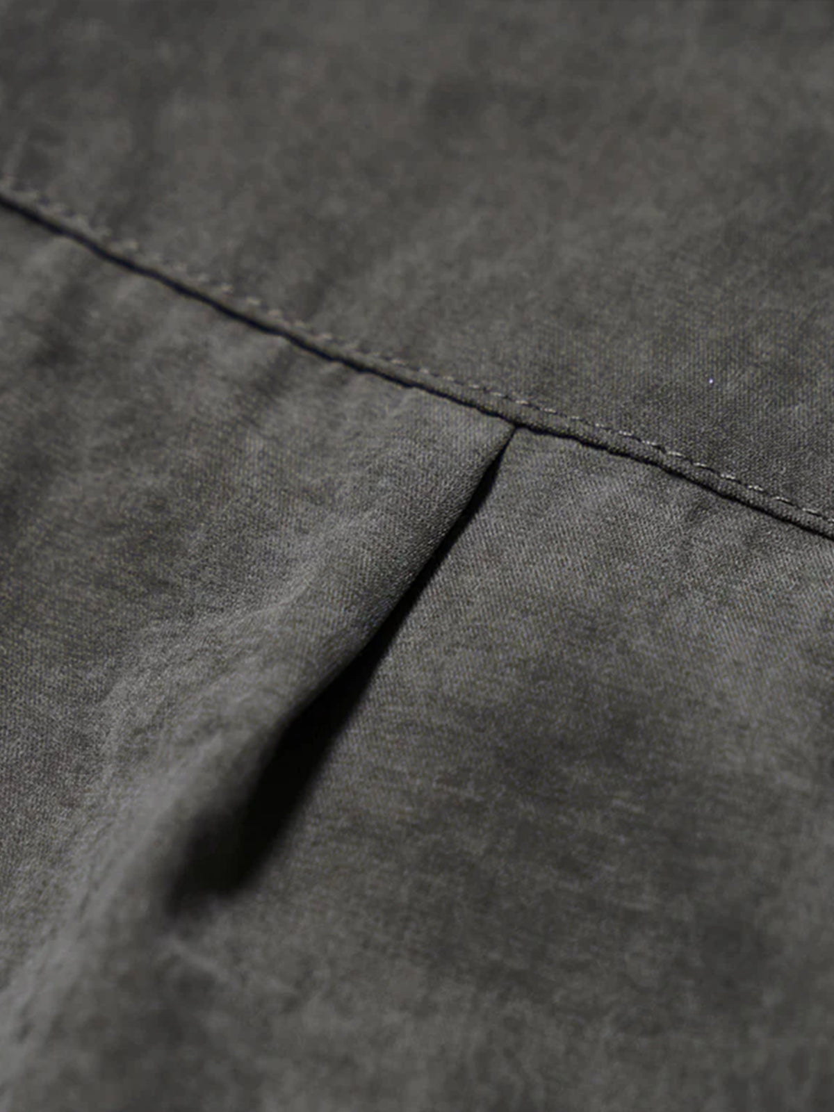 Solid Tricolor Peach Leather Cuban Collar Shirt