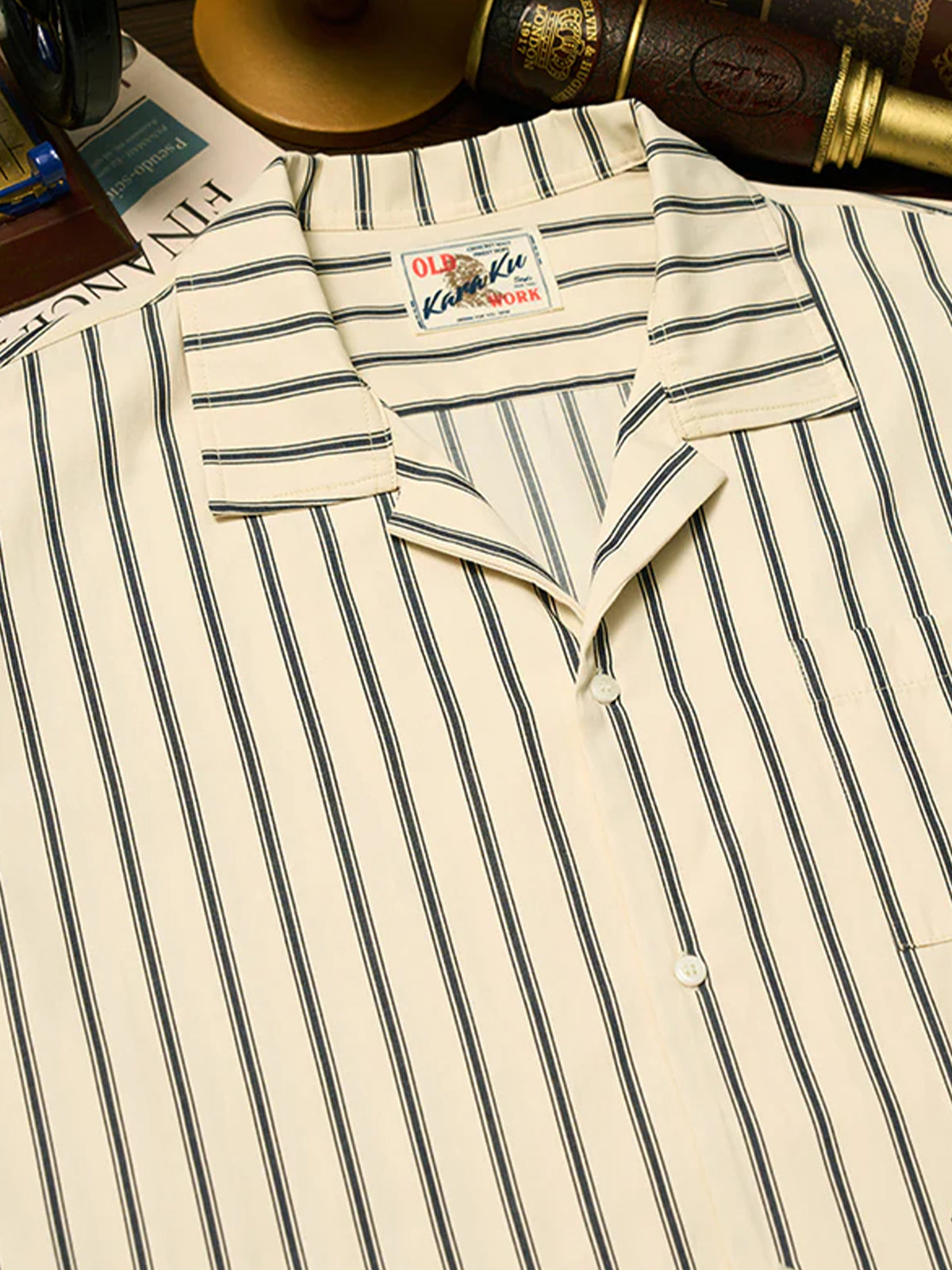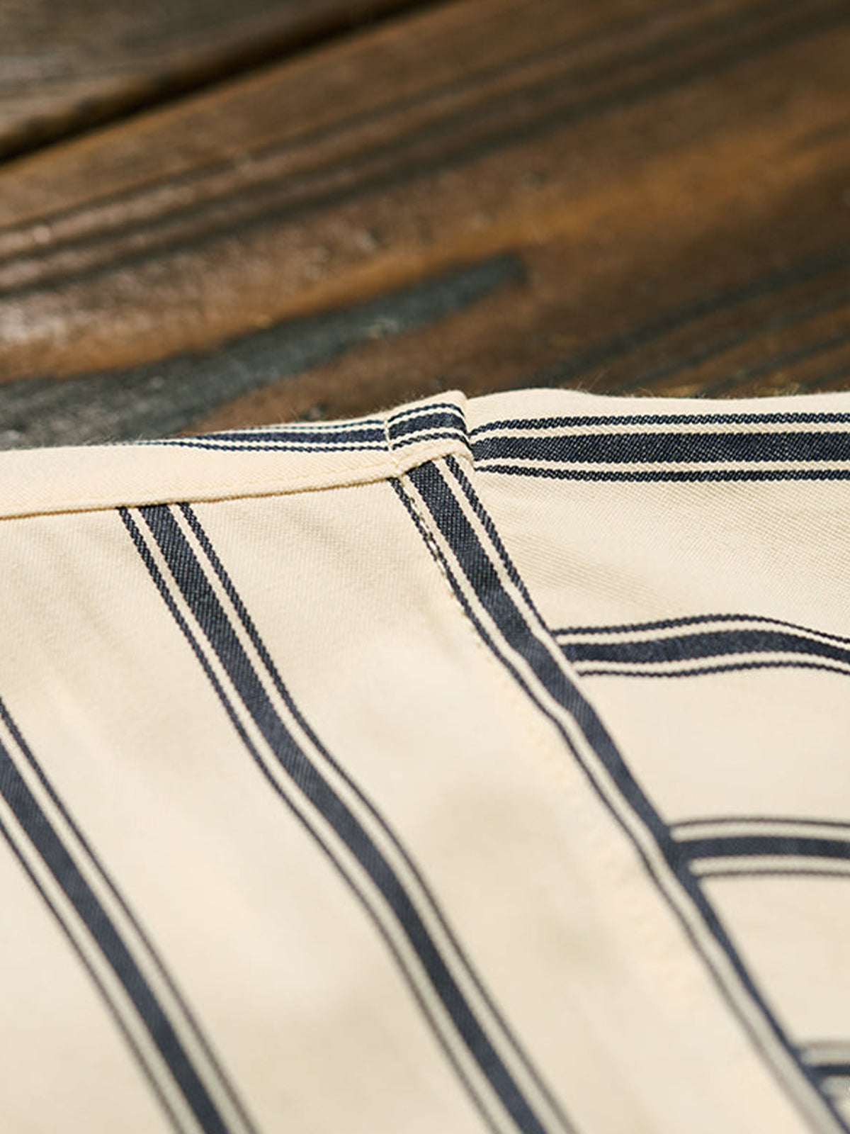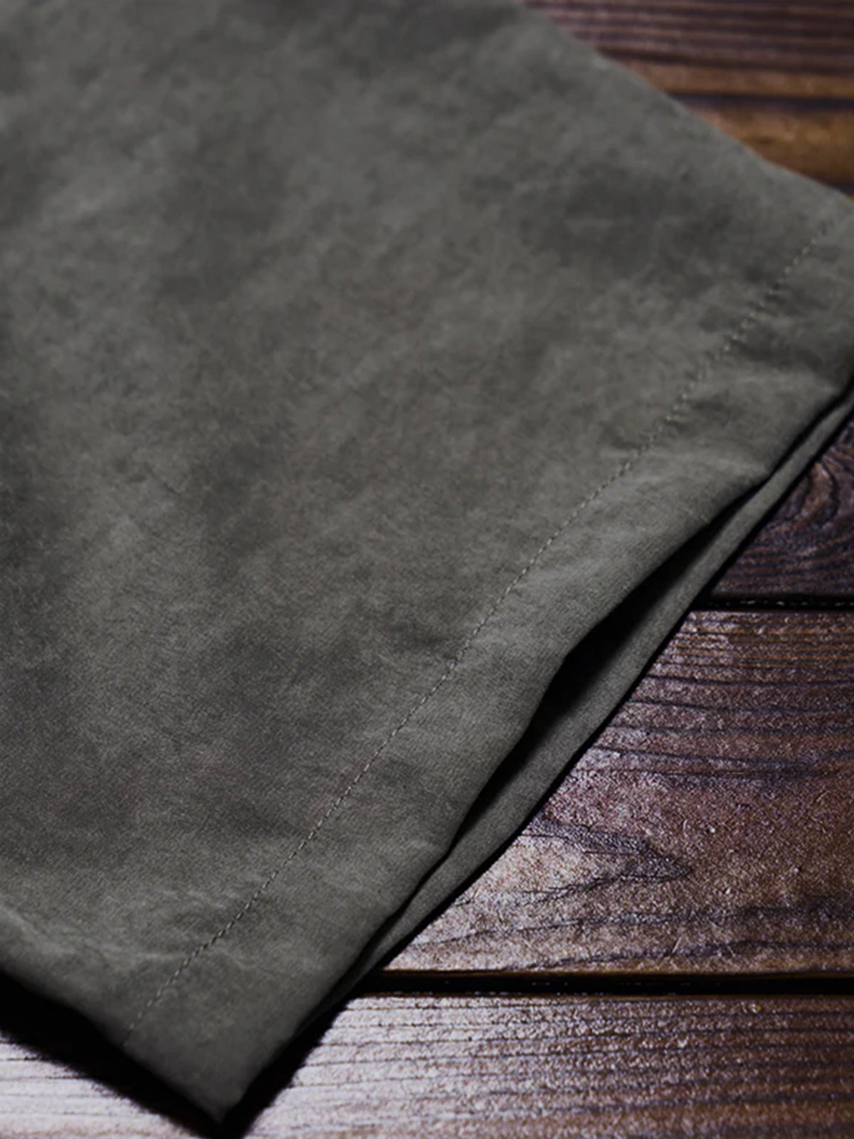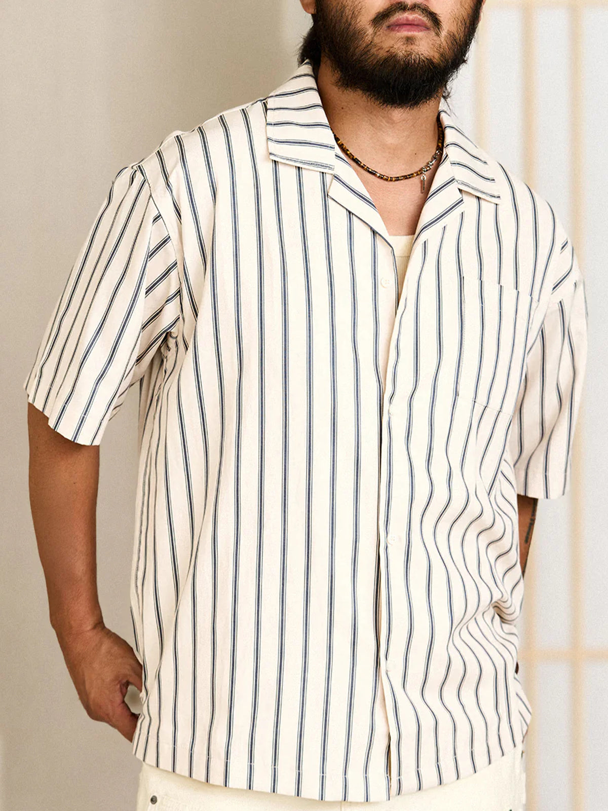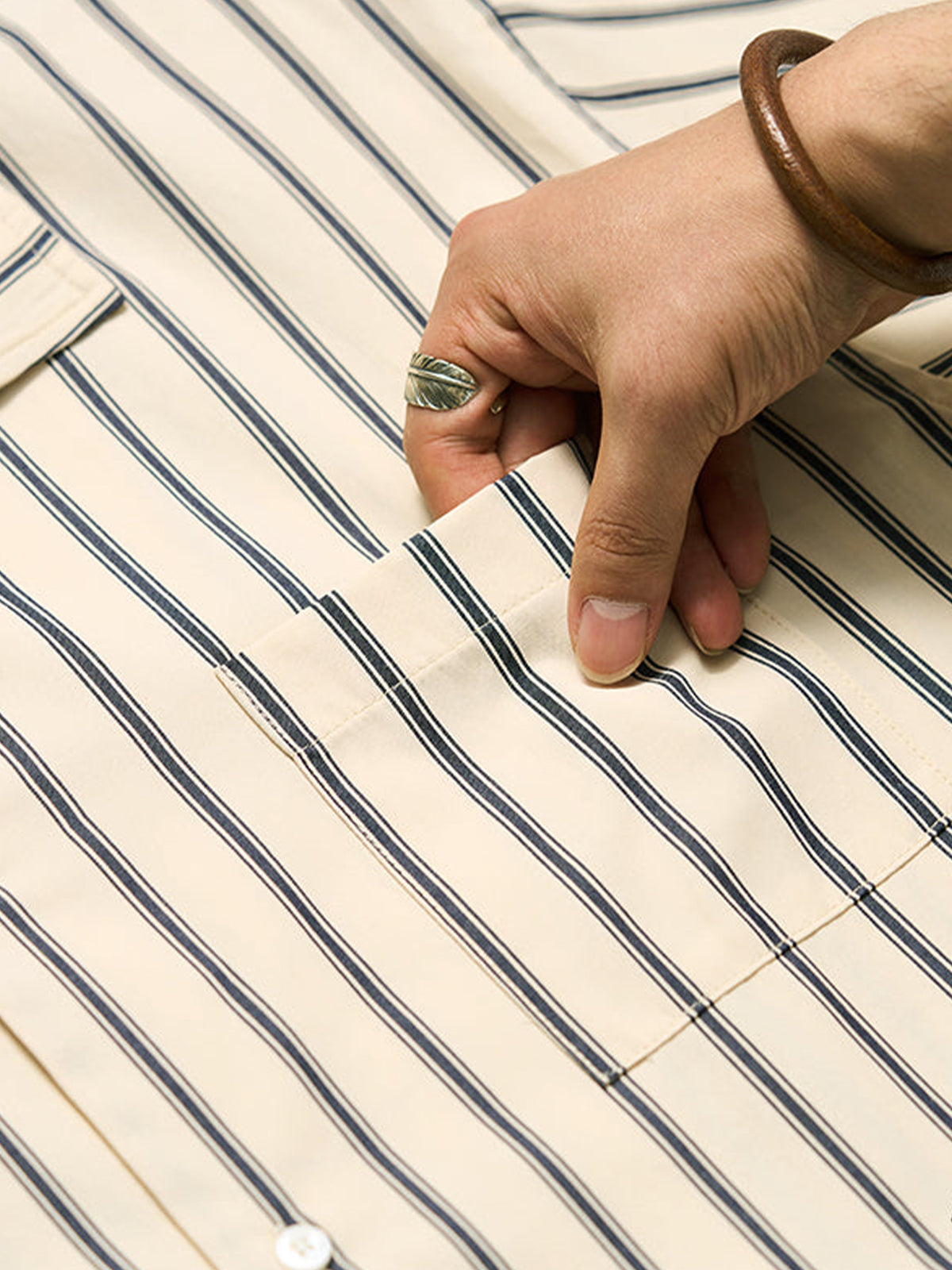 Solid Tricolor Peach Leather Cuban Collar Shirt