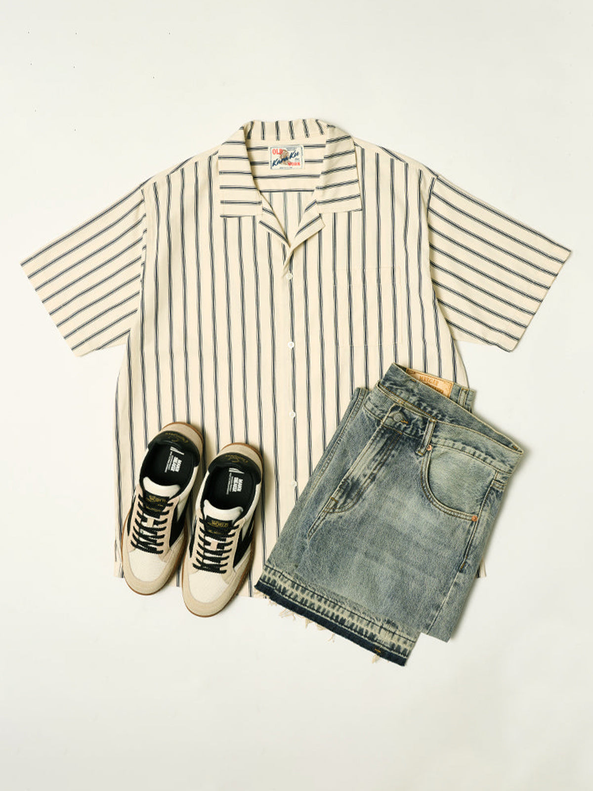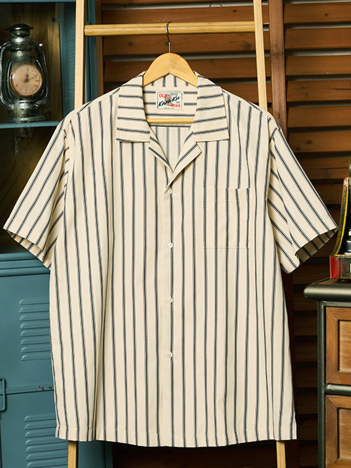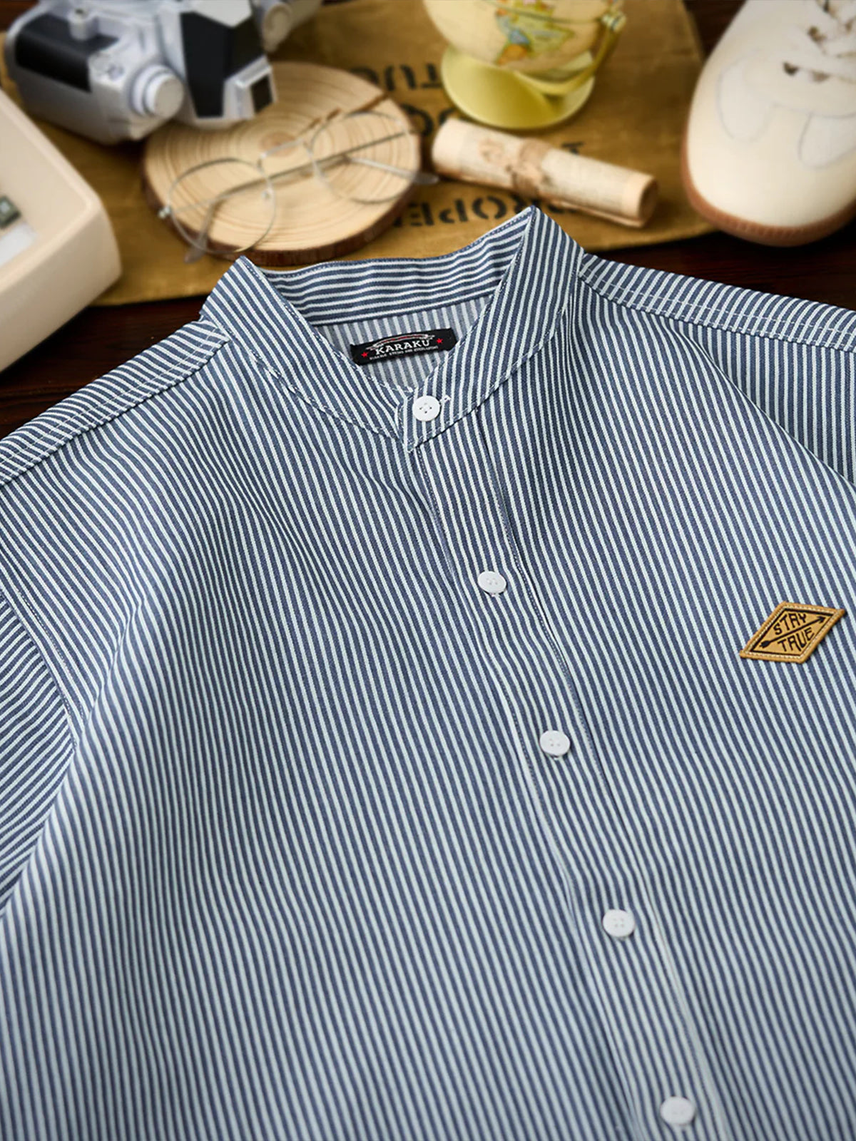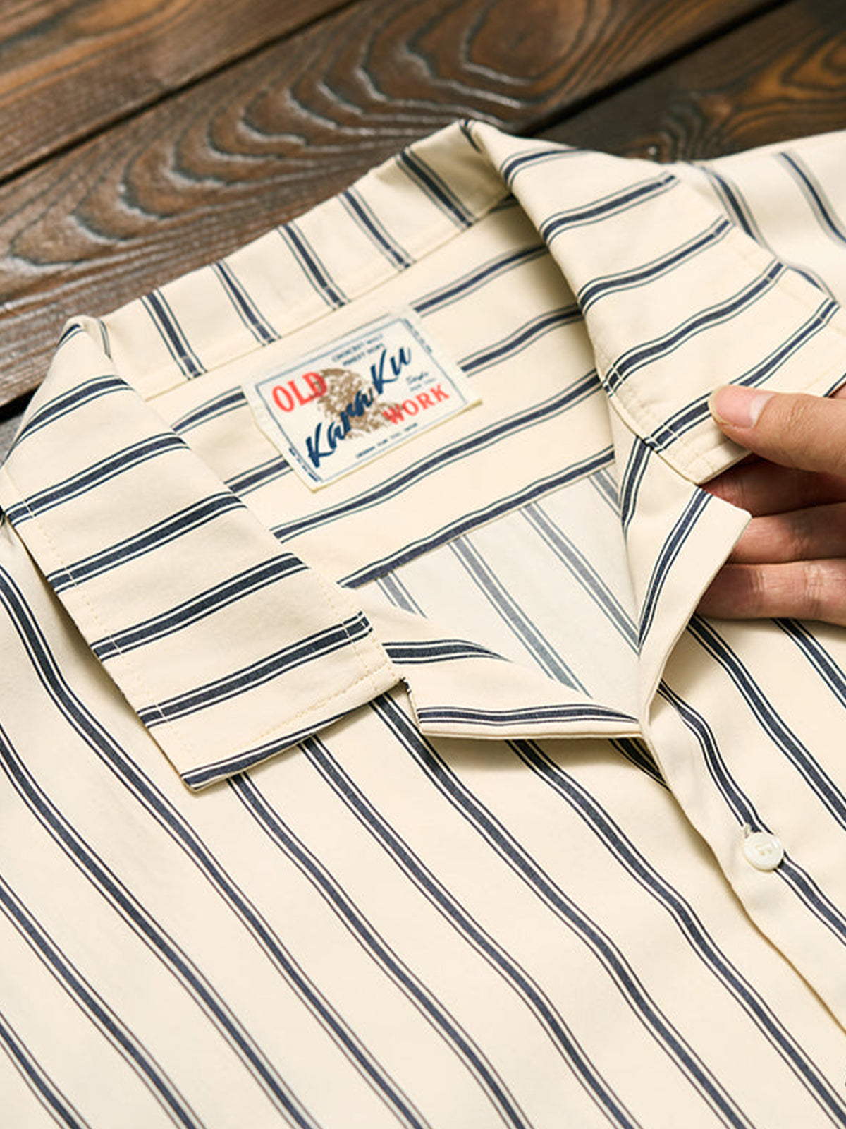 Solid Tricolor Peach Leather Cuban Collar Shirt
