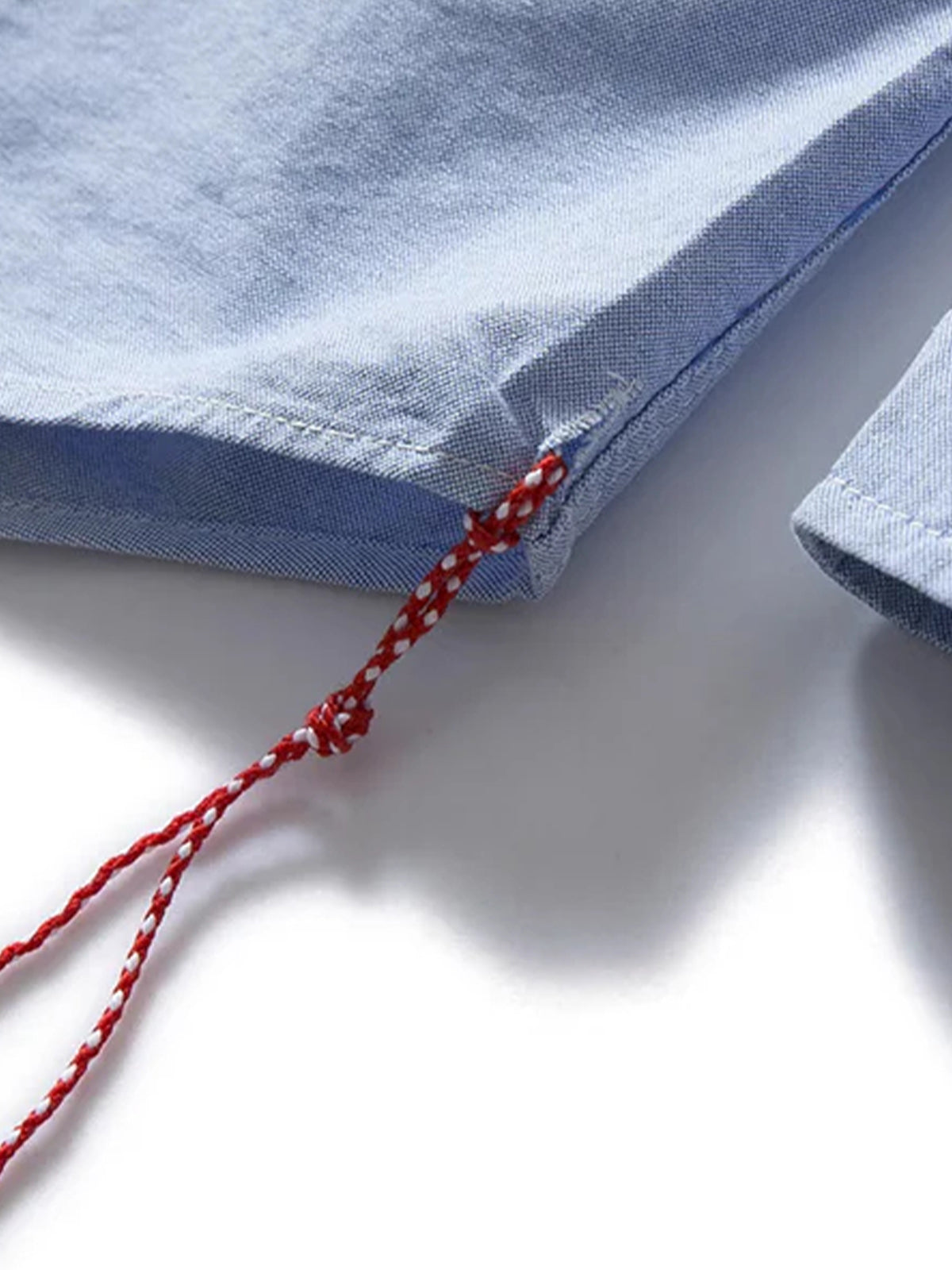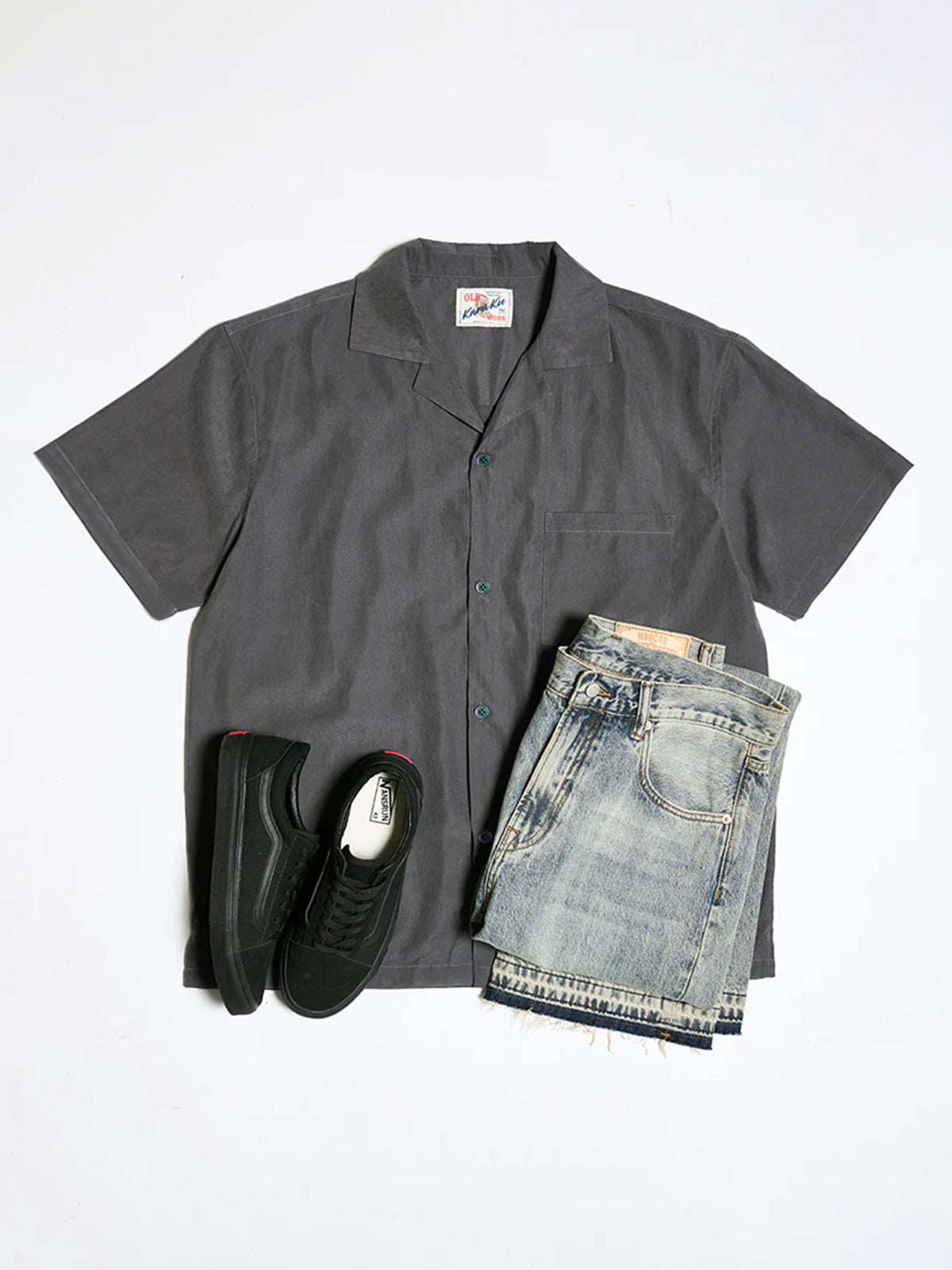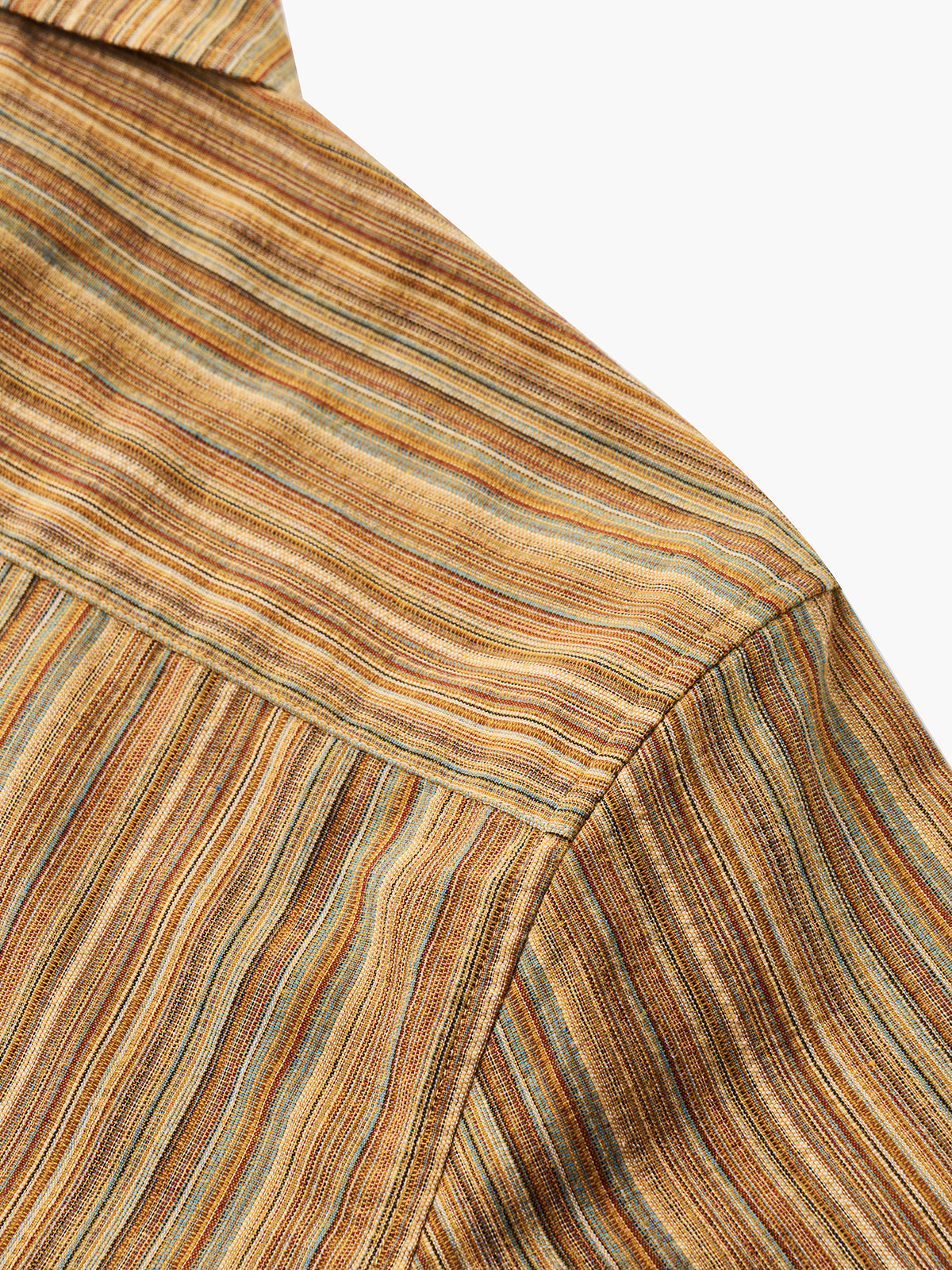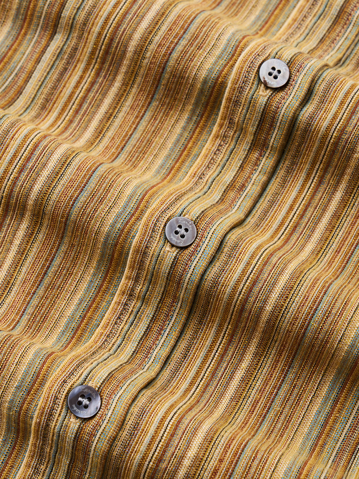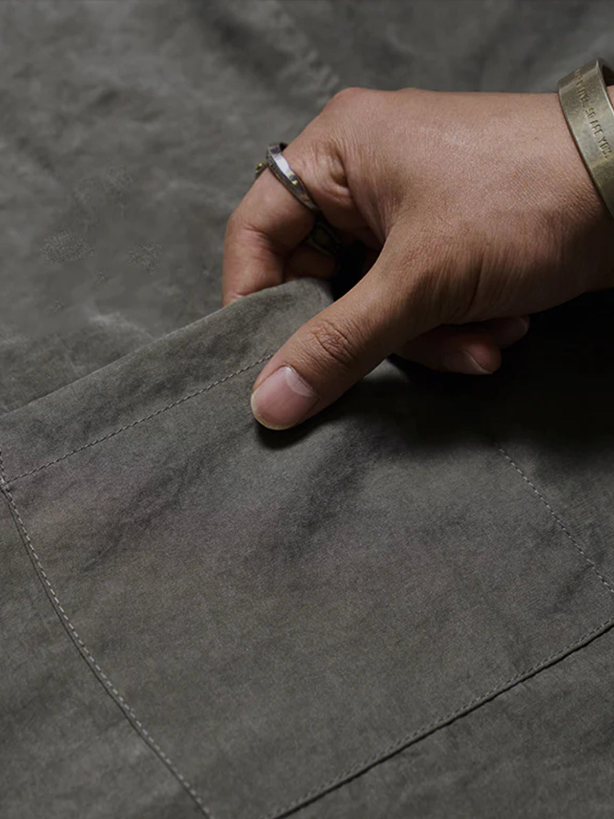 Solid Tricolor Peach Leather Cuban Collar Shirt