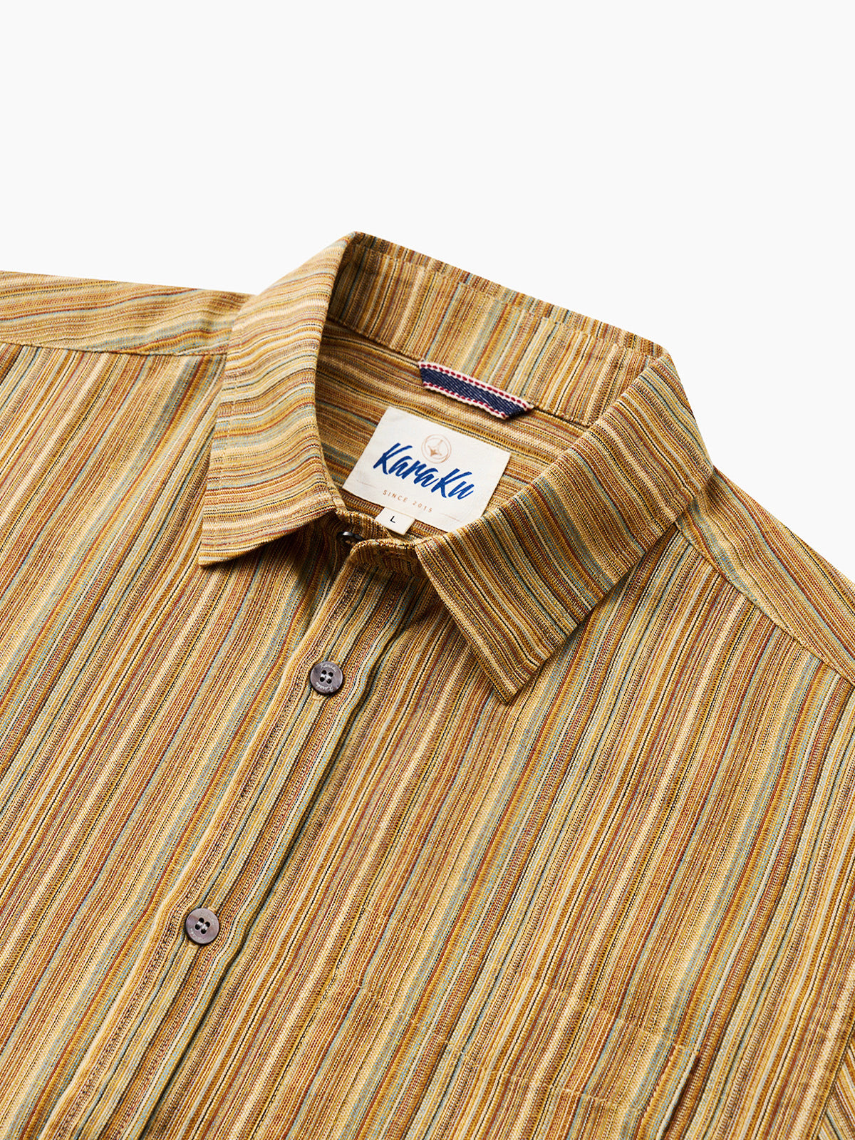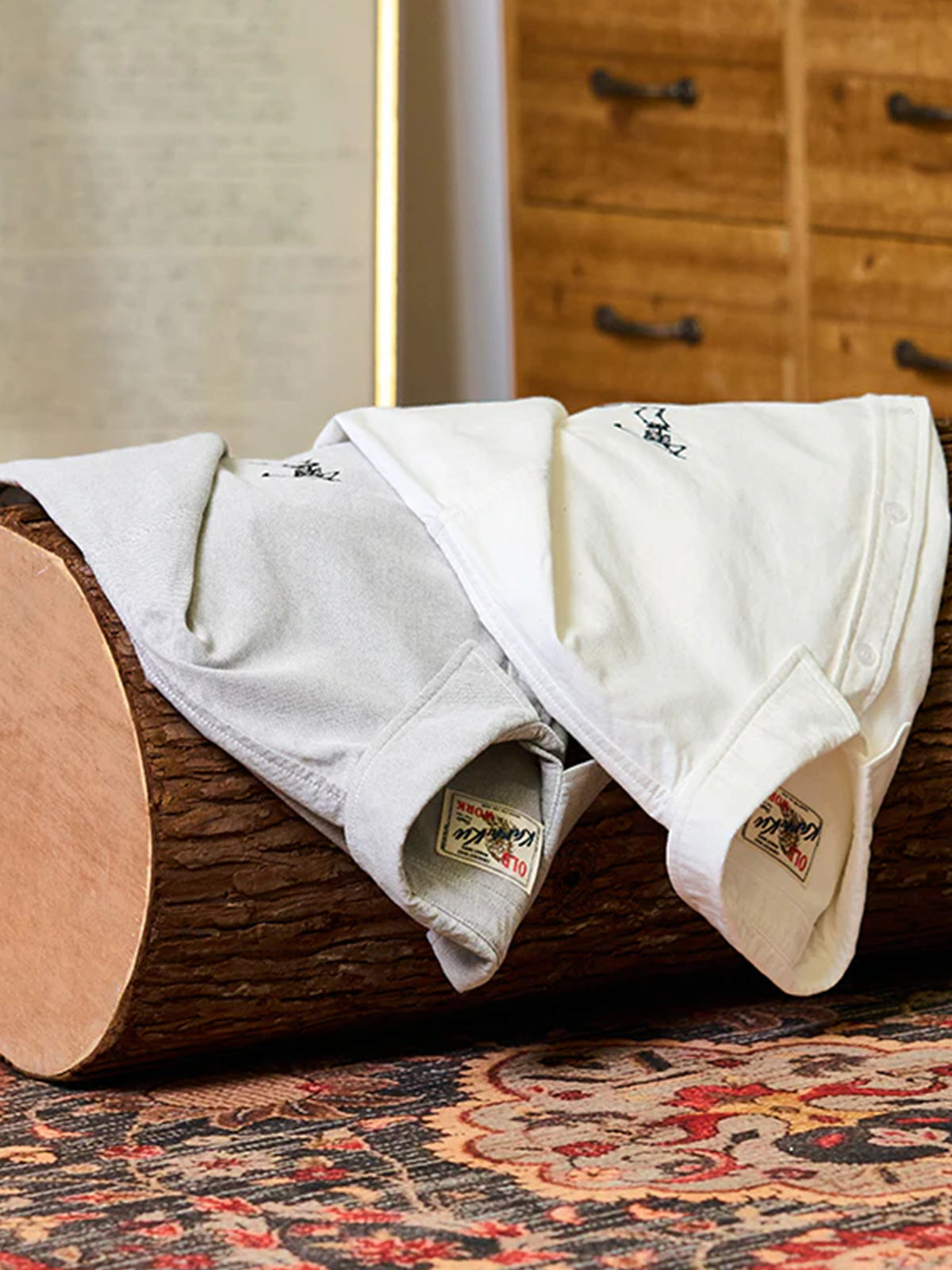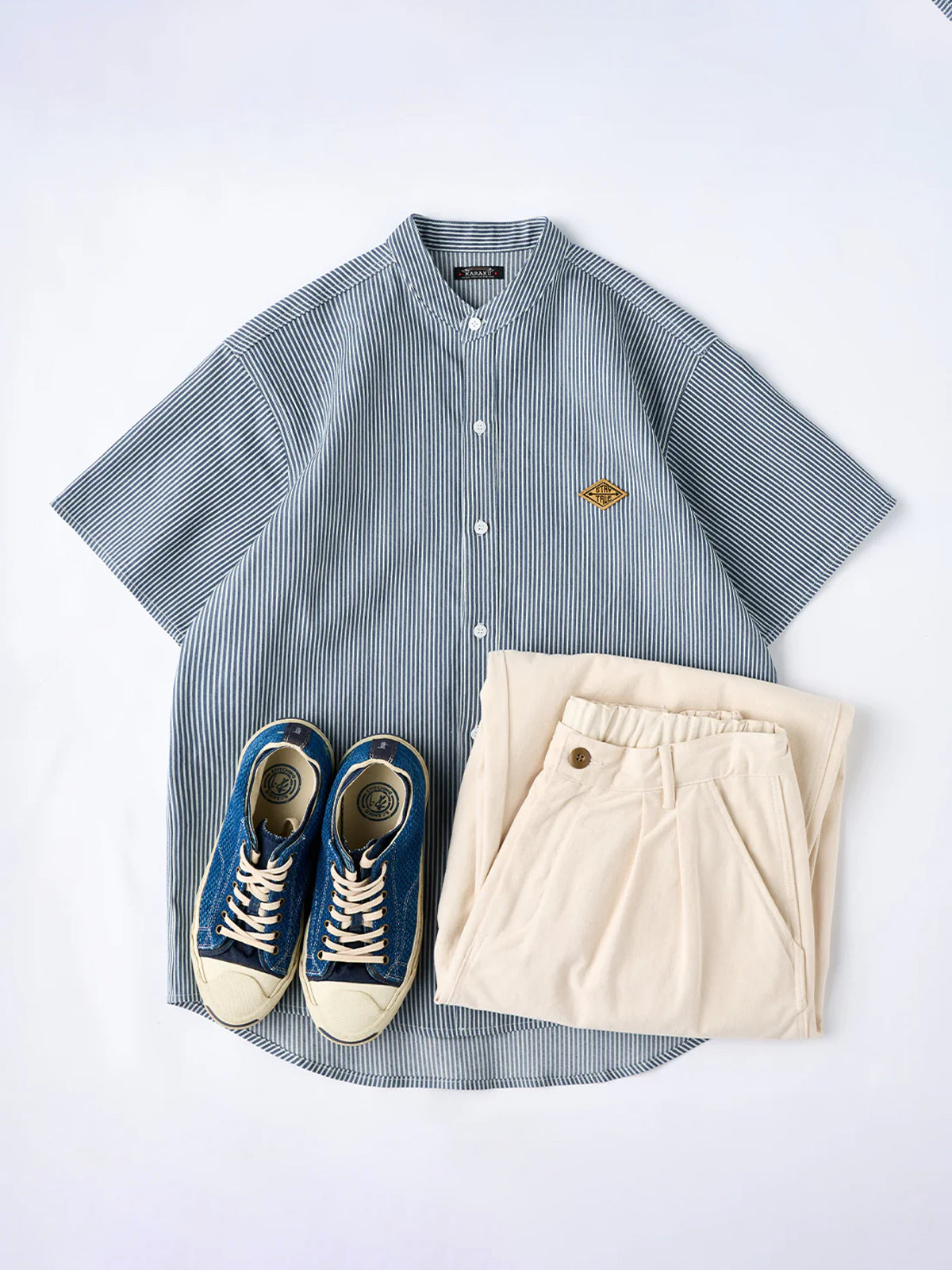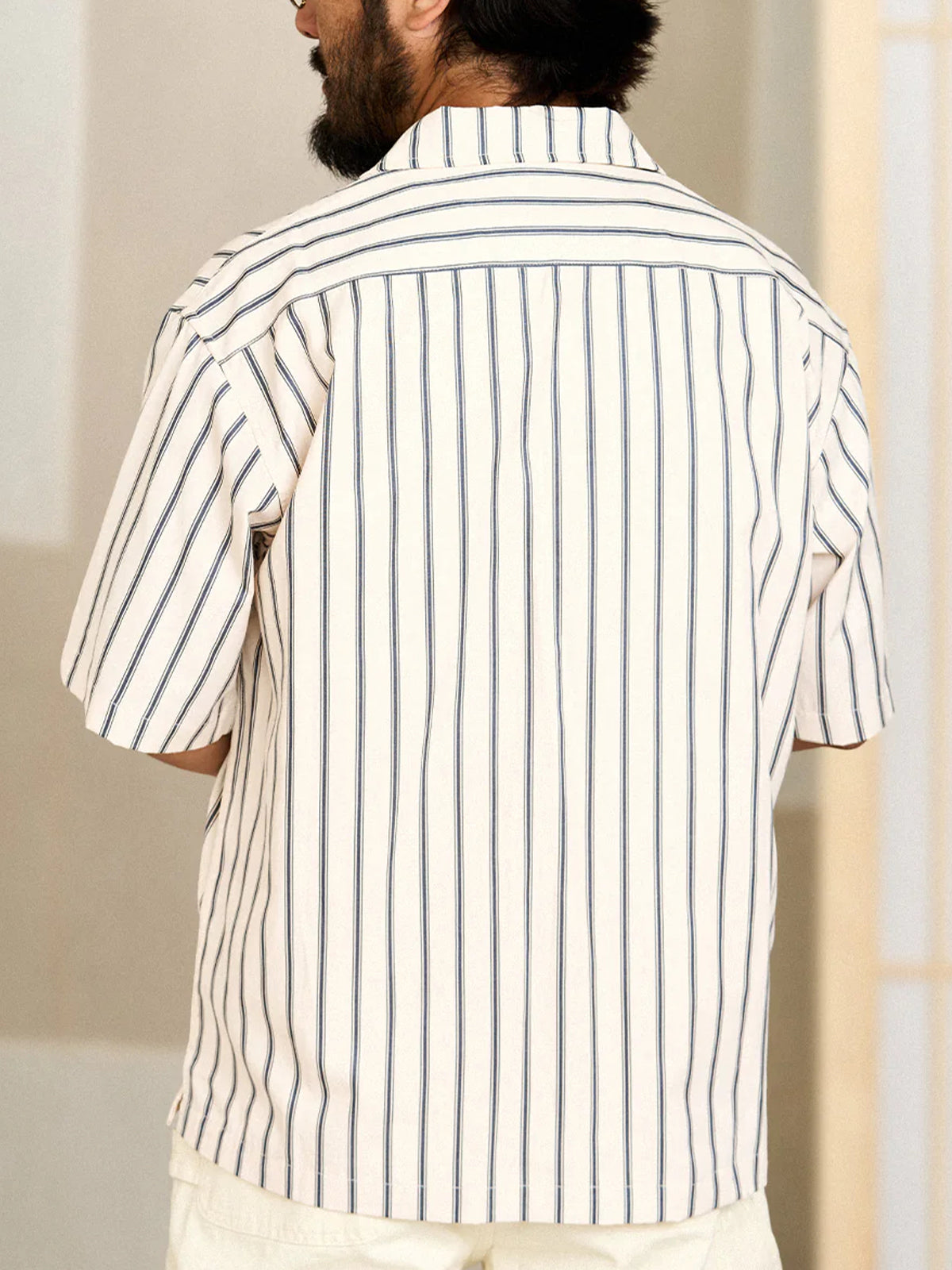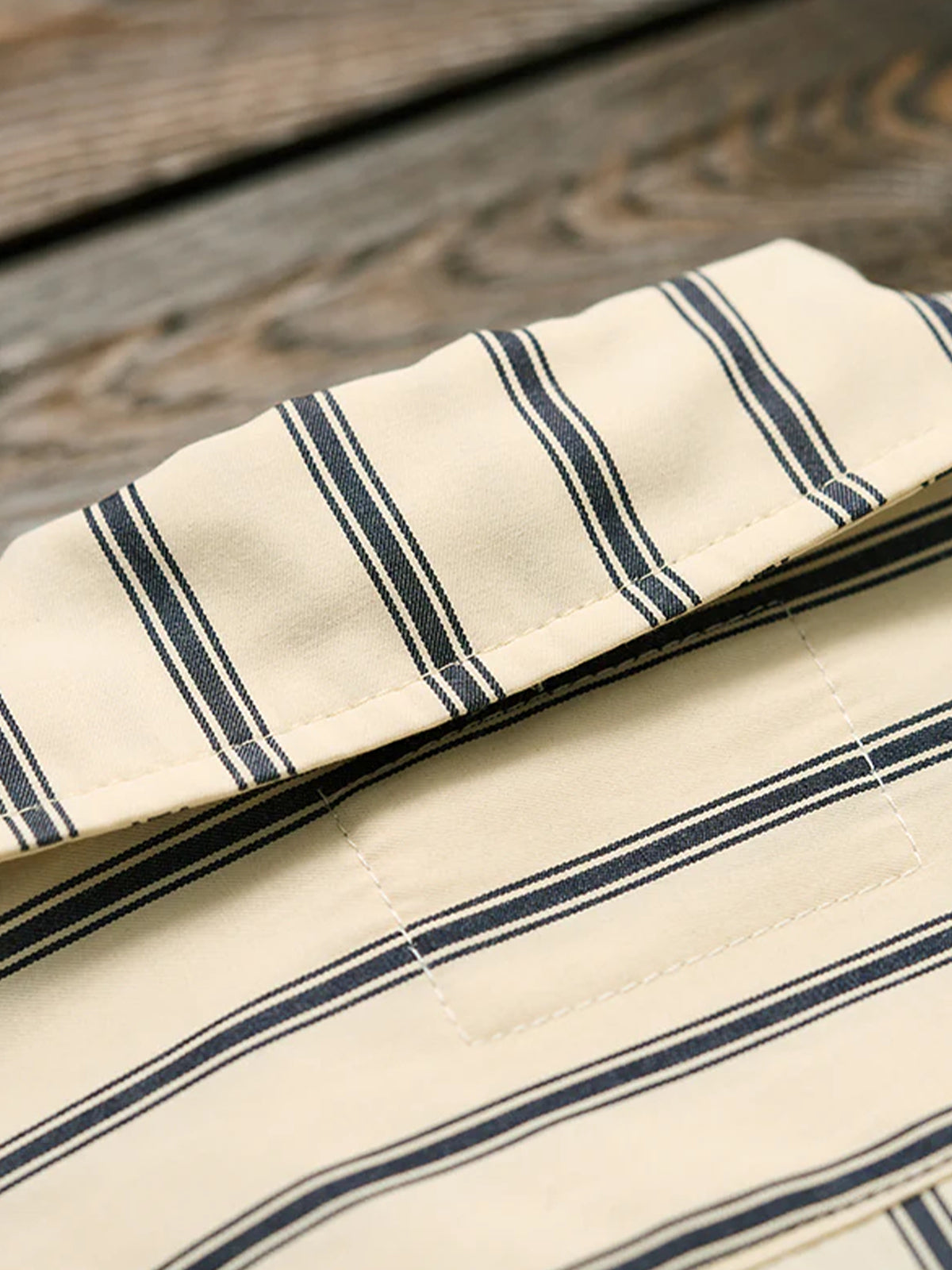 Solid Tricolor Peach Leather Cuban Collar Shirt