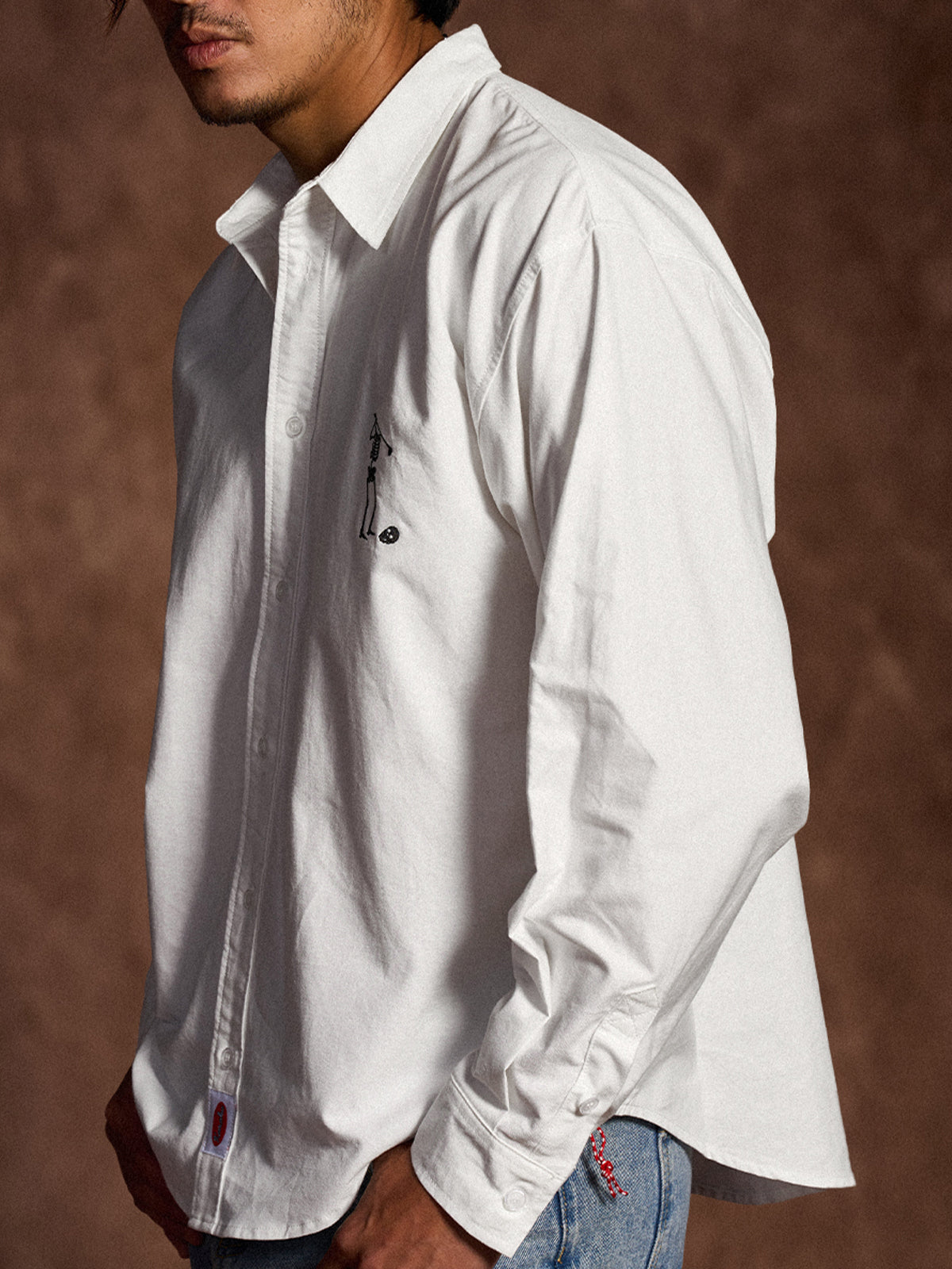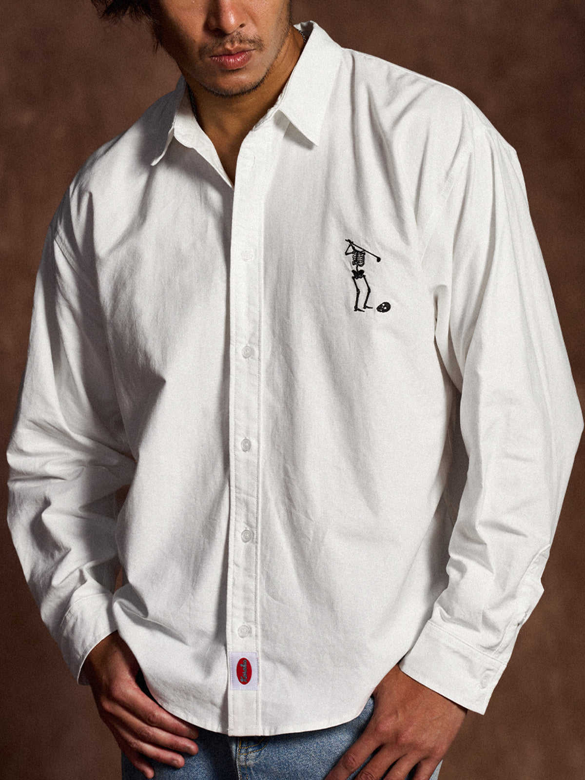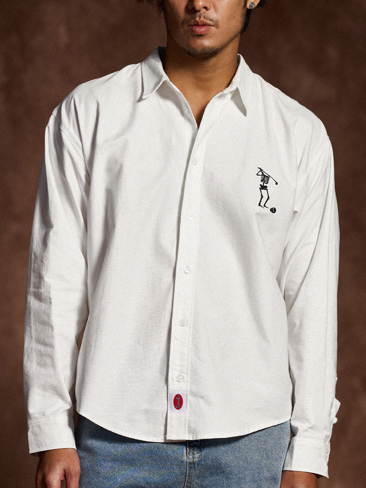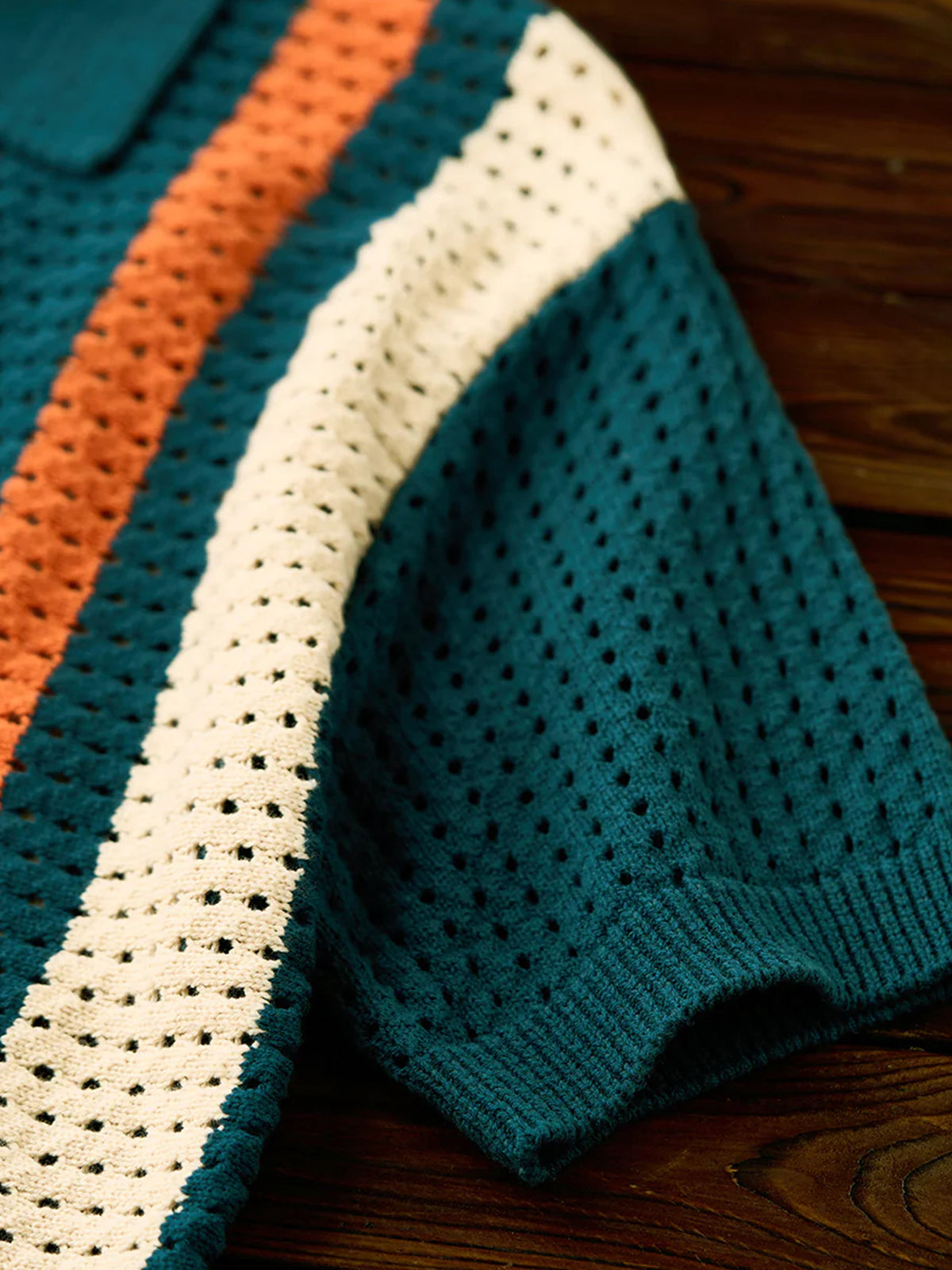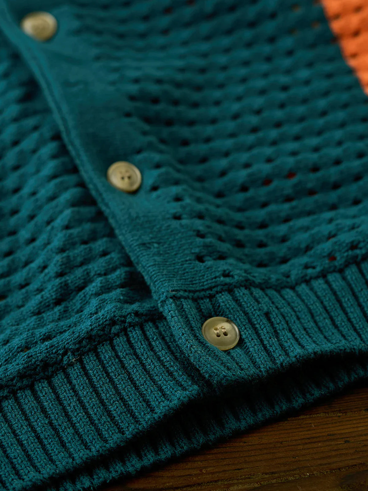 Solid Tricolor Peach Leather Cuban Collar Shirt