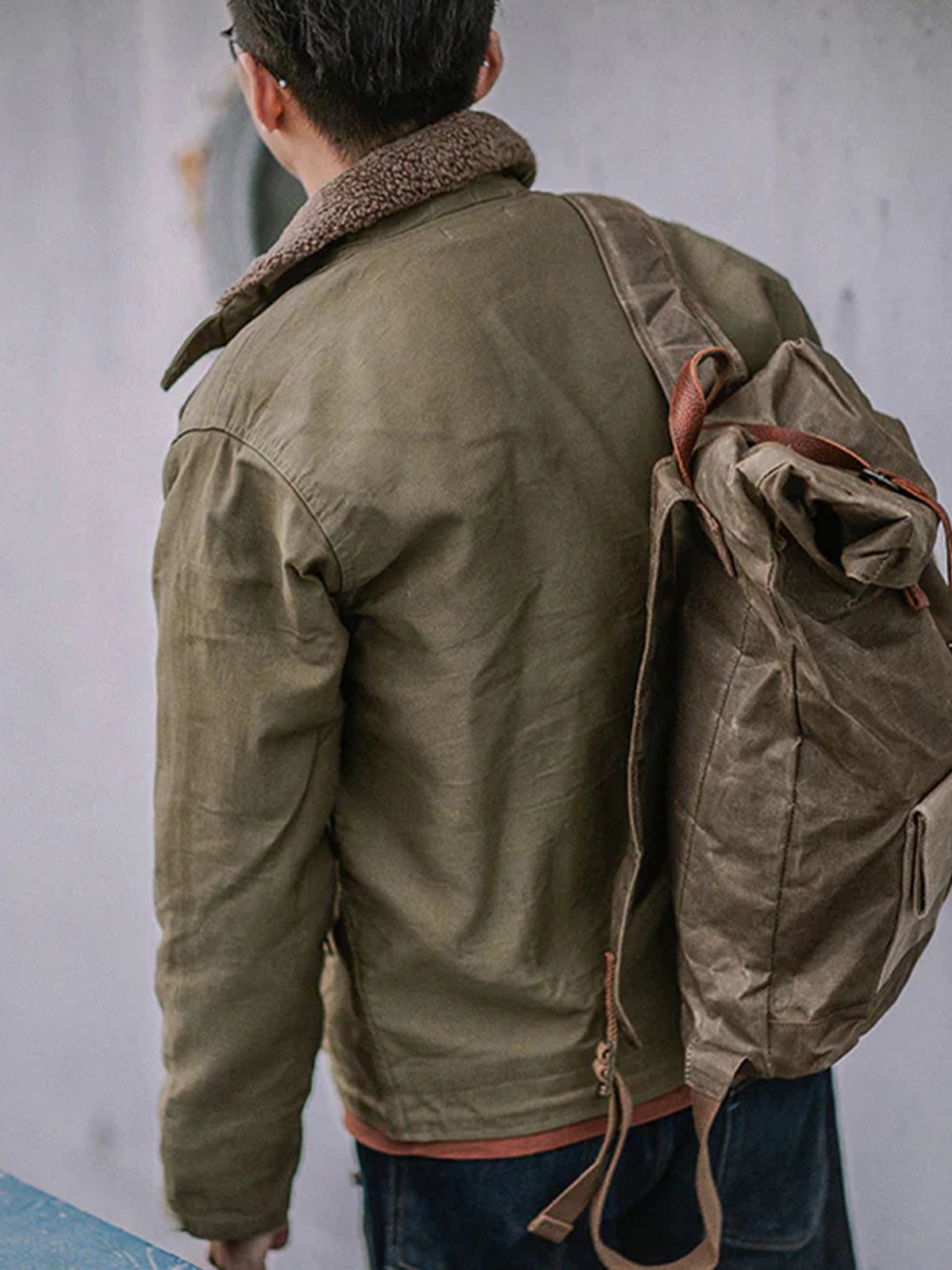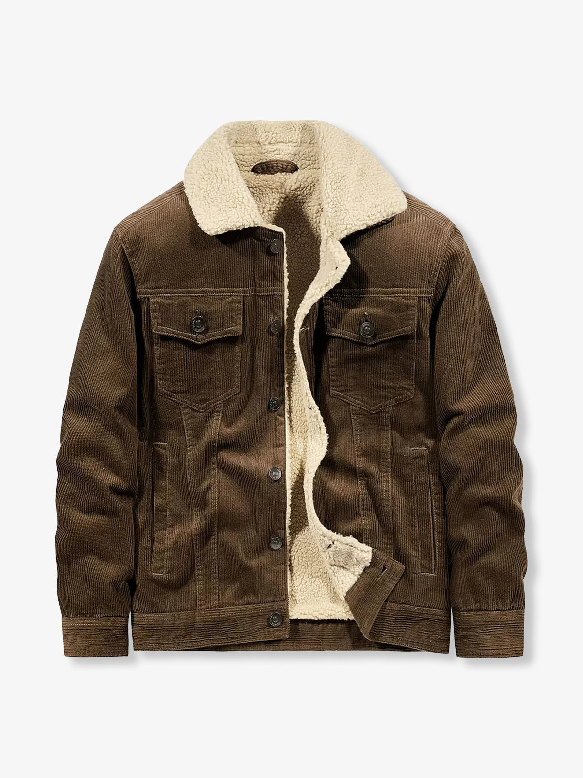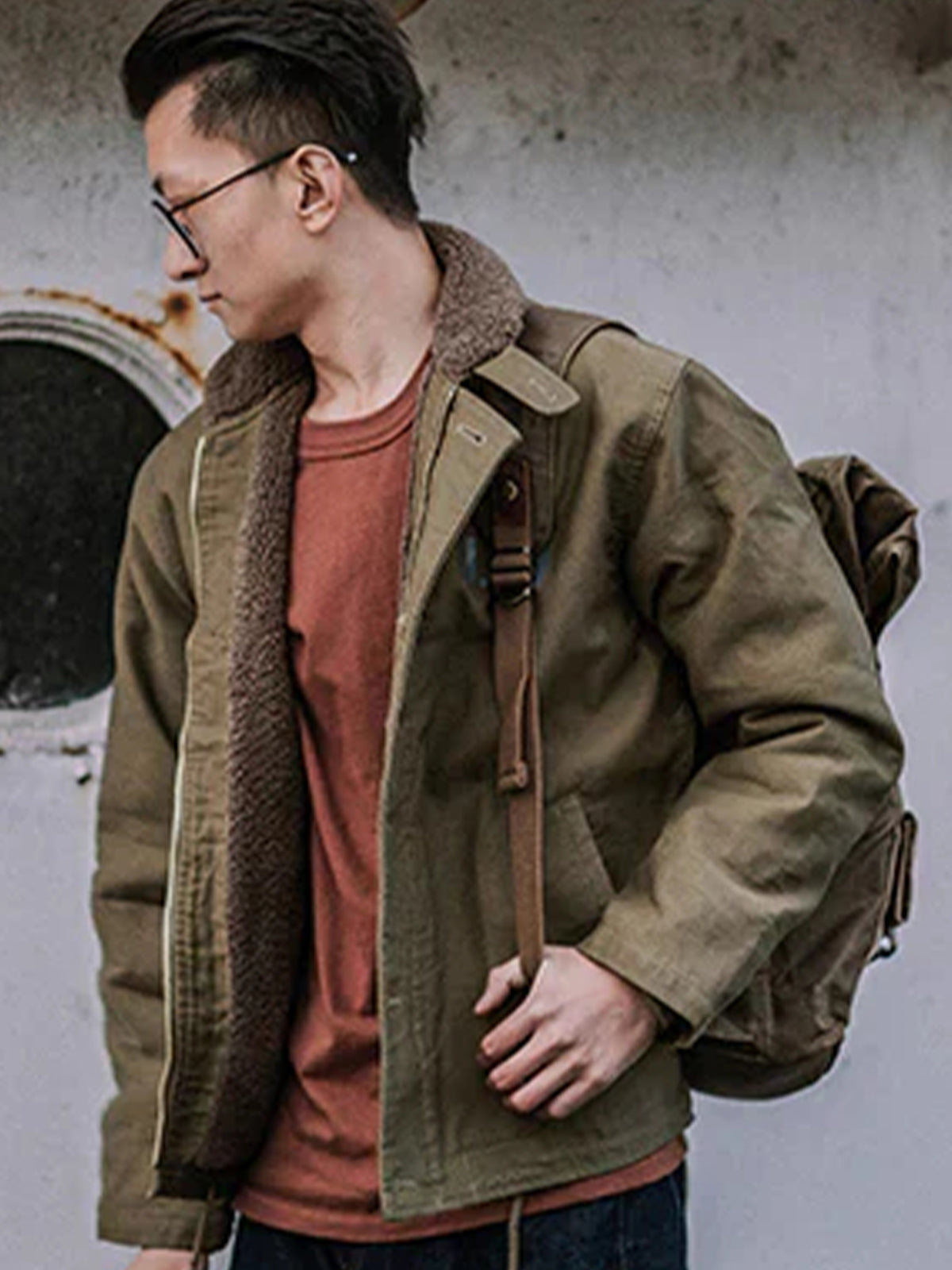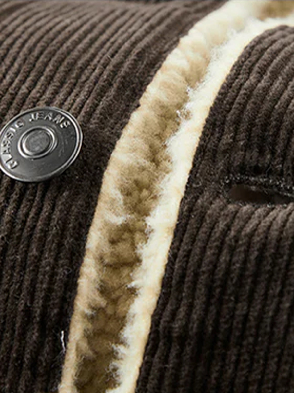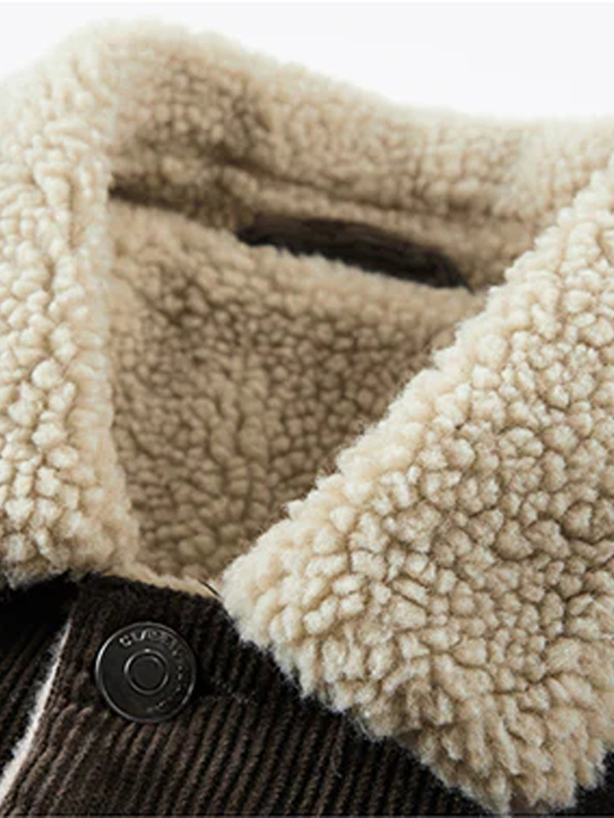 Military-Inspired Fur-Lined & Corduroy Flight Jacket