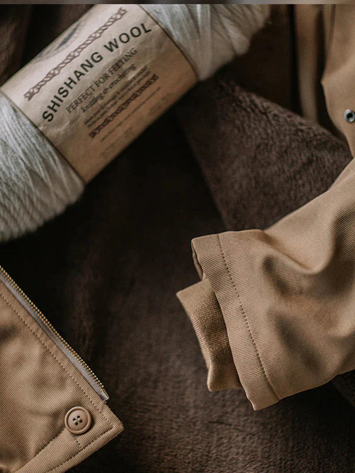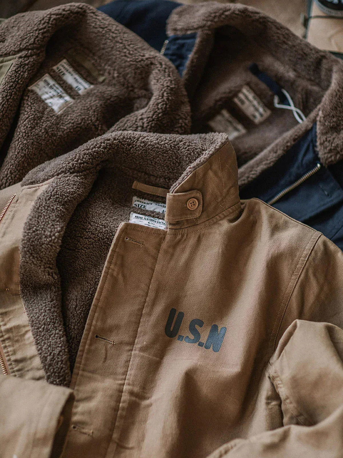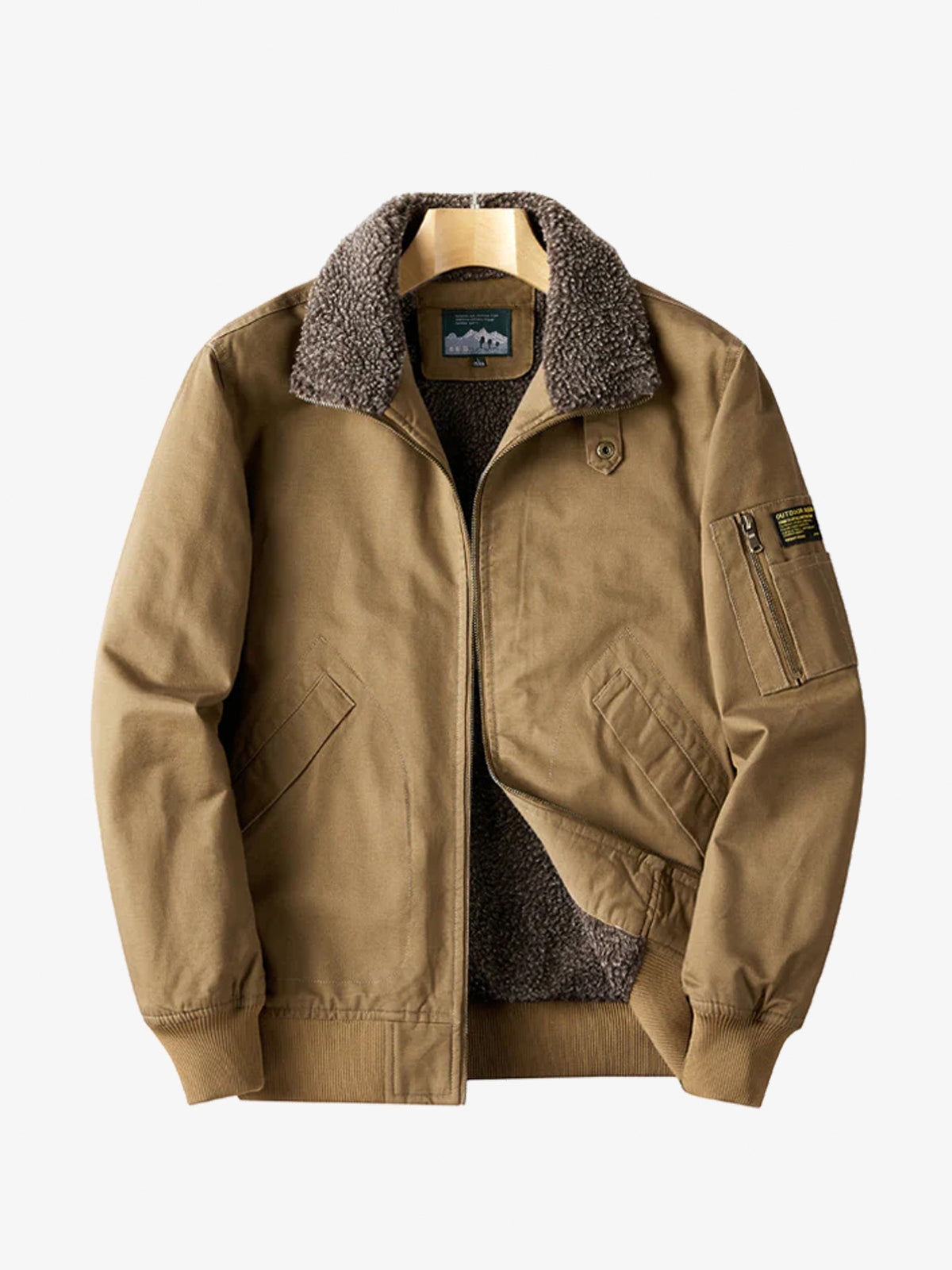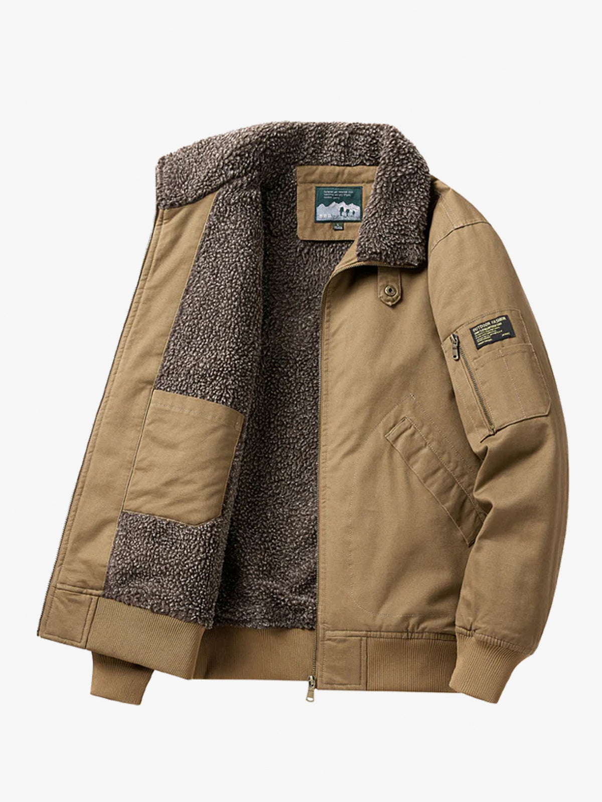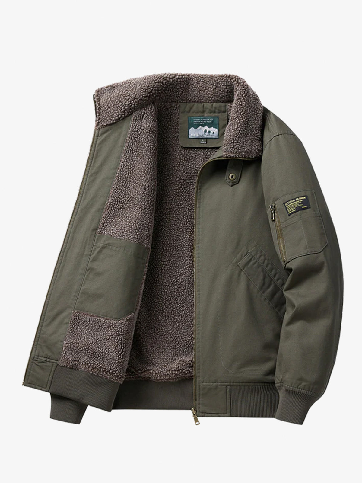 Military-Inspired Fur-Lined & Corduroy Flight Jacket