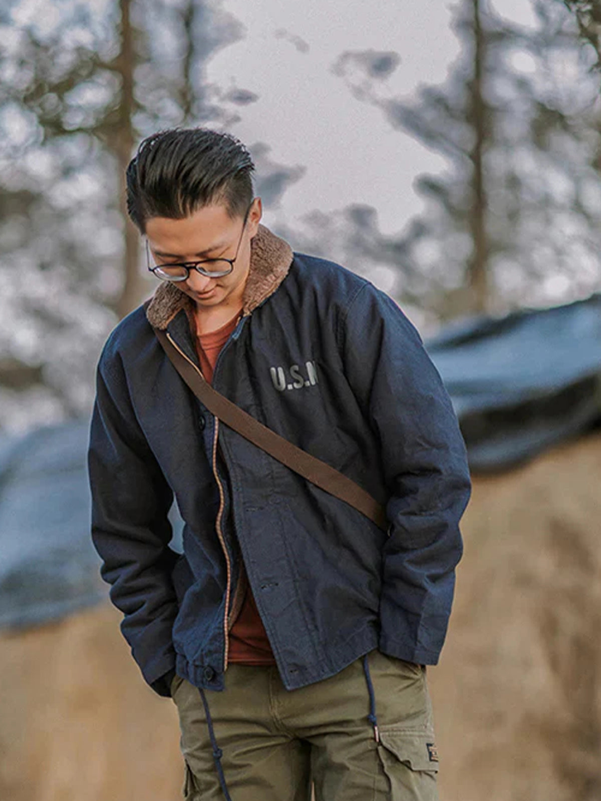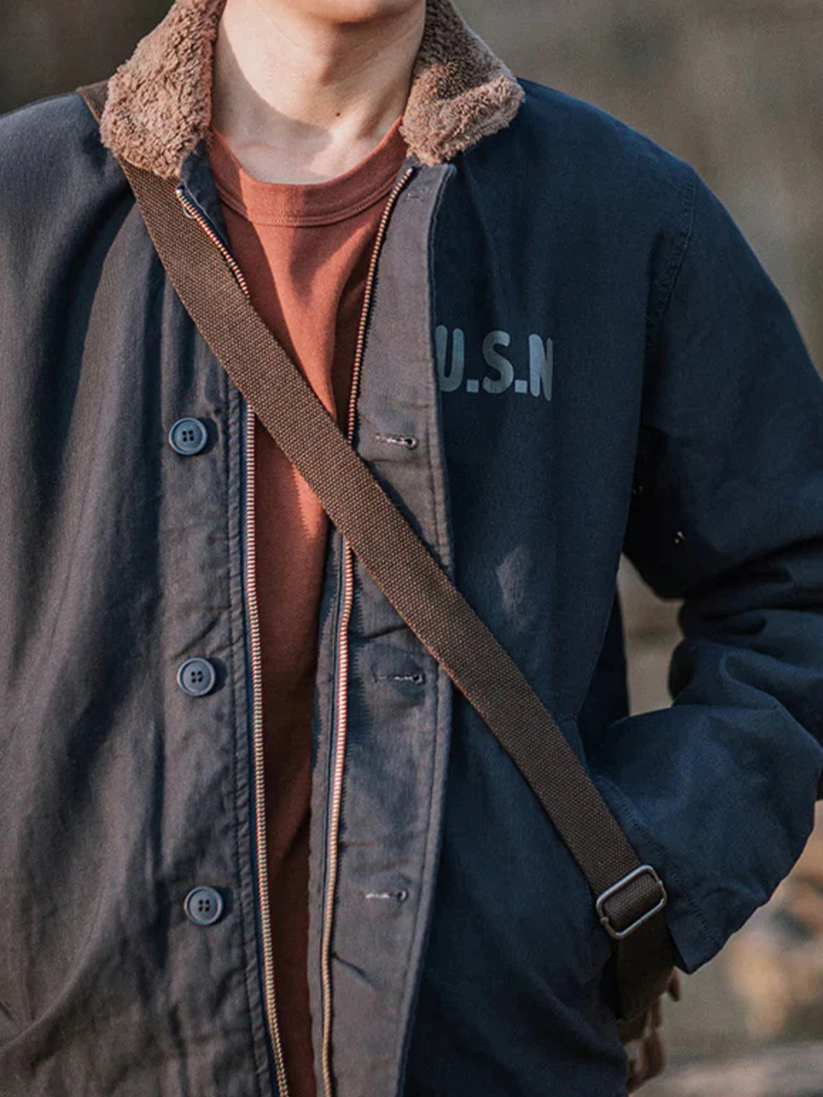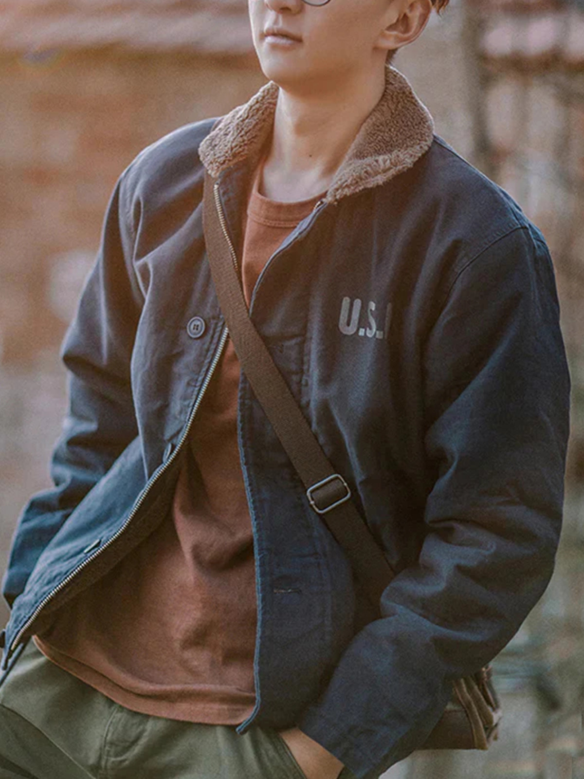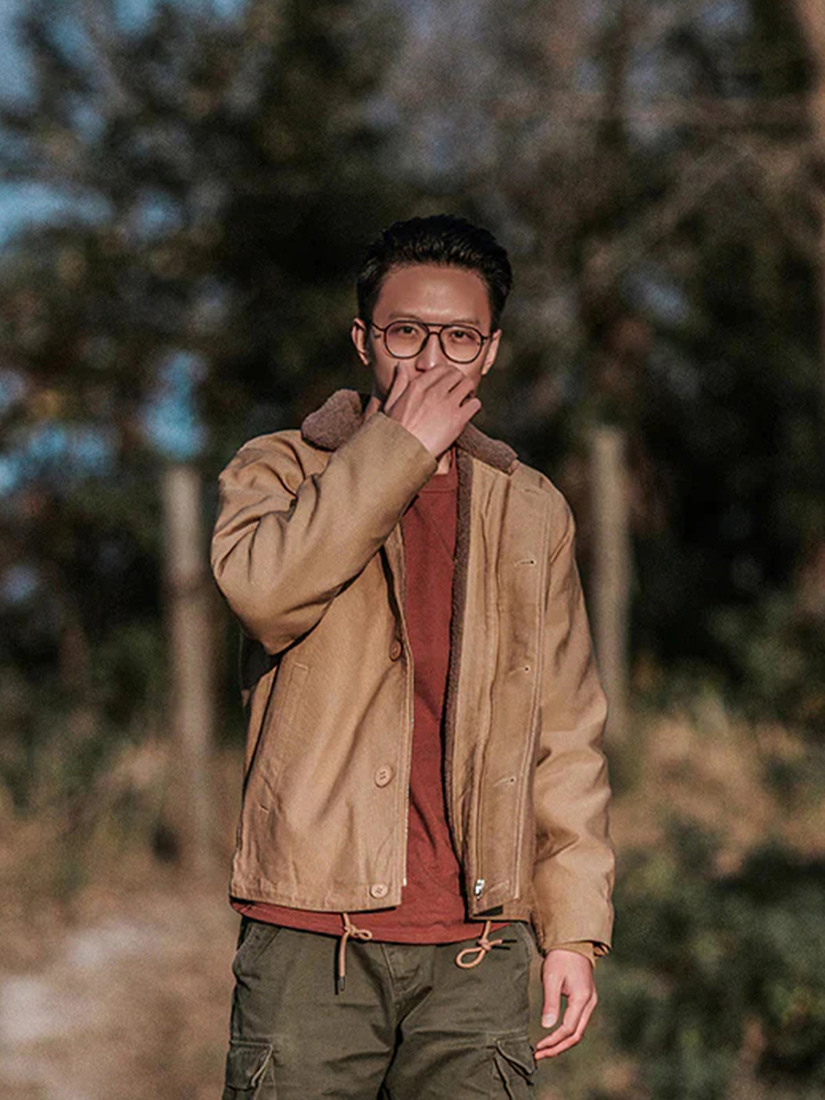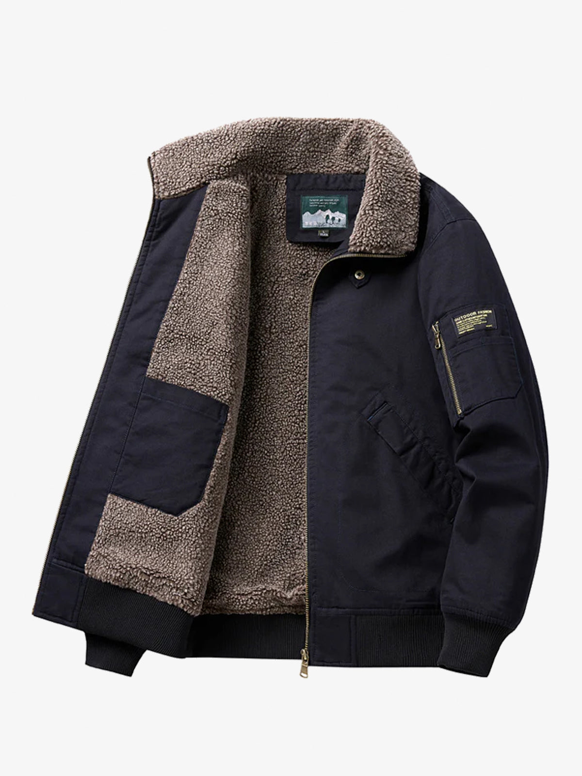 Military-Inspired Fur-Lined & Corduroy Flight Jacket